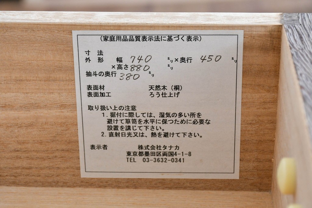桐製品専門の老舗、桐屋田中の総桐箪笥です。