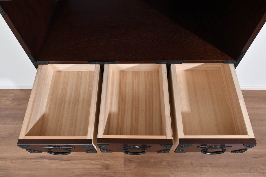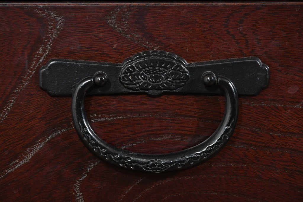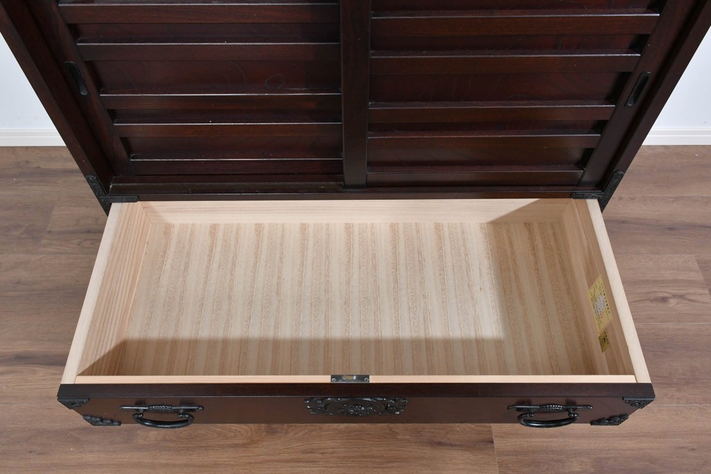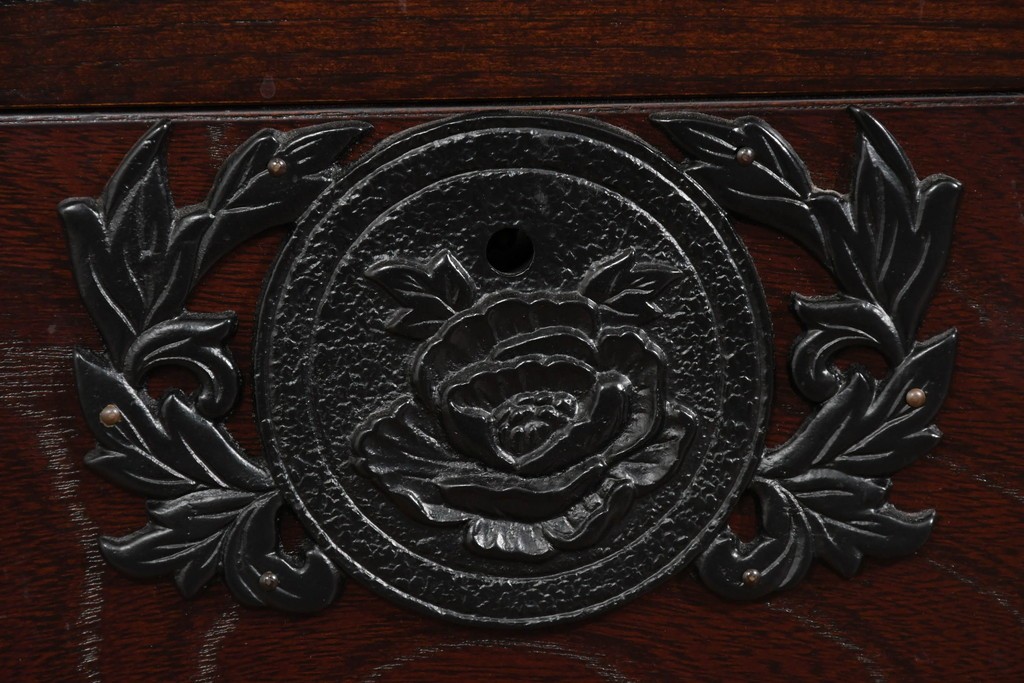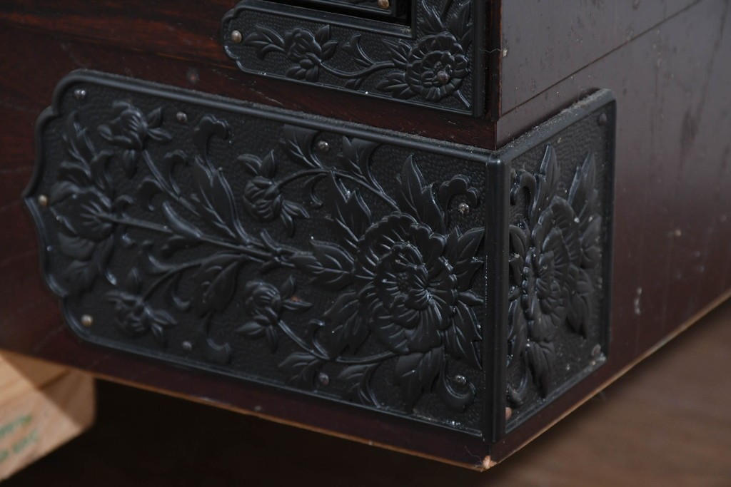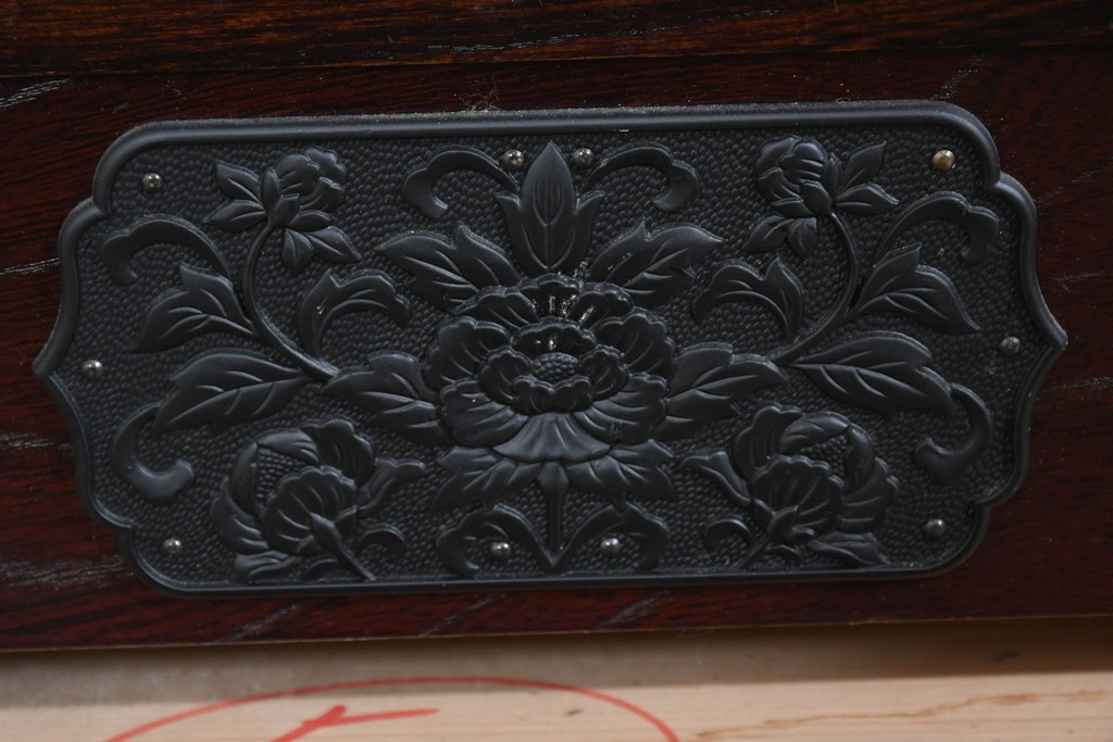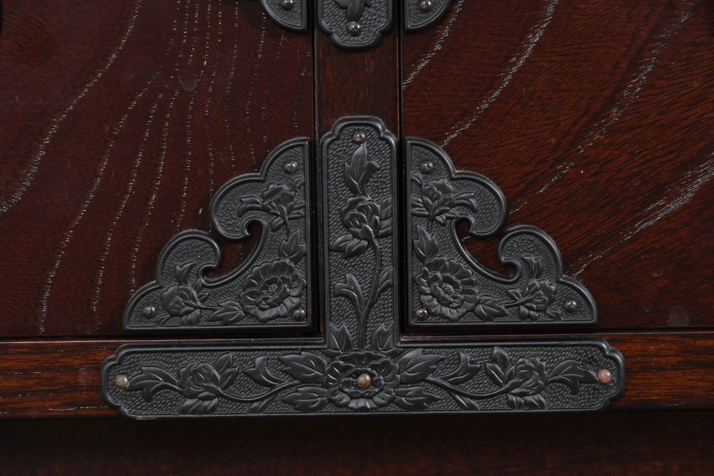 金具は装飾的な意匠が施され、家具全体の雰囲気をさらに高めています。