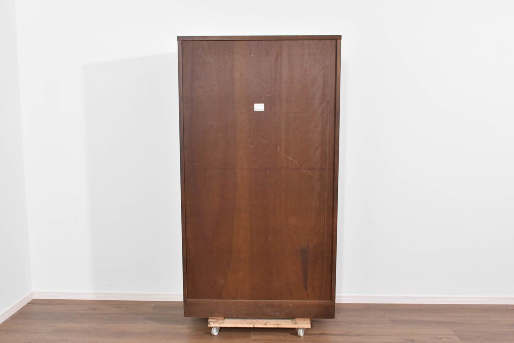 上段はガラス入りの扉を採用し、中の物が見えるようになっています。引き出し付きで、小物の整理にも便利です。