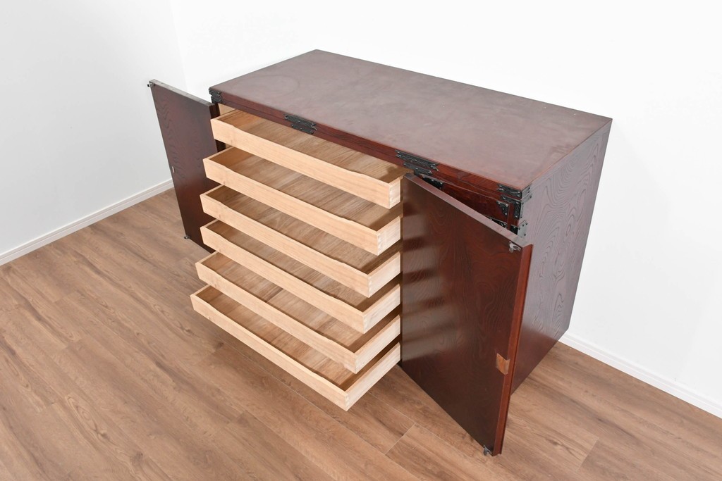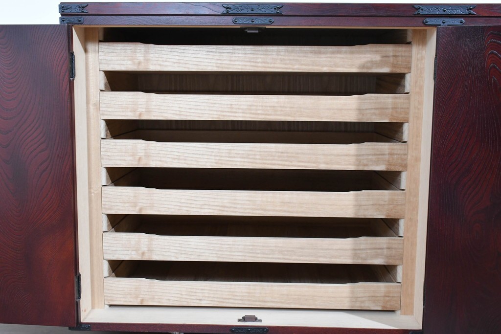内部には衣装盆が6杯備わり、着物や帯を平らに収納しやすい構造となっています。