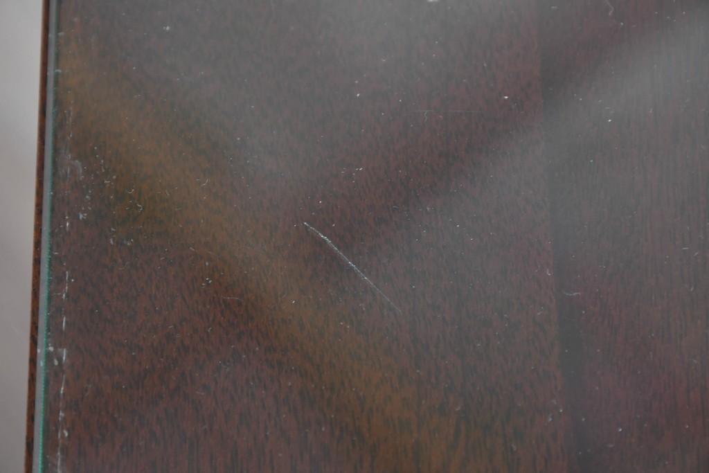天板にはガラス板が載せられ、木肌の美しさを楽しみながら気兼ねなく使用できます。