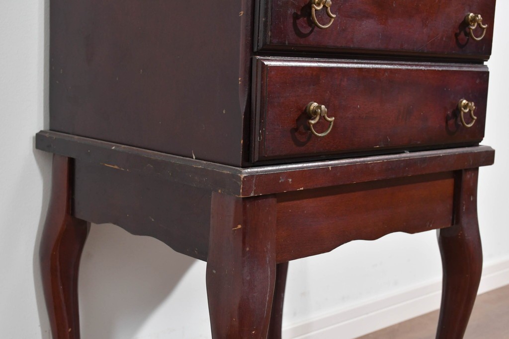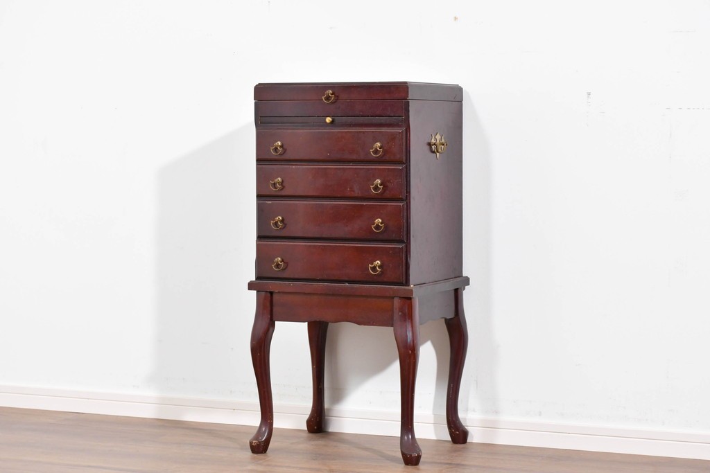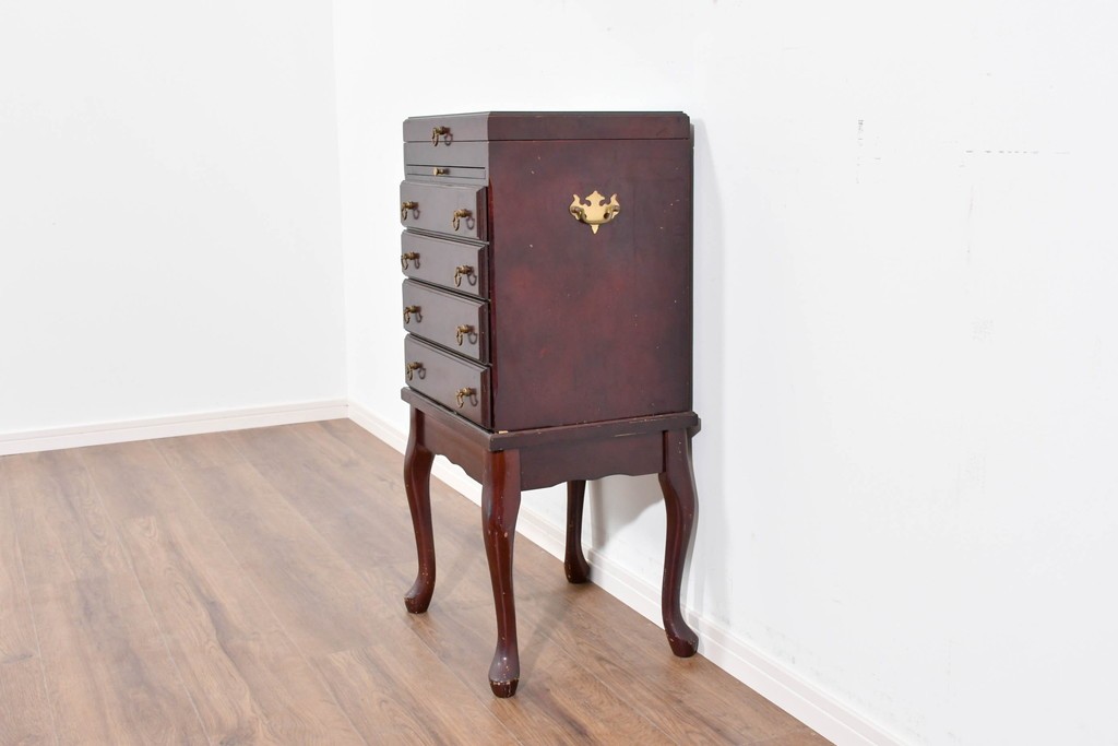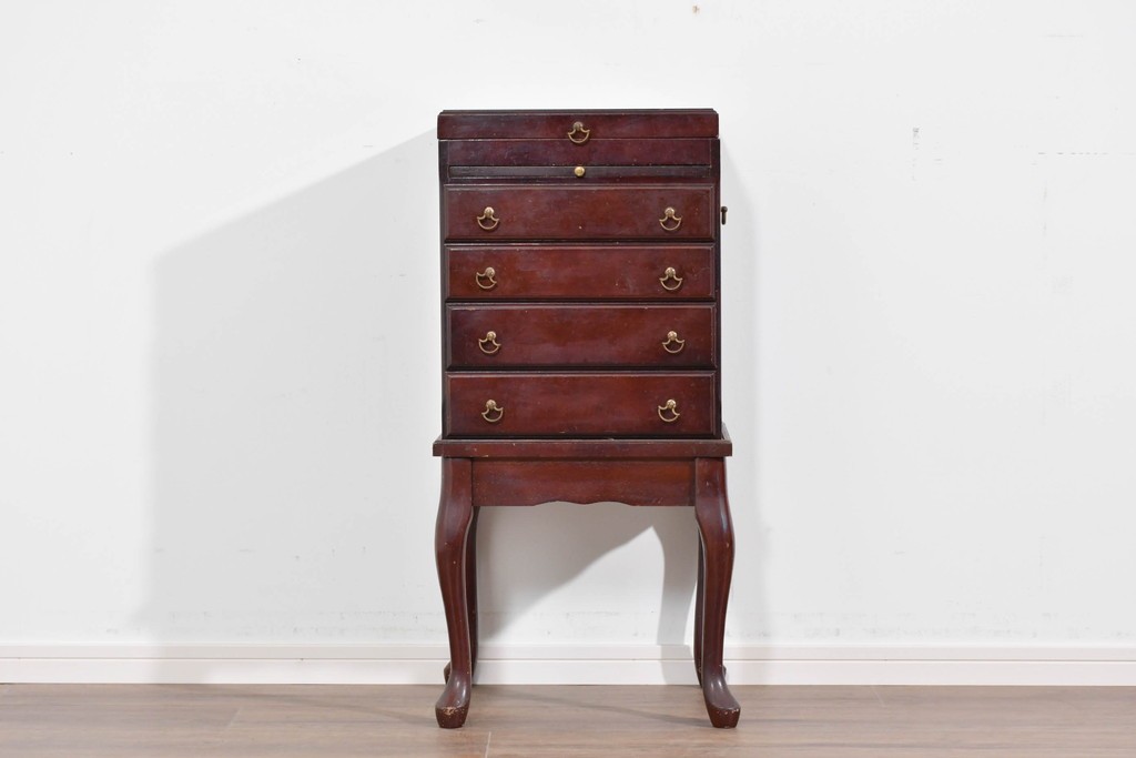 アメリカヴィンテージらしい落ち着いた雰囲気を備えたジュエリー収納付き4段チェストです。