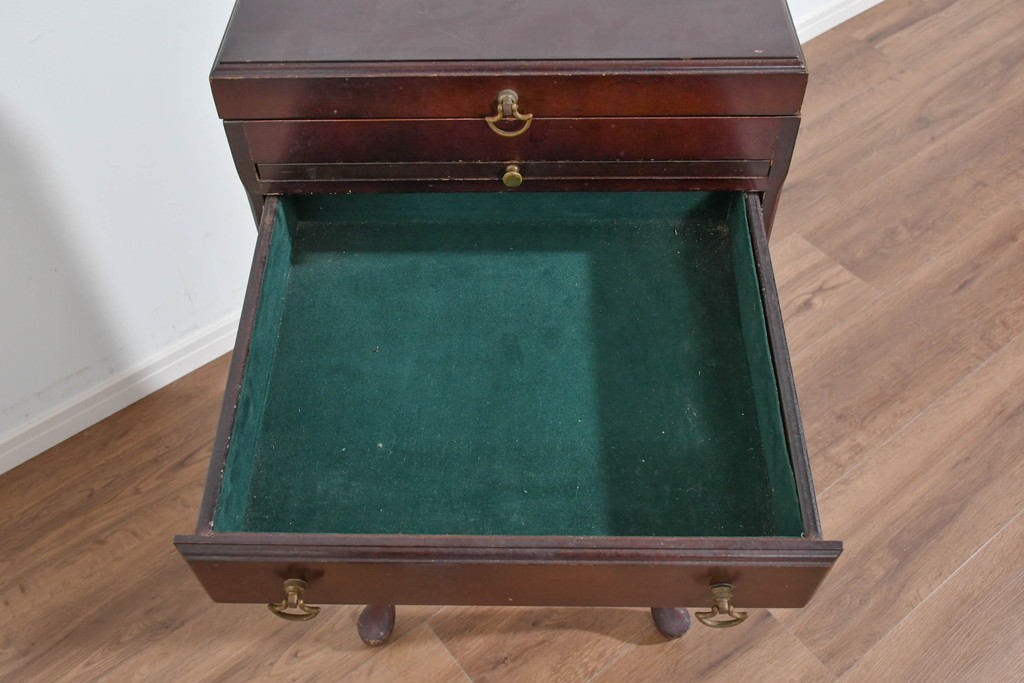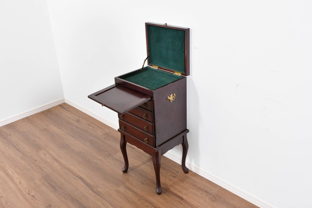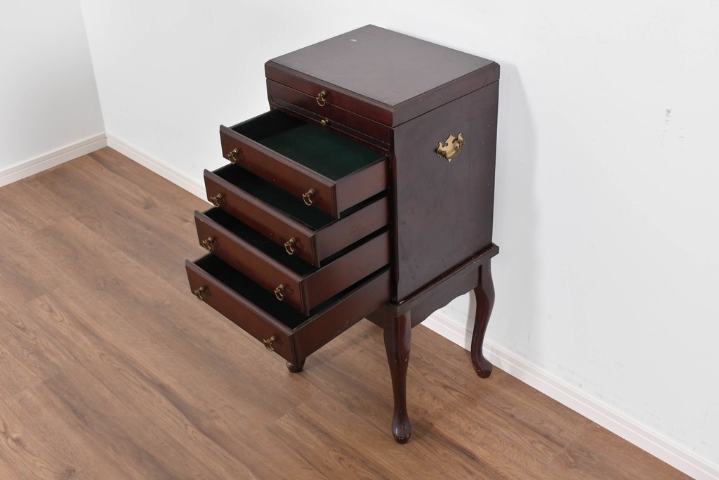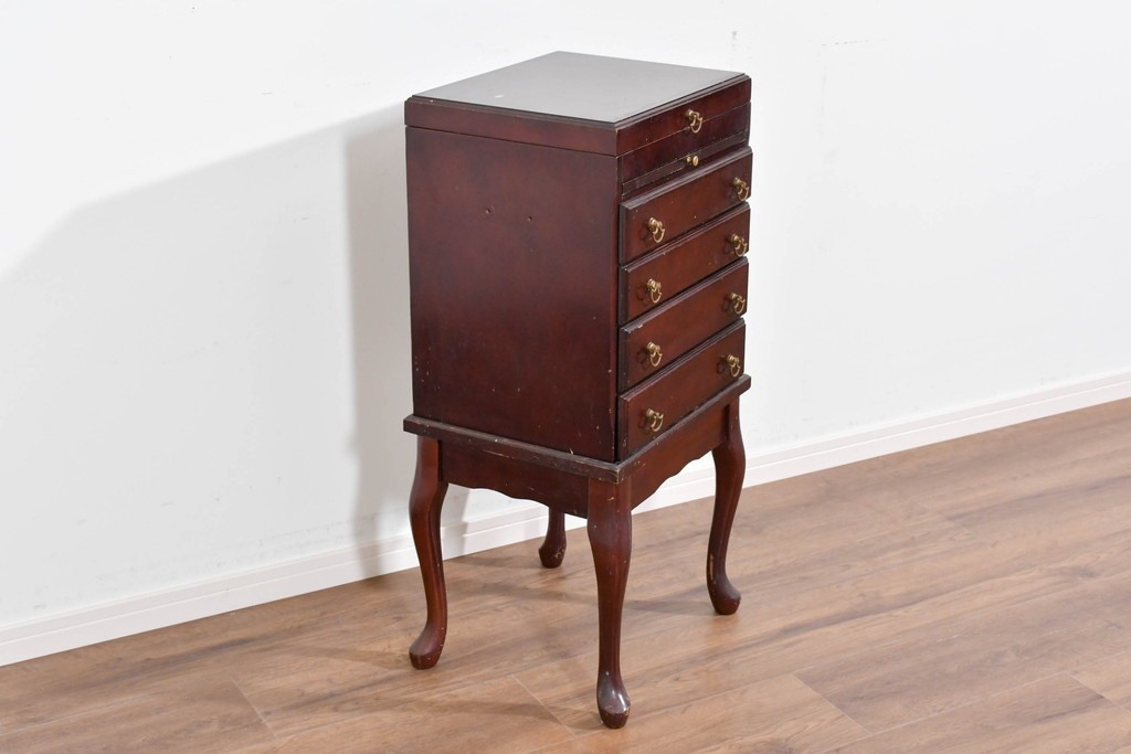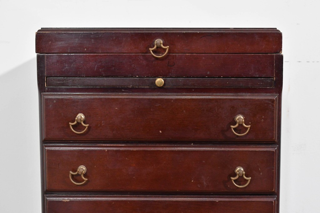アメリカヴィンテージらしい落ち着いた雰囲気を備えたジュエリー収納付き4段チェストです。