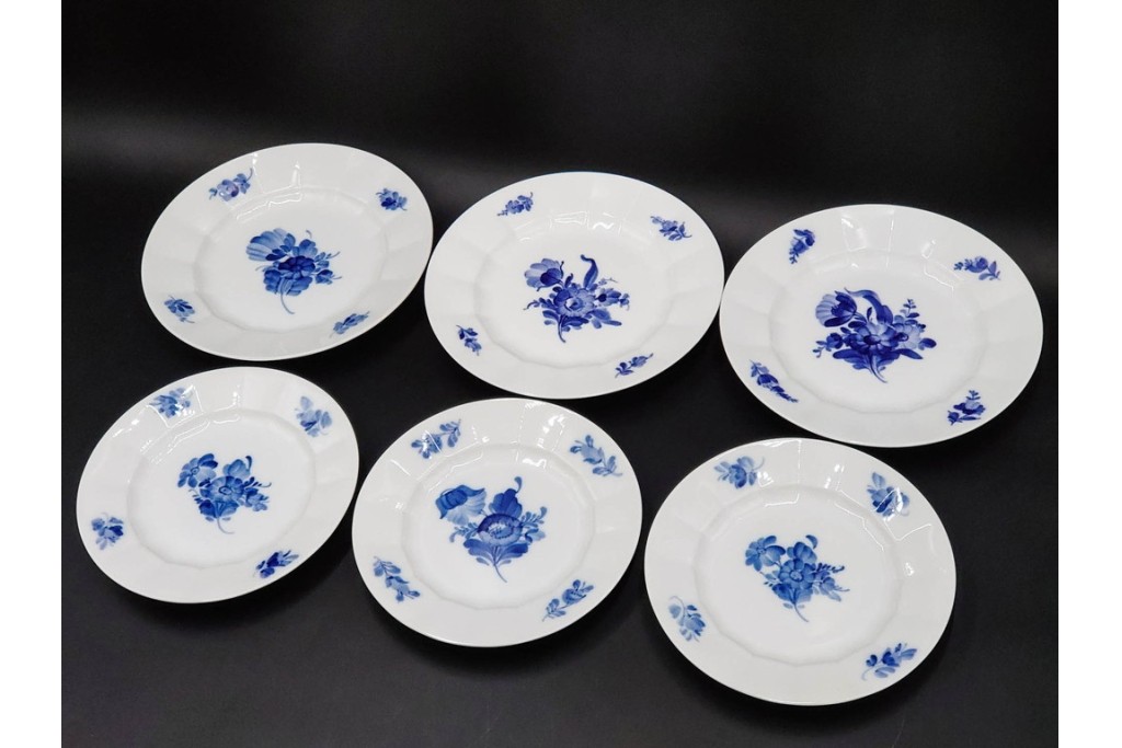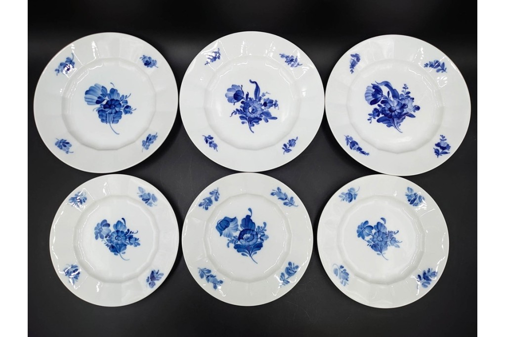 デンマークのロイヤルコペンハーゲンによる、ブルーフラワー アンギュラーのプレート6枚セットです。
