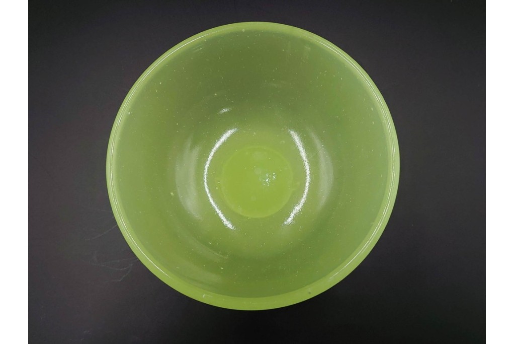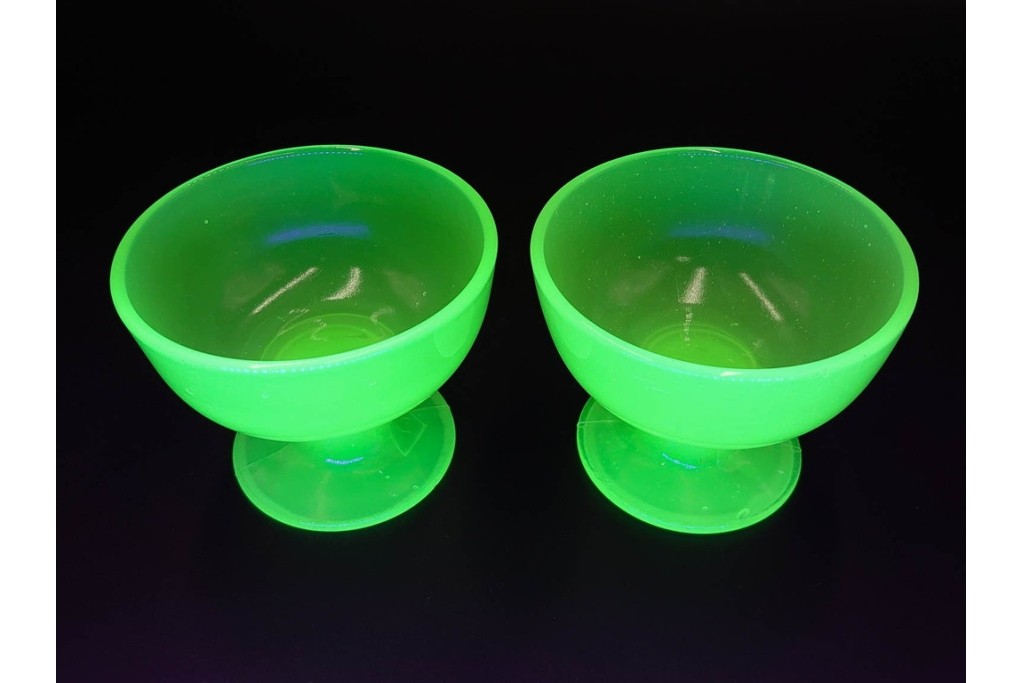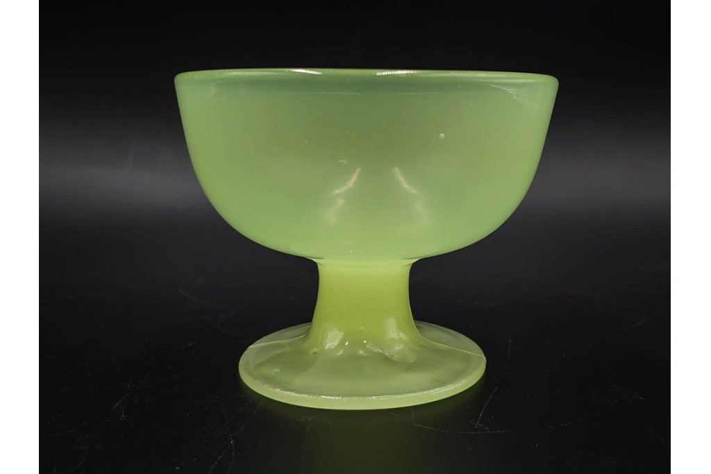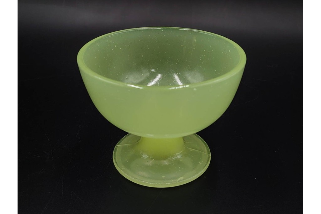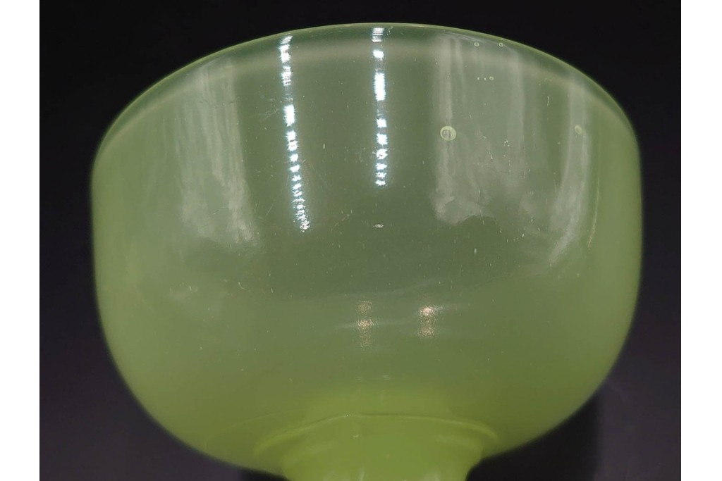 アンティーク 大正〜昭和初期の当時物 碗型 ウランガラスの氷コップ2点セット (R-085517)