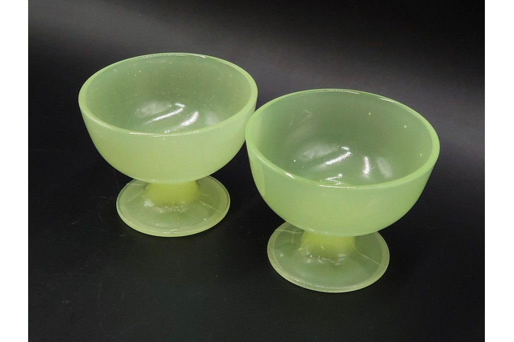 ラフジュ工房> 骨董・美術品> 骨董-ガラス食器 > アンティーク 大正〜昭和初期の当時物 碗型 ウランガラスの氷コップ2点セット (R-085517)