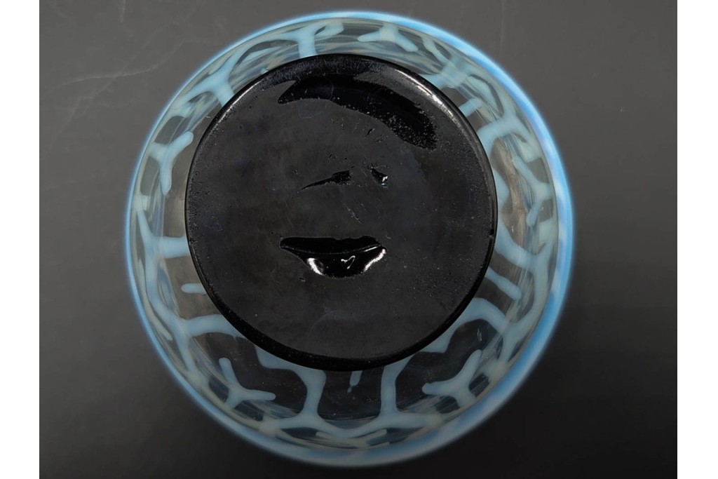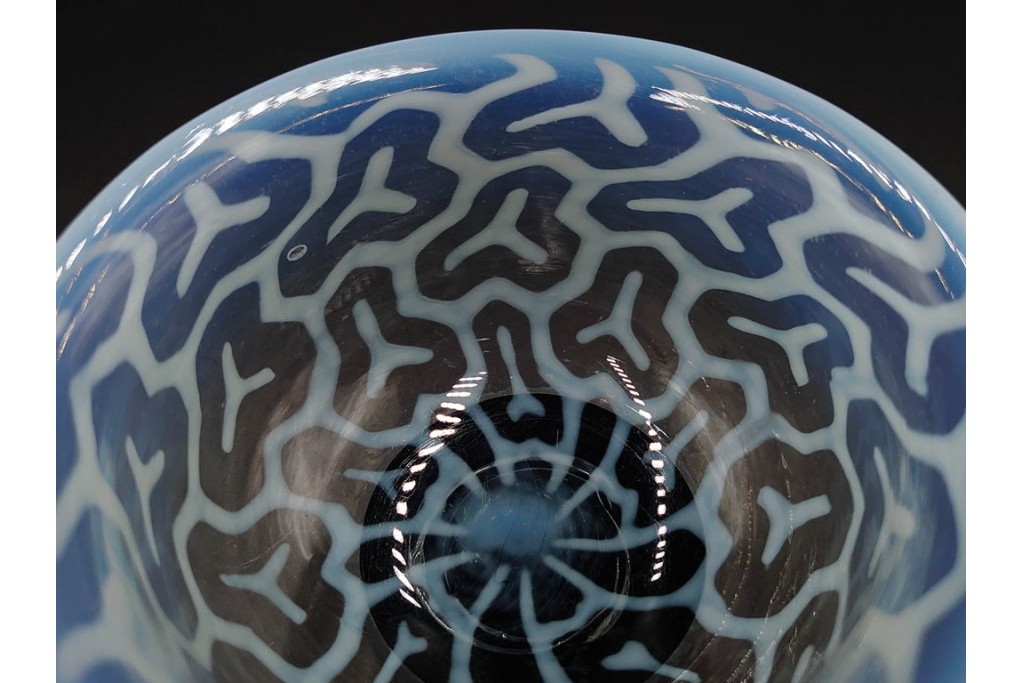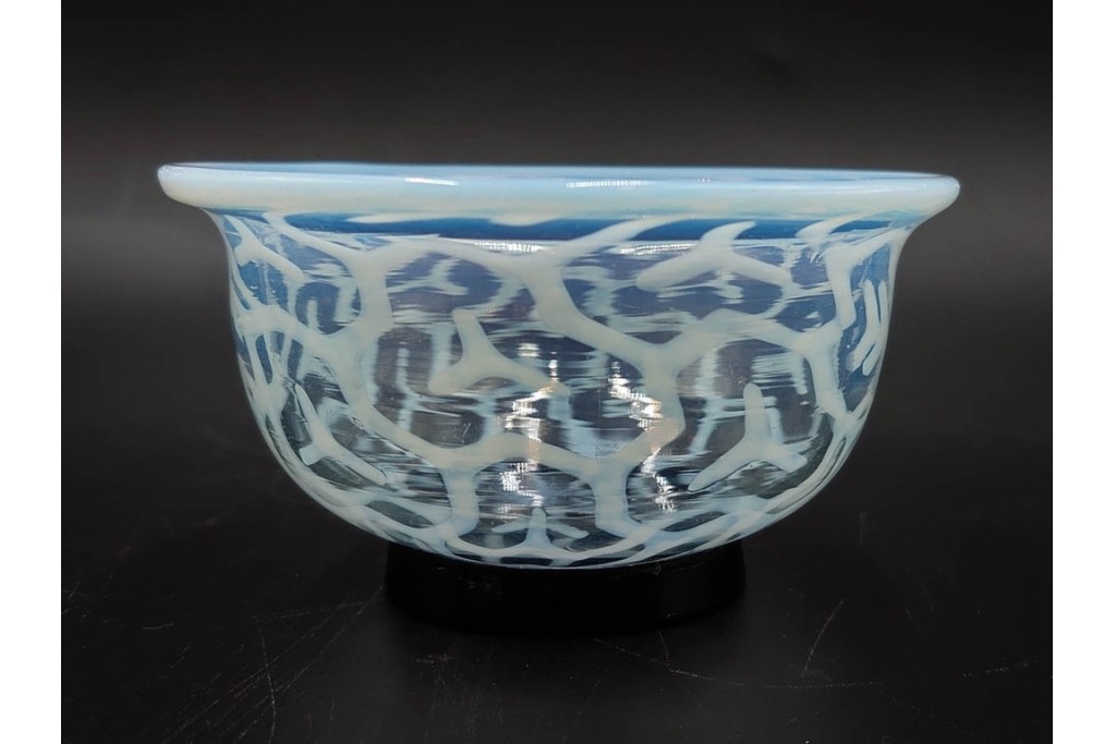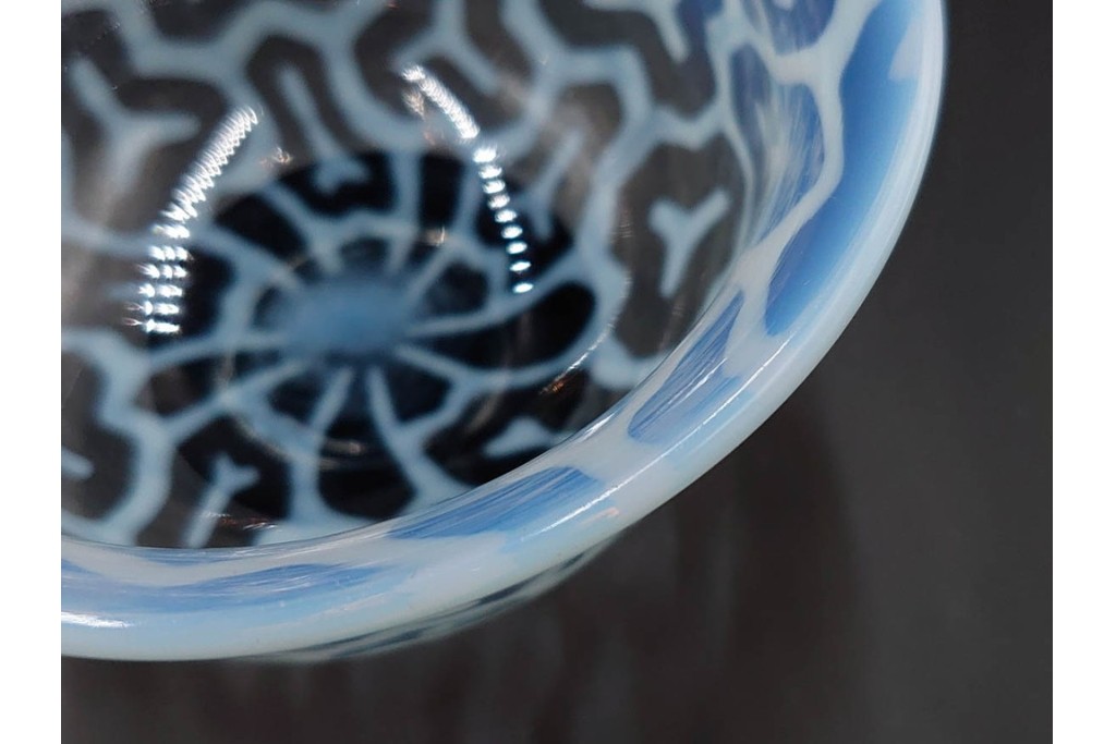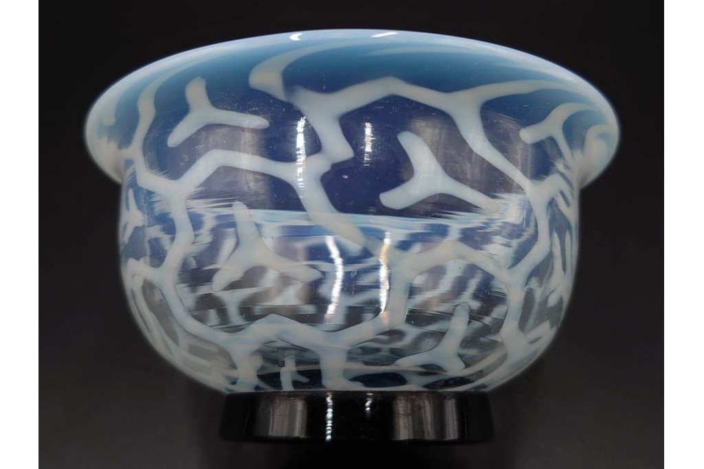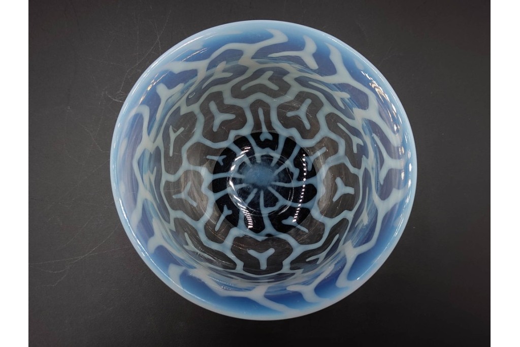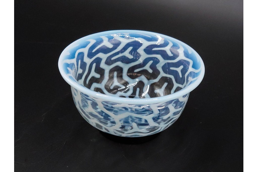 ラフジュ工房> 骨董・美術品> 骨董-ガラス食器 > アンティーク 大正~昭和初期の当時物 碗型 乳白の幾何文が映えるエナメル小鉢 (R-085522)