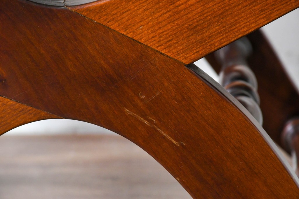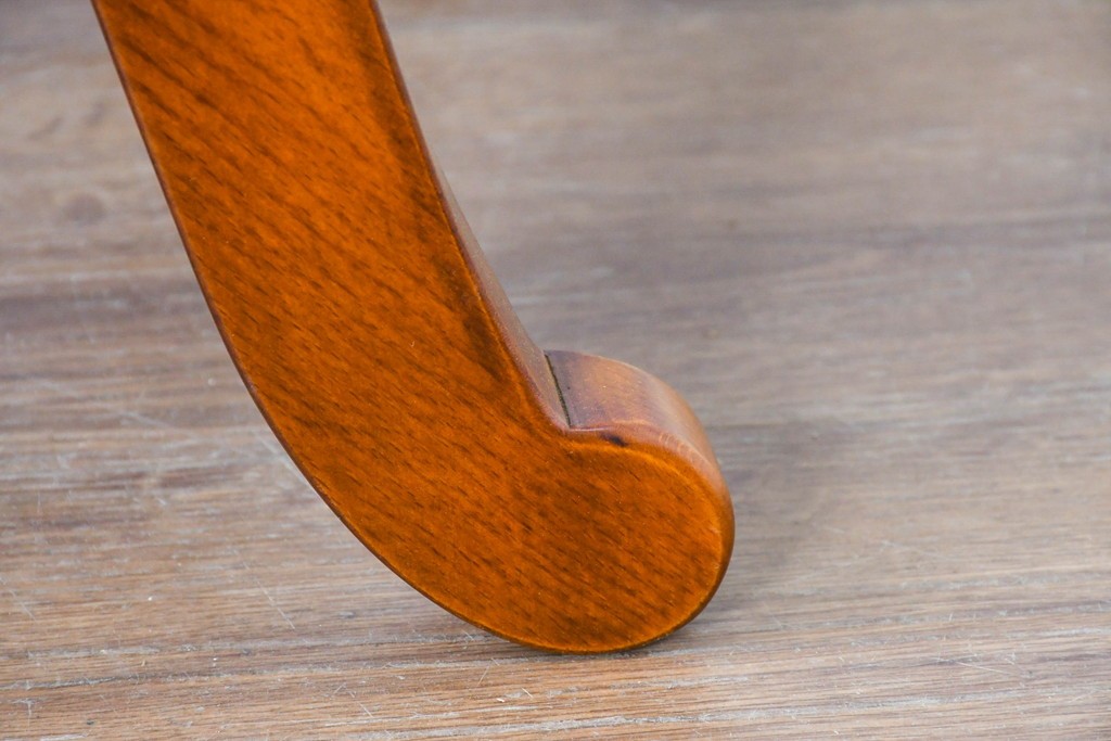 木部の曲線的なフレームが柔らかな印象を添え、レザーの質感と相まって落ち着いた存在感を生み出しています。