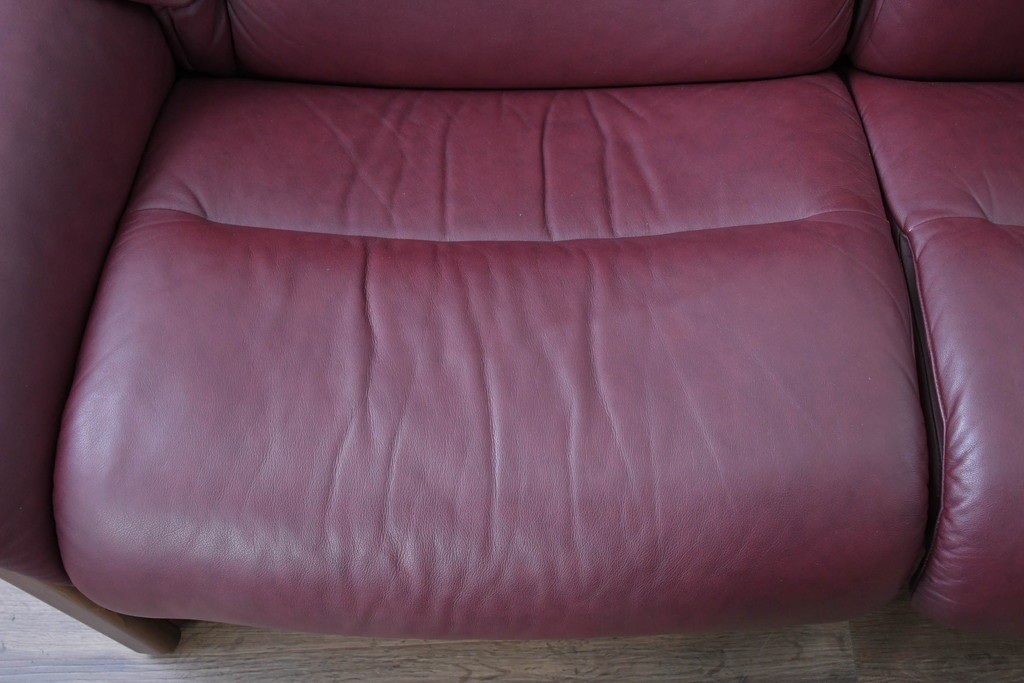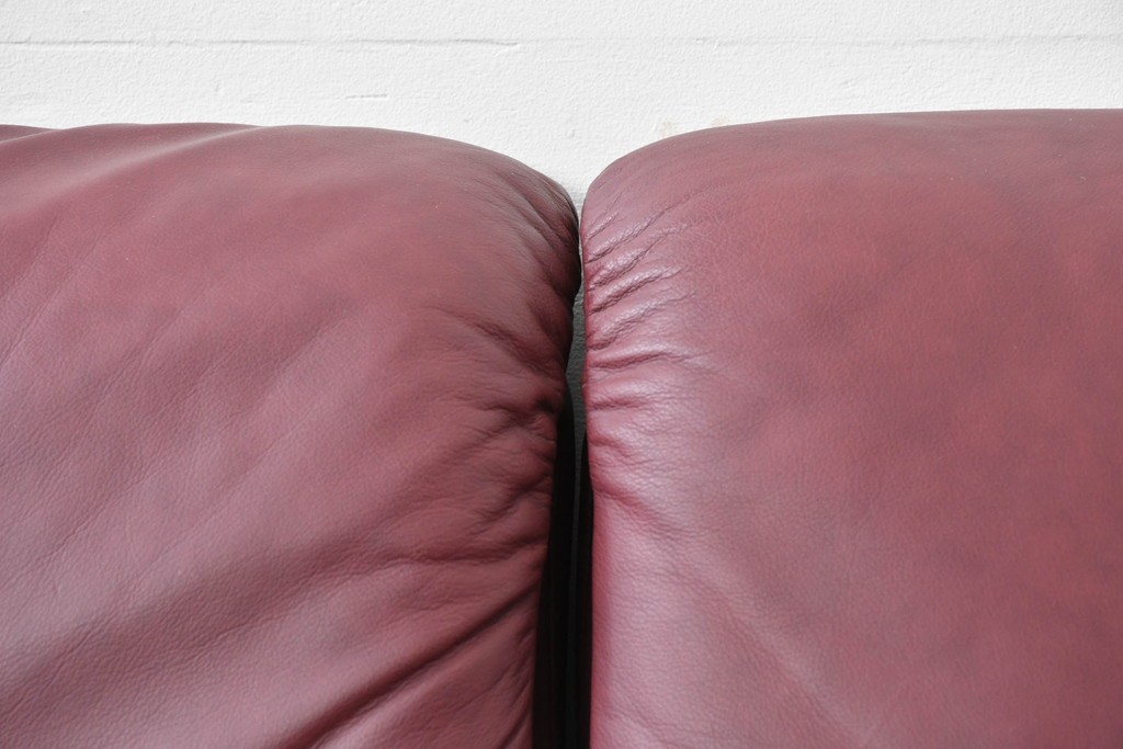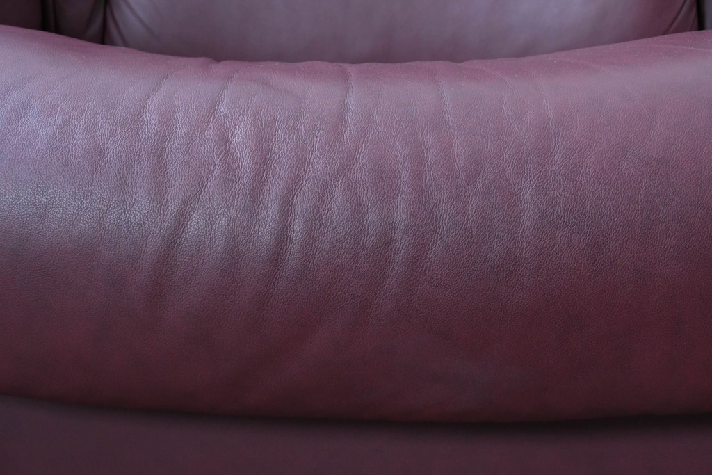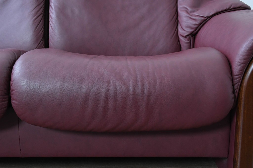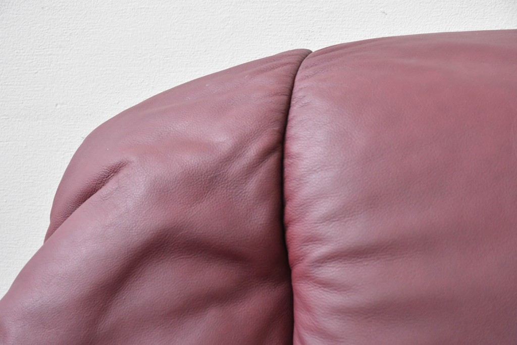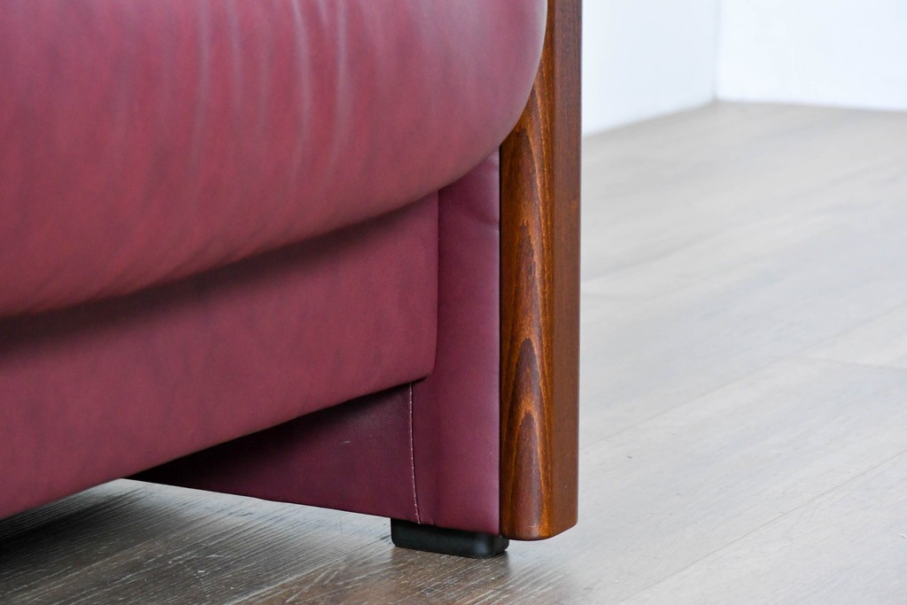 しっとりとした質感のレザーが用いられ、背・座・アームの各部に豊かなクッションが配置されています。深みのある色合いが落ち着きを演出し、インテリアに上品な雰囲気を添える点も魅力です。お部屋になじむ落ち着いたデザインとあわせ、上質なひとときを演出してくれます。