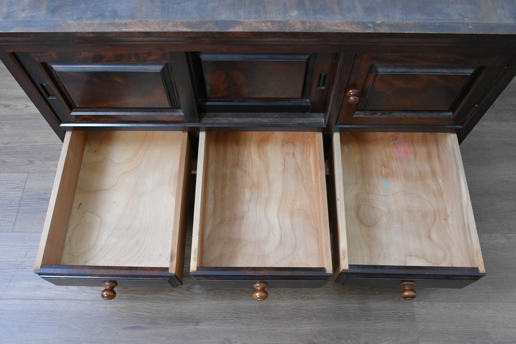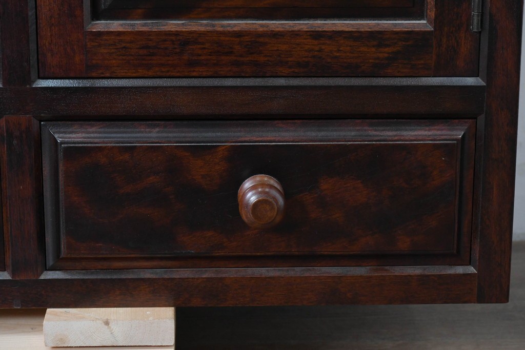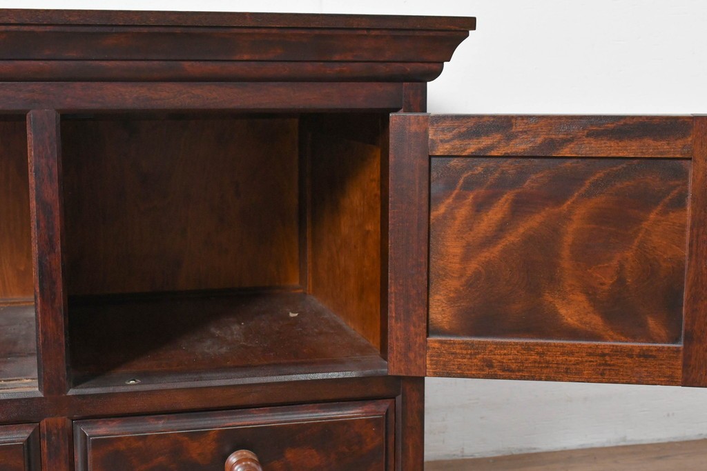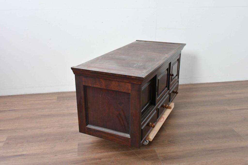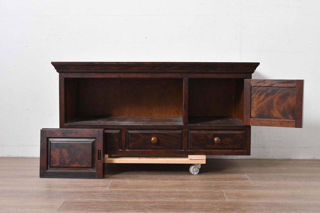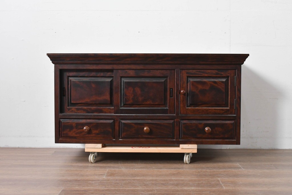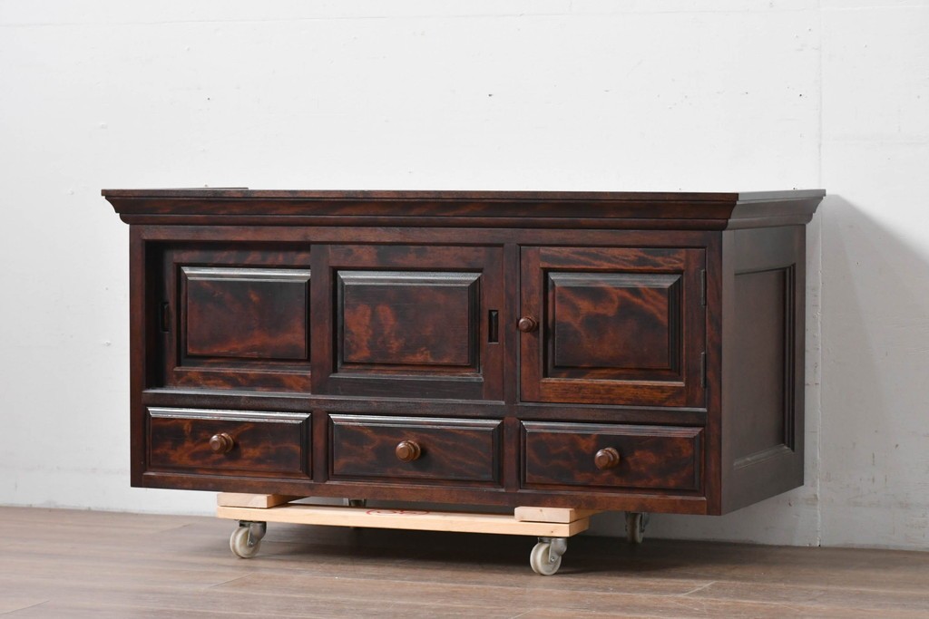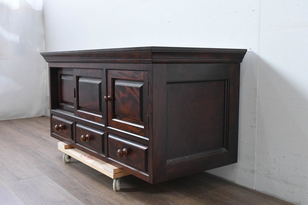 ラフジュ工房> キャビネット・戸棚 > 《脚(台輪)取り付け加工費込み》 中古 美品 松本民芸家具 脚(台輪)付きリメイク 端正な框組みと落ち着いた杢目が引き立つローボード (R-085540)