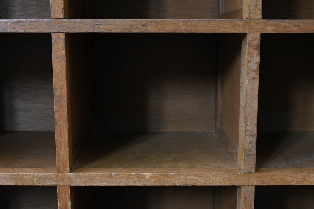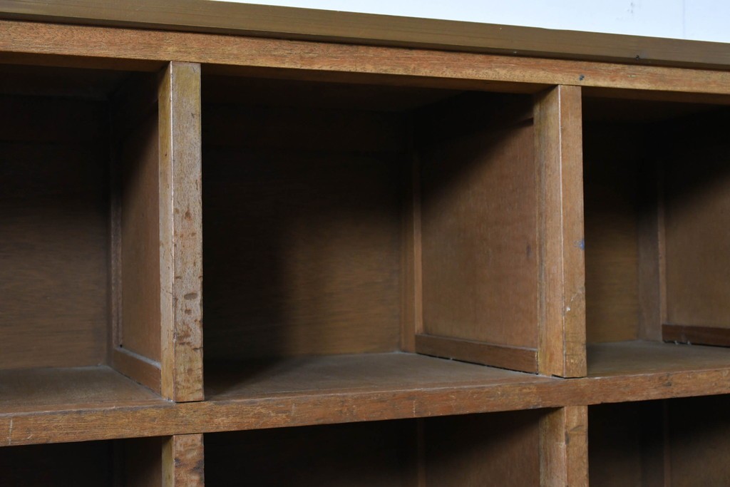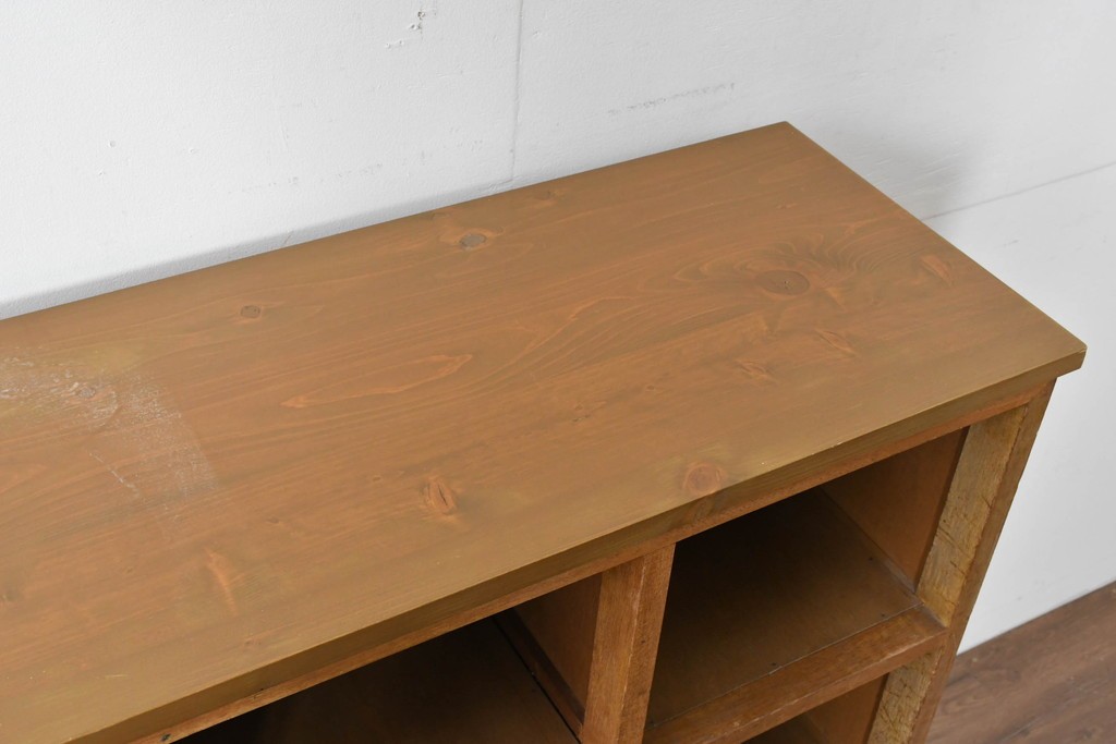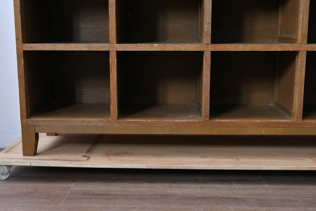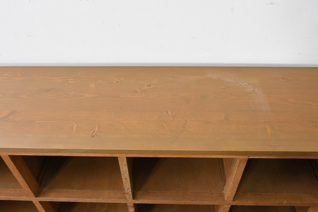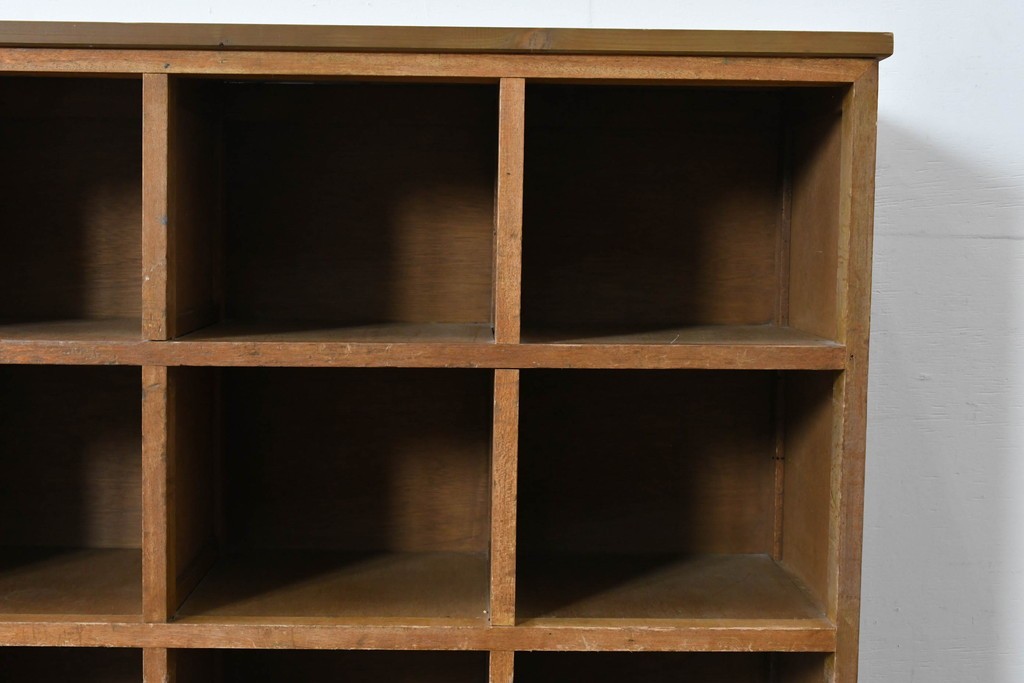 落ち着いた木味を生かしたつくりで、均等に仕切られたマス目が実用性の高い収納力を備えています。