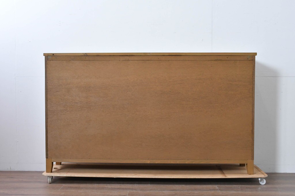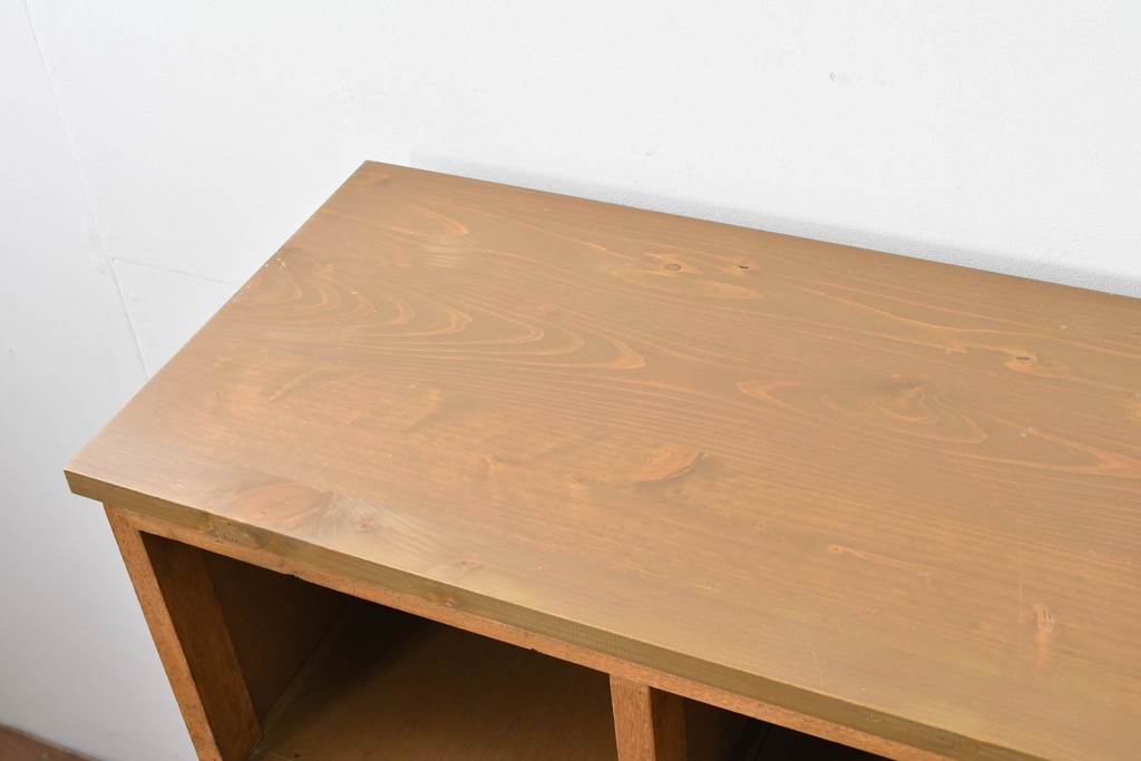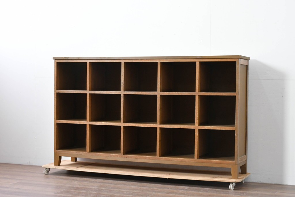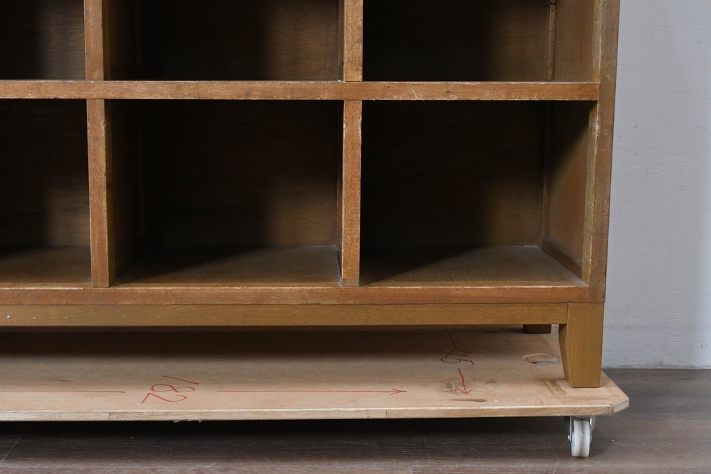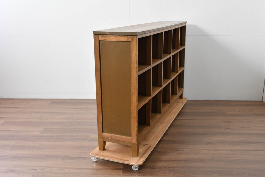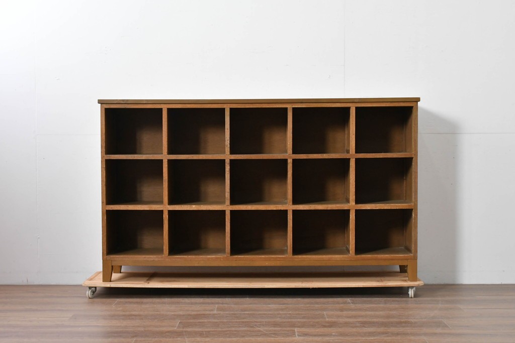 落ち着いた木味を生かしたつくりで、均等に仕切られたマス目が実用性の高い収納力を備えています。
