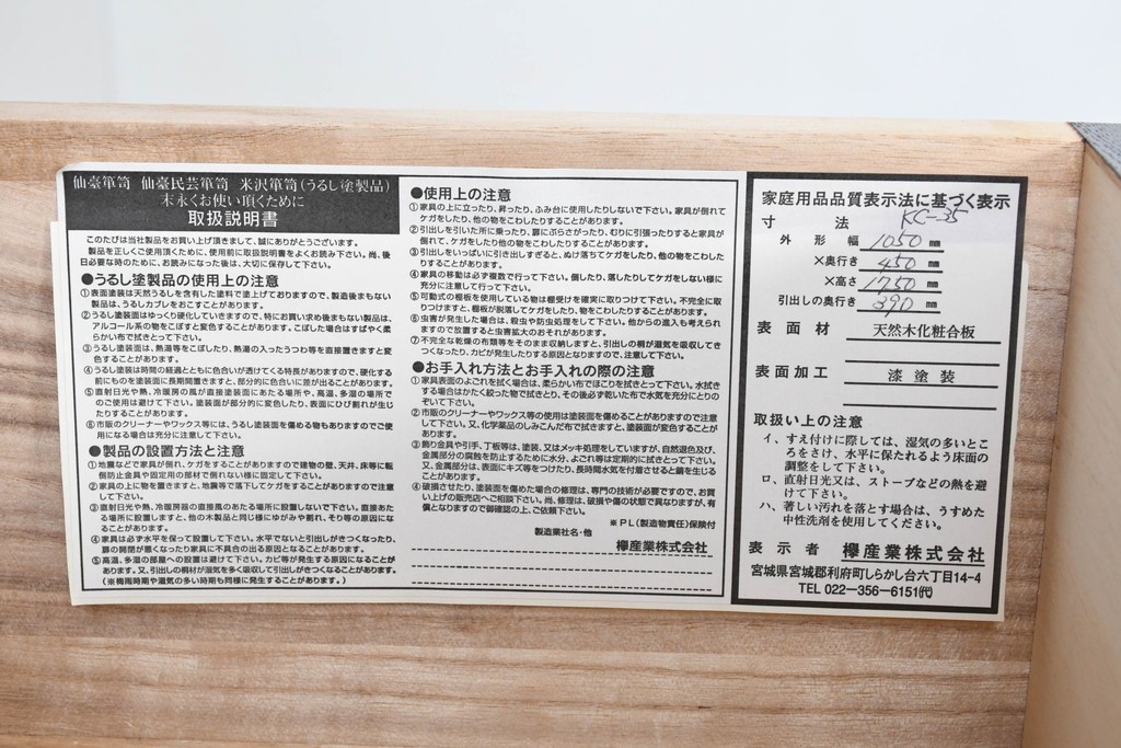 艶やかな漆塗りが木目の美しさを引き立て、仙台民藝ならではの上質な存在感を放つ一台です。滑らかな塗り肌と奥行きある色調が、和の空間はもちろんモダンなインテリアにも自然に調和します。