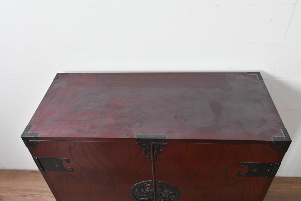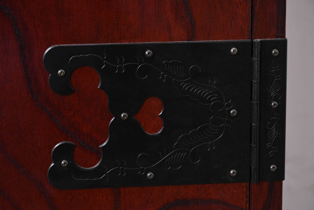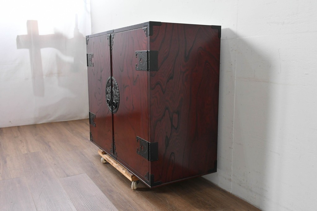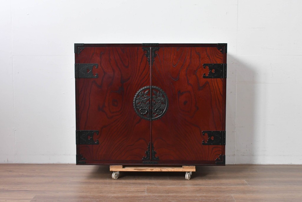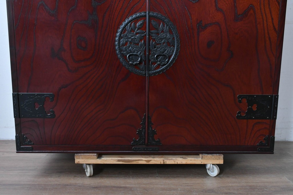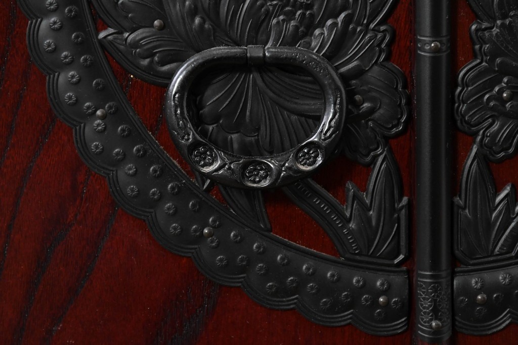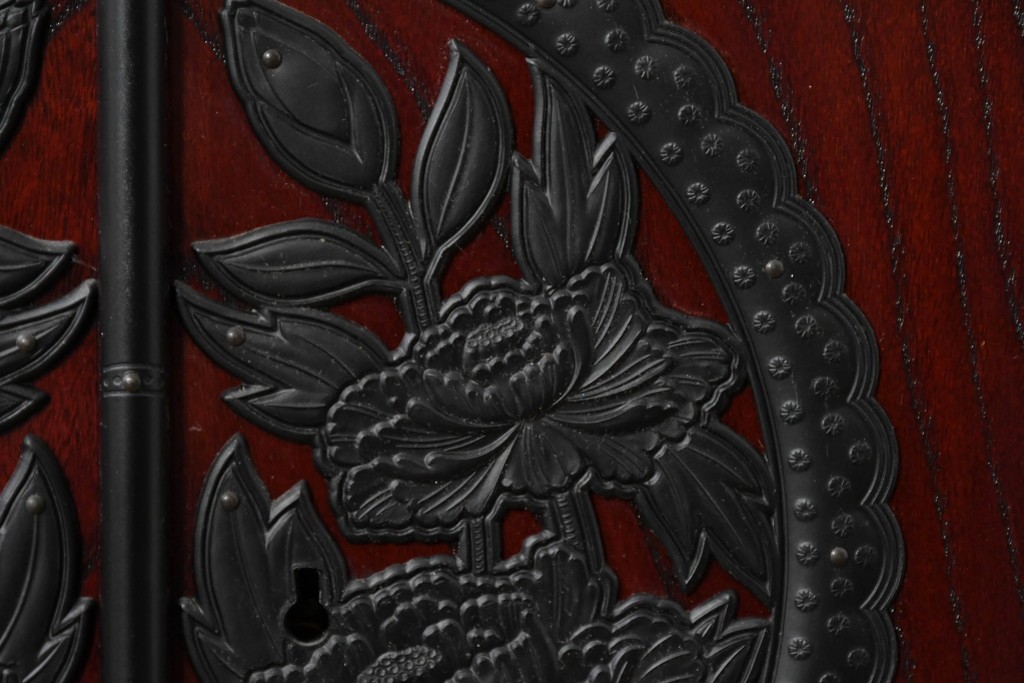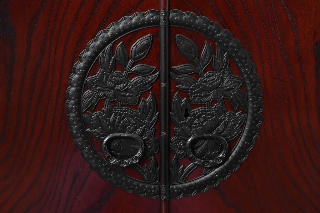前面には牡丹を象った華やかな金具があしらわれ、伝統的な和の意匠が端正な佇まいをつくっています。