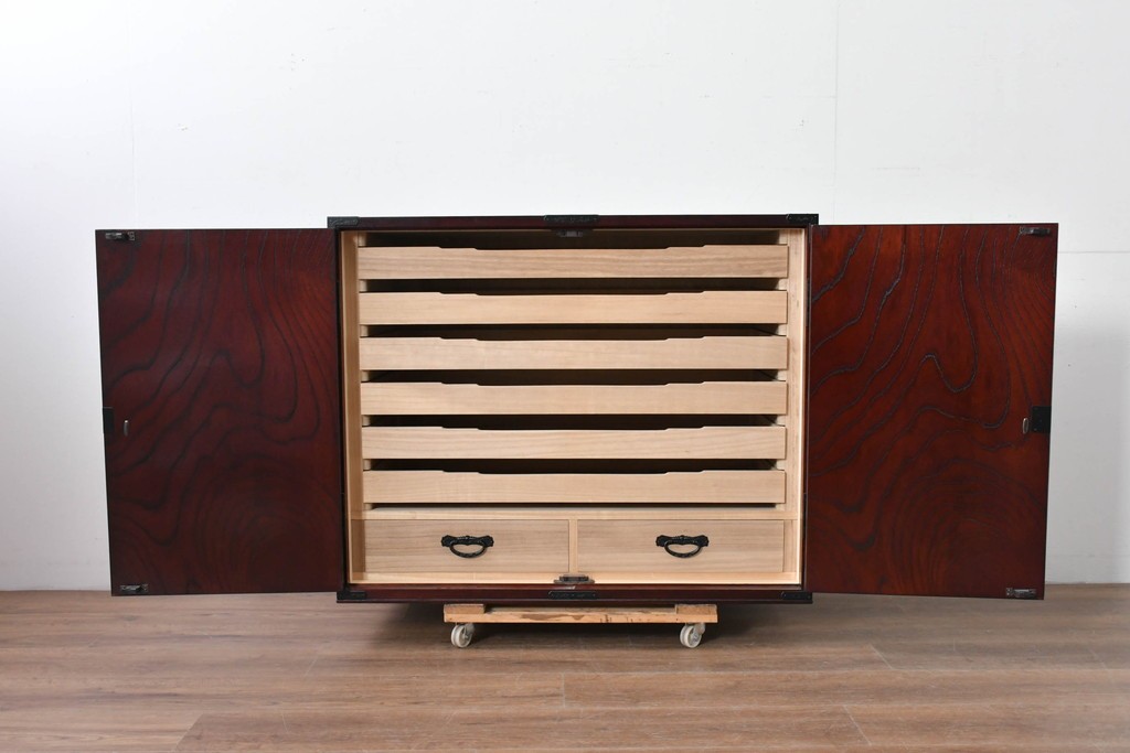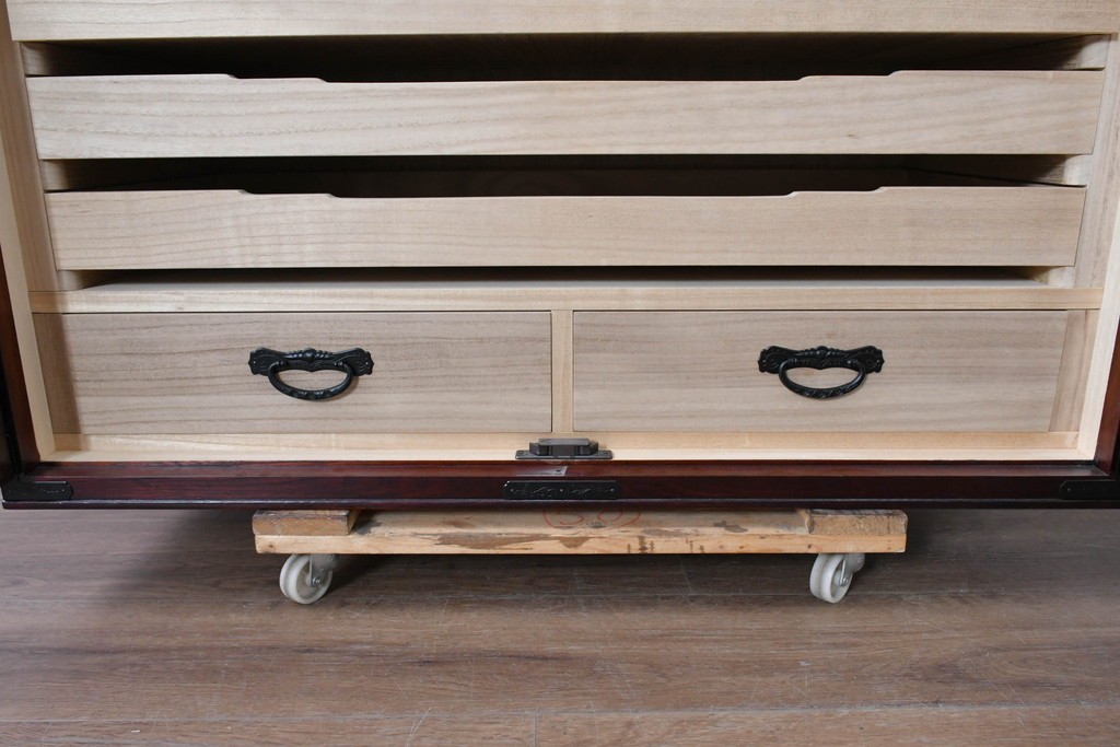 内部には浅めの衣装盆や引き出しが整えられ、着物や和装小物の収納に適した構成です。