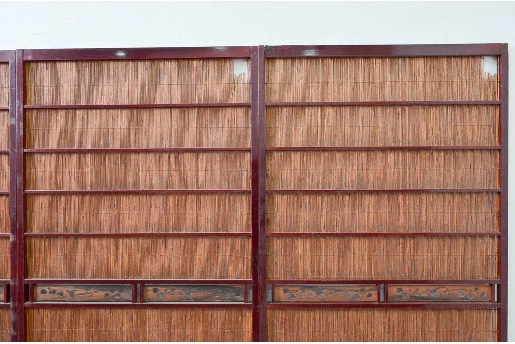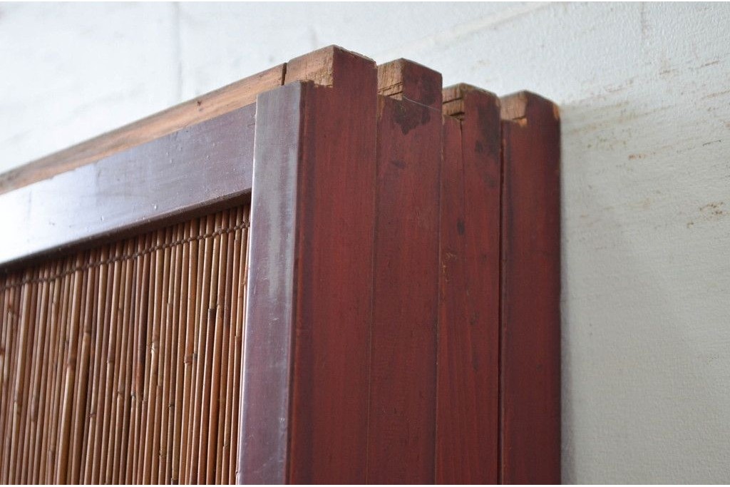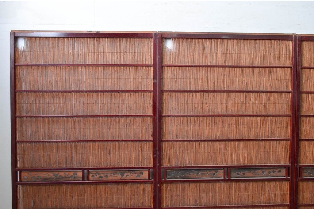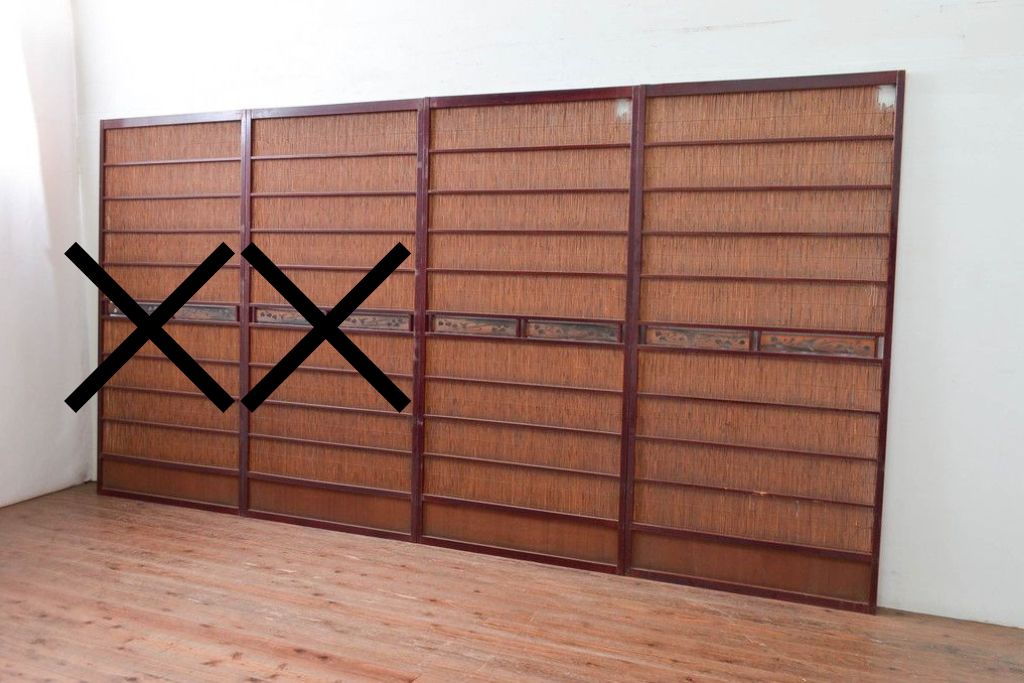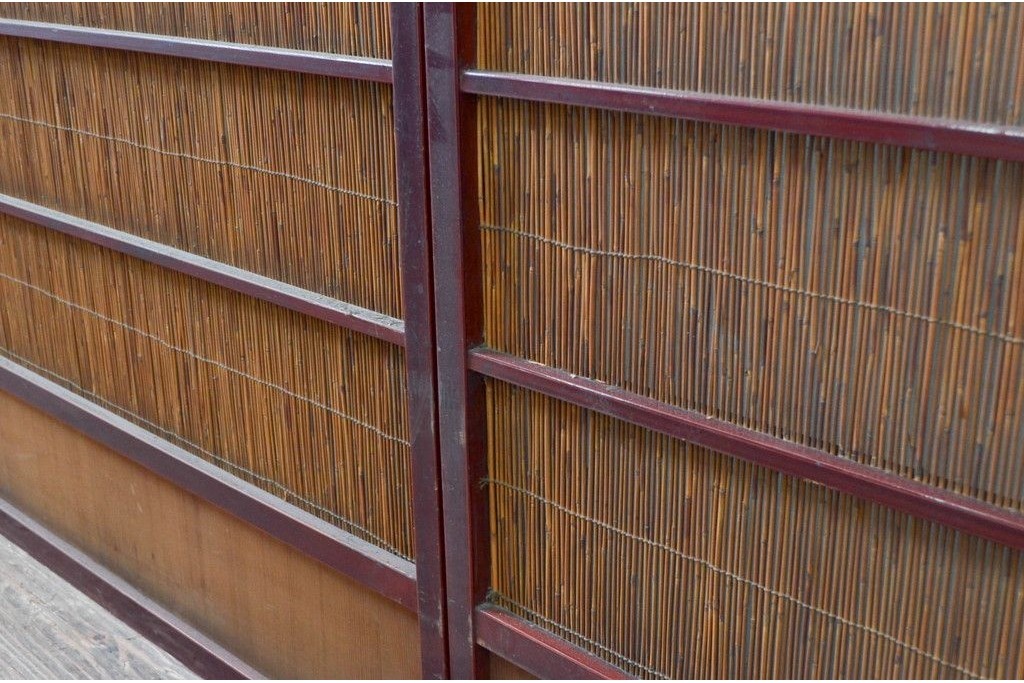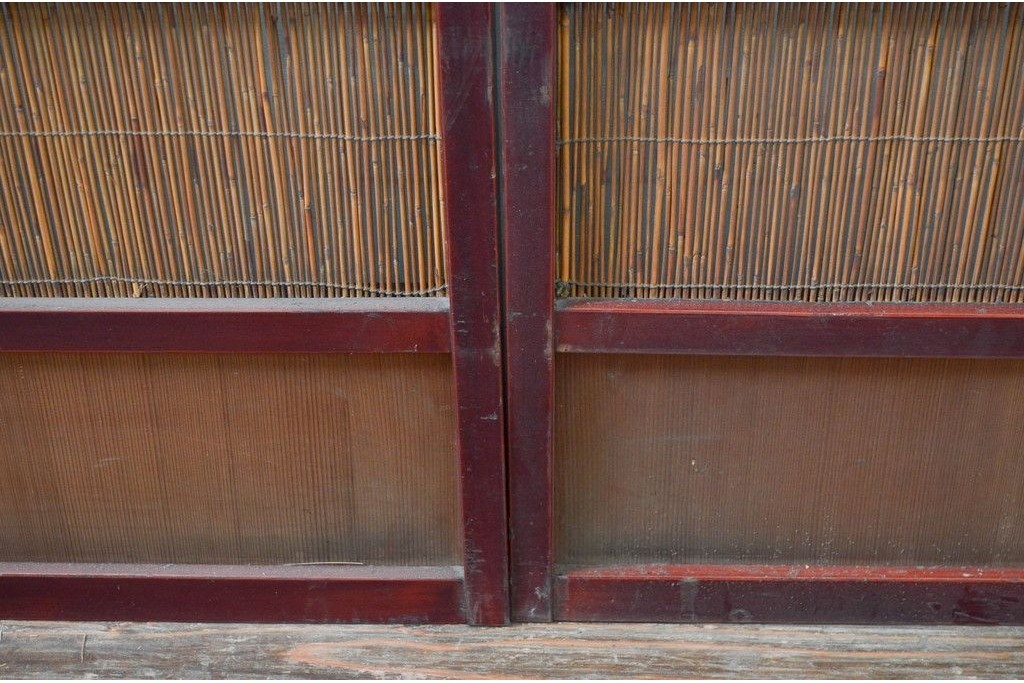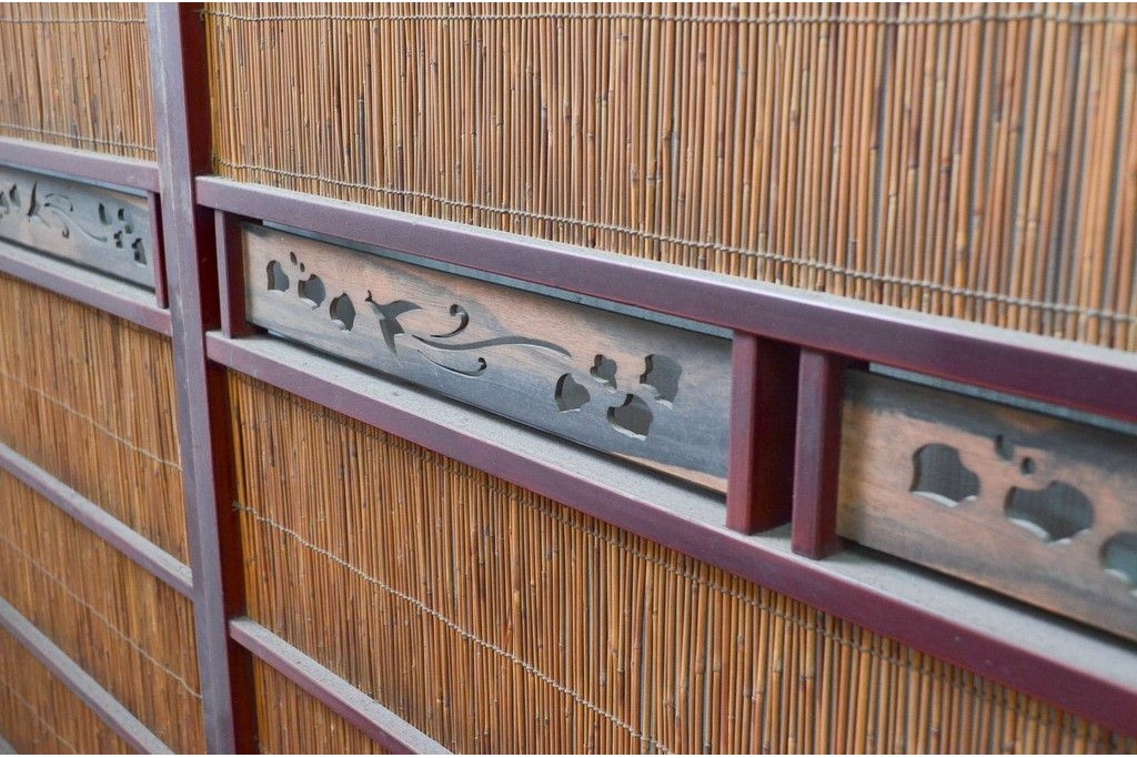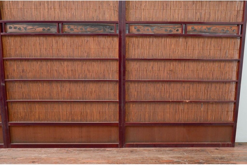 アンティーク建具 漆塗り框 黒柿透かし彫り入りの高級な夏戸2枚セット (R-085600)