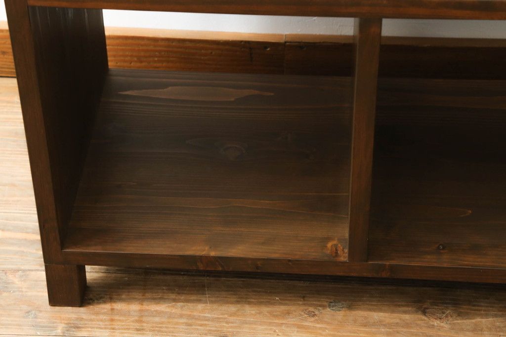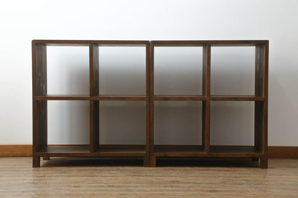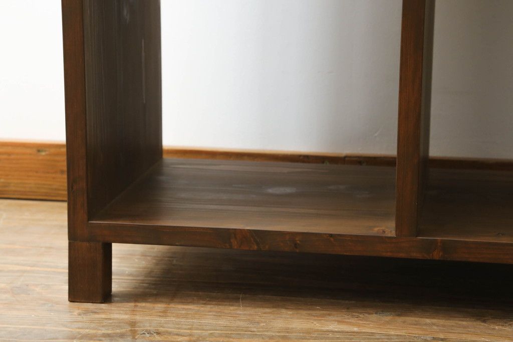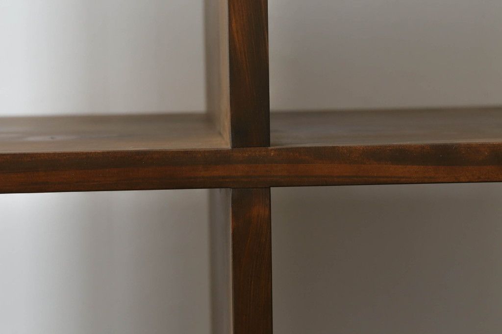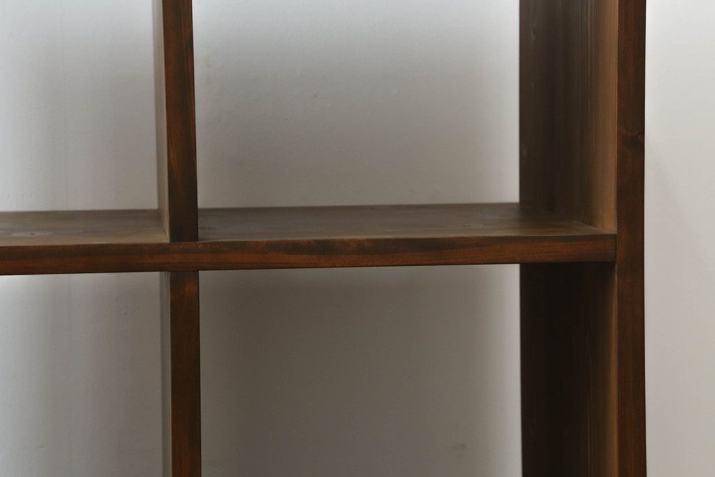 オープンラック・シェルフ> ディスプレイラック > マス目棚を2台新規製作!脚を取り外せる仕様にし、自然な茶色に着色仕上げ。(飾り棚、本棚、ディスプレイラック、オープンラック、ブックシェルフ、オープンシェルフ)