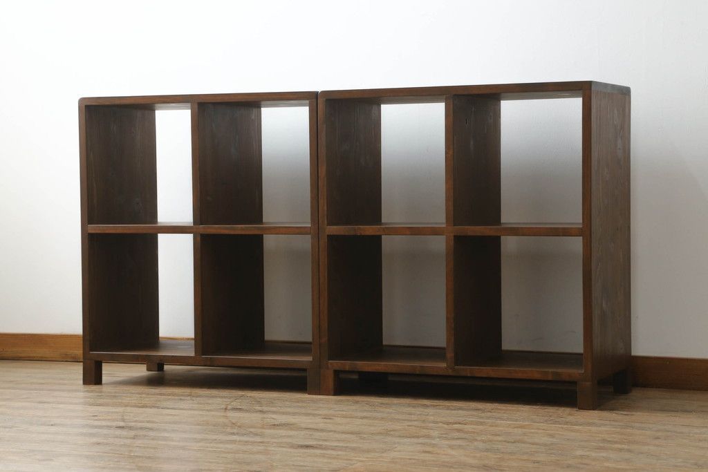 オープンラック・シェルフ> 本棚 > マス目棚を2台新規製作!脚を取り外せる仕様にし、自然な茶色に着色仕上げ。(飾り棚、本棚、ディスプレイラック、オープンラック、ブックシェルフ、オープンシェルフ)