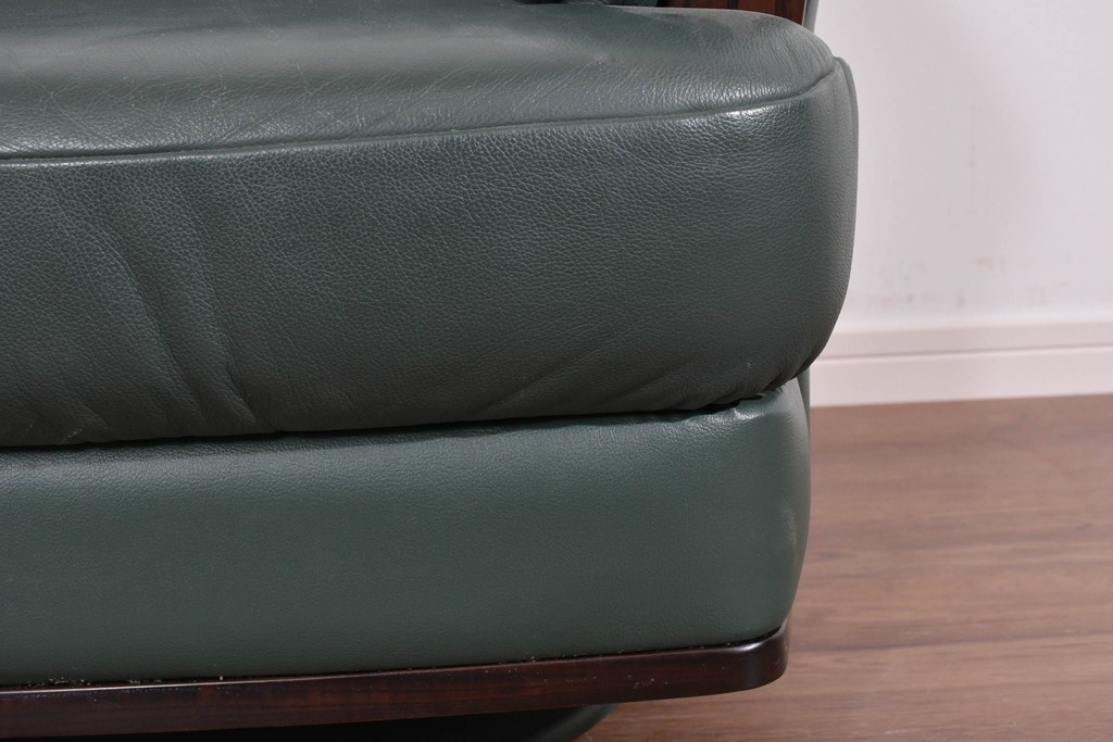 サイドには落ち着いた木部パーツがあしらわれ、レザーの質感と調和しながら空間に上品なアクセントを添えます。