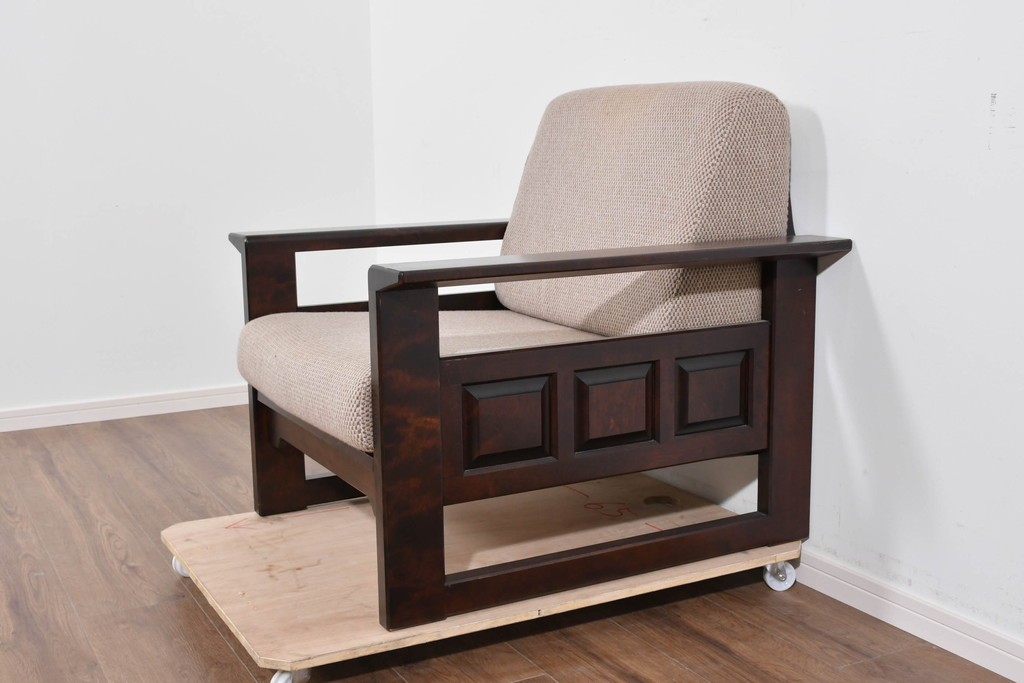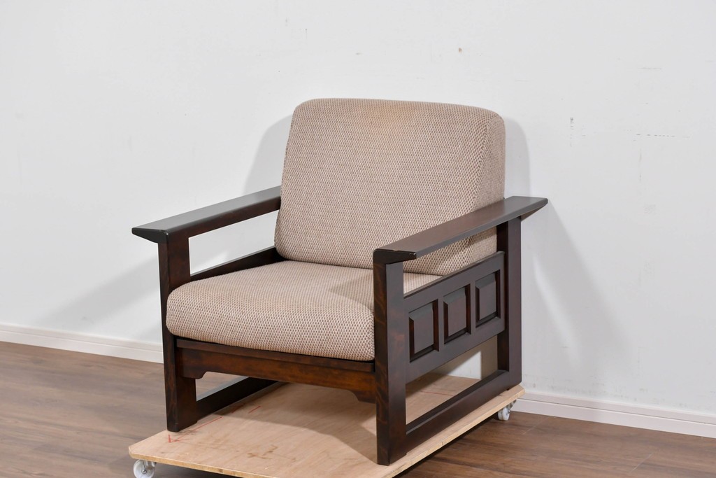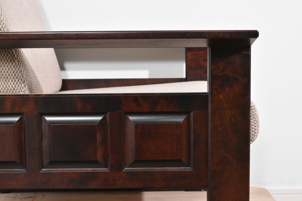落ち着いた色味の木部がしっかりとした存在感を放ち、民芸家具らしい力強く温かな佇まいを感じさせます。