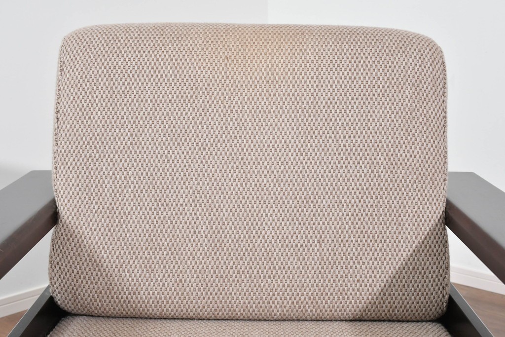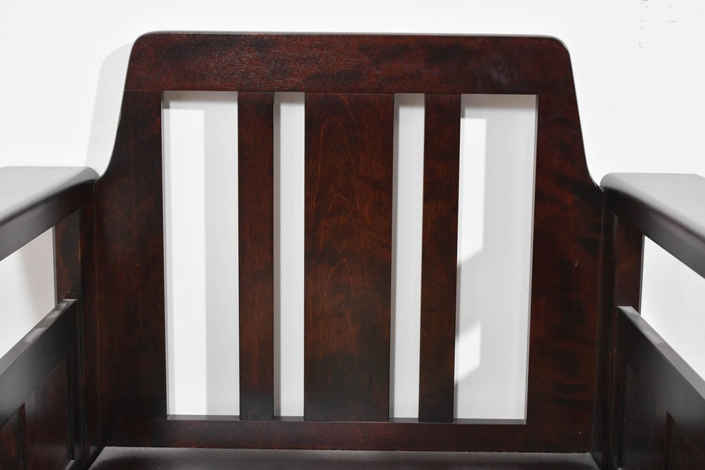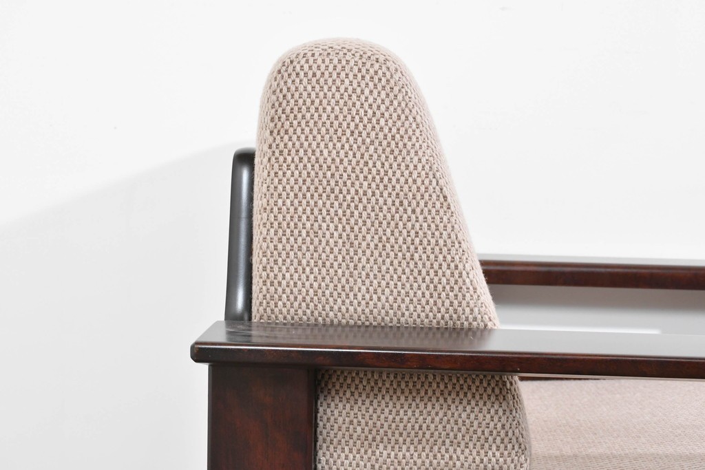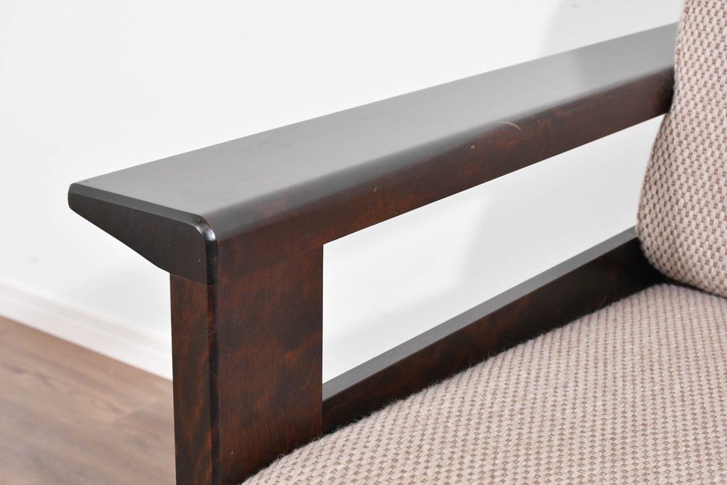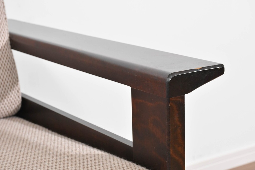 幅広のアームが左右にゆとりをつくり、直線を主体としたフレーム構成が全体を端正にまとめています。