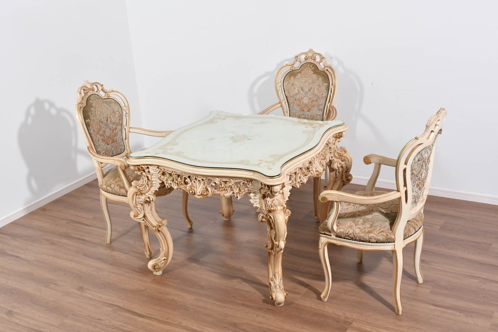 イタリアの名門SILIK(シリック)らしい、優美な曲線と細やかな装飾を備えたロココ調のダイニングチェアです。背や脚に施された装飾が華やかで、空間全体をエレガントに彩ります。美しい佇まいはクラシックインテリアとも調和し、上品な存在感を放ちます。