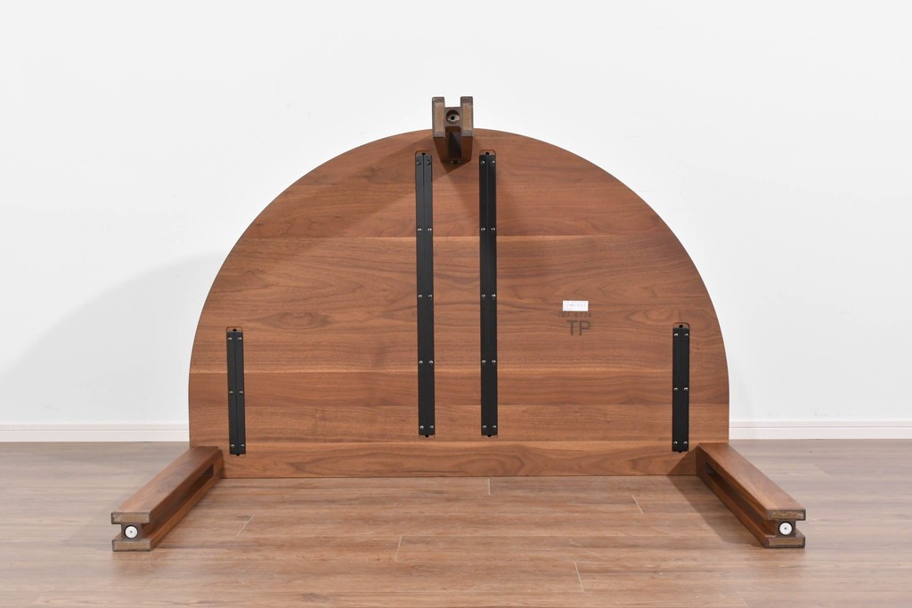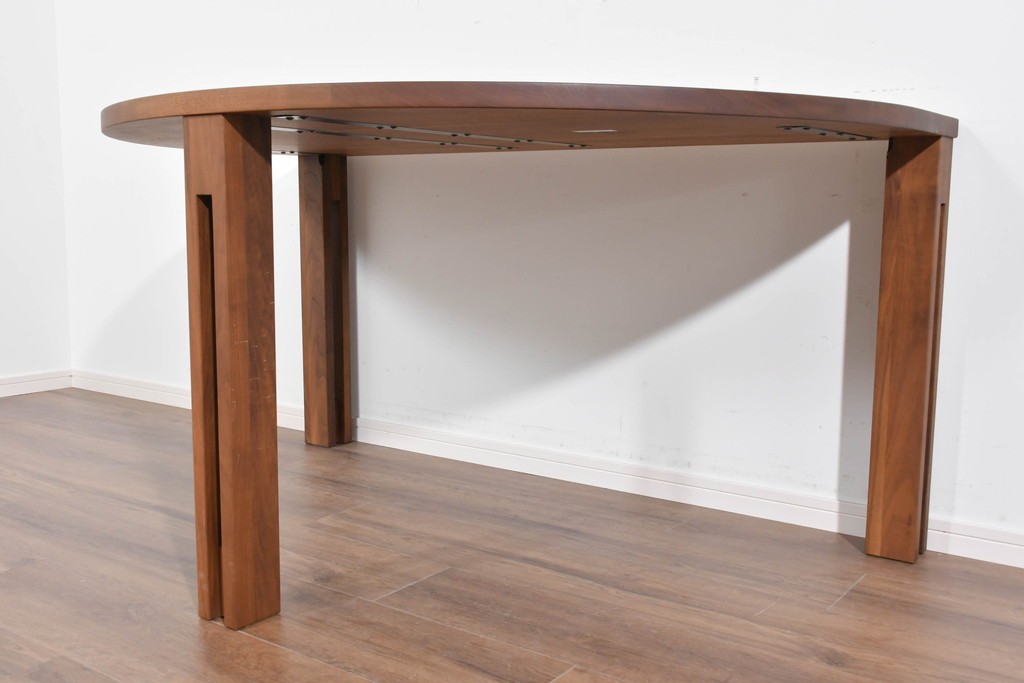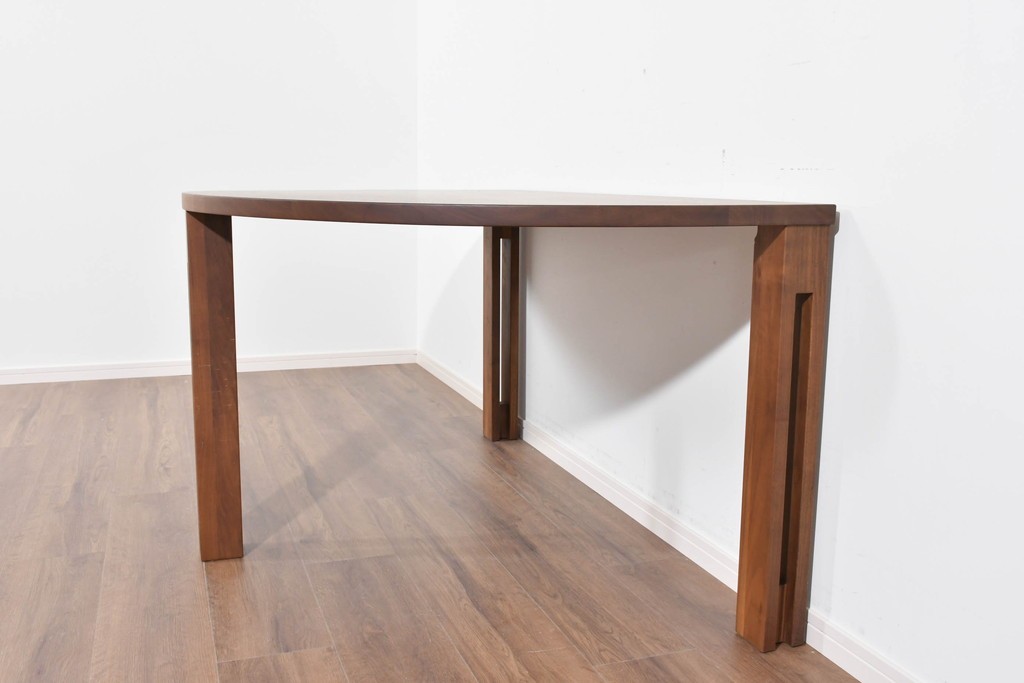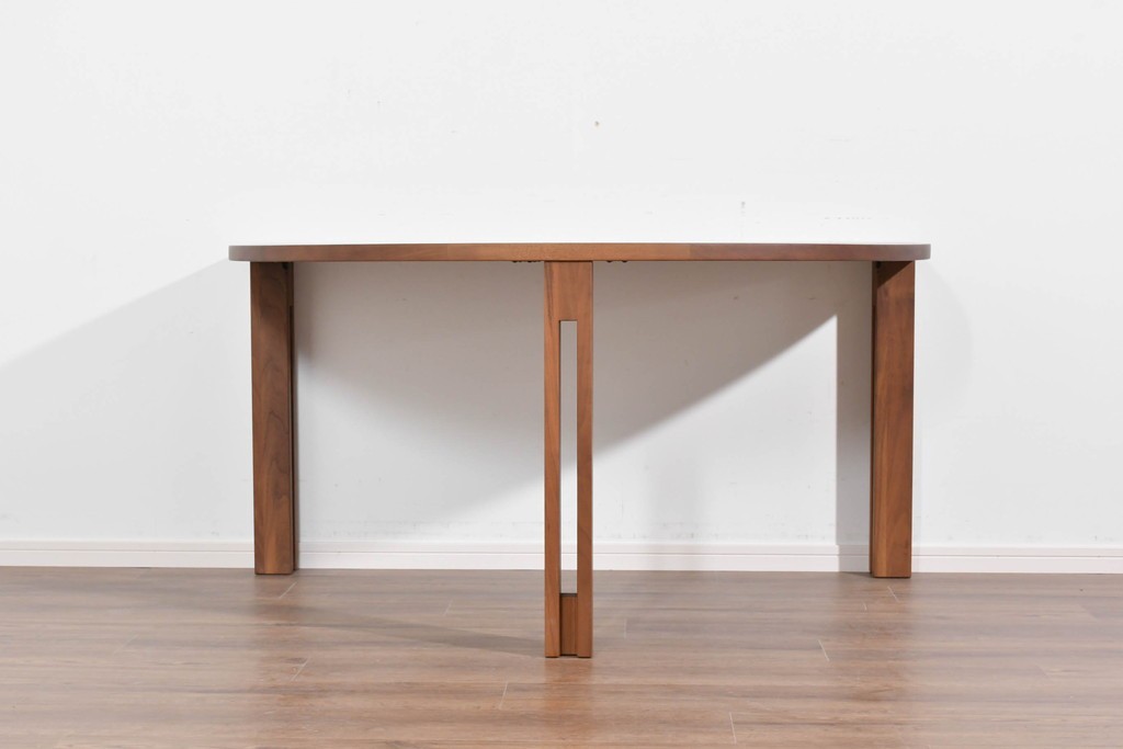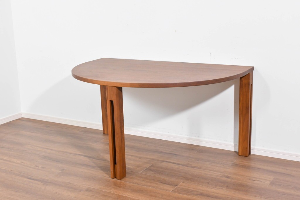 半円形の天板が特徴で、壁付けや小スペースでの使用にも適した実用的な形状を備えています。