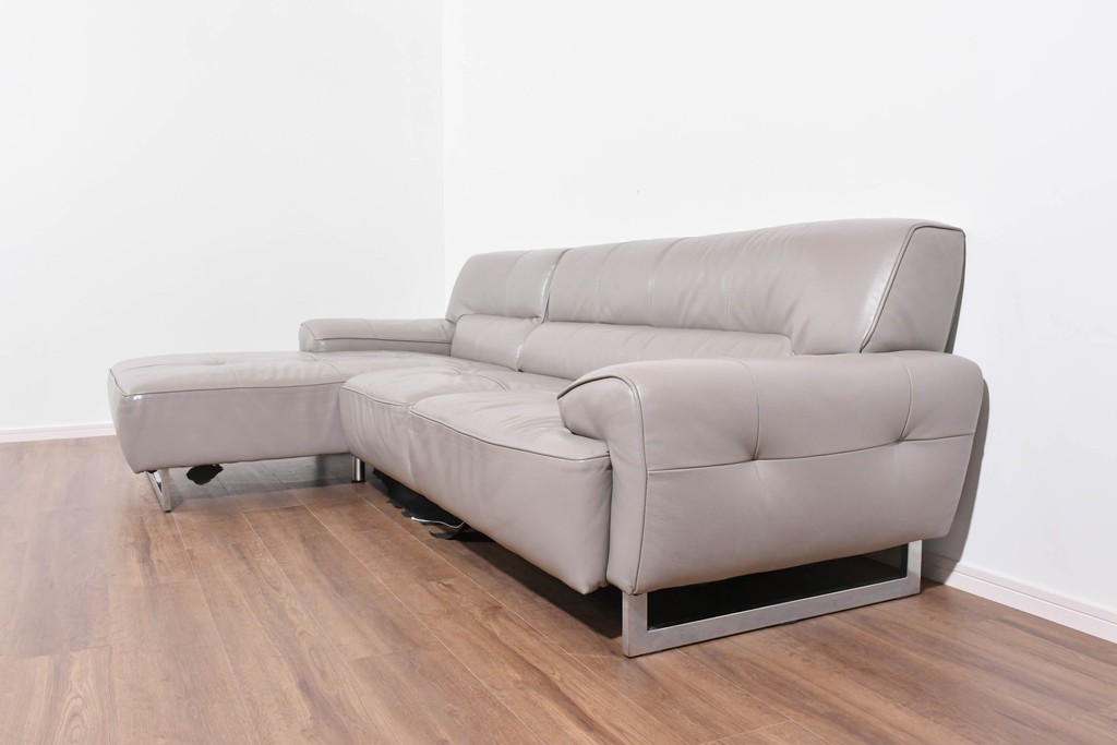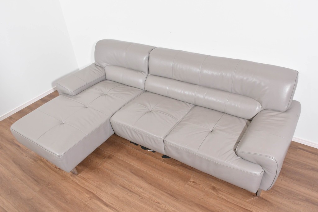 総革仕様のカウチソファで、IDC大塚家具が展開するL/Sシリーズの一台です。