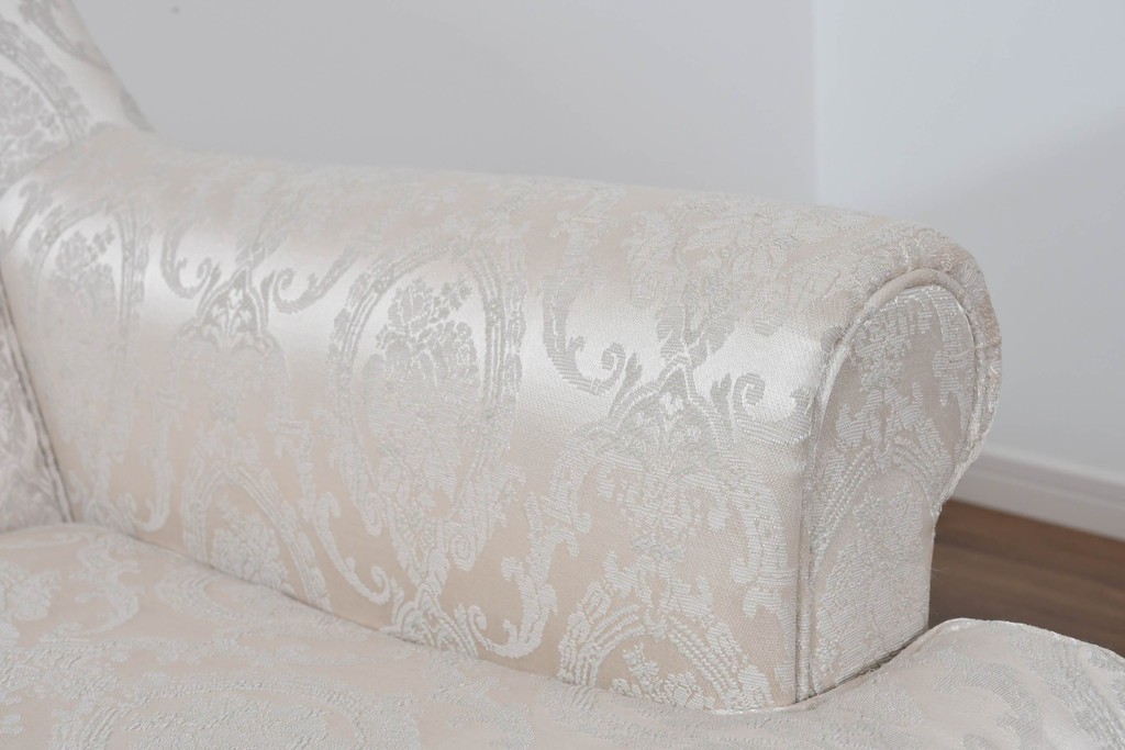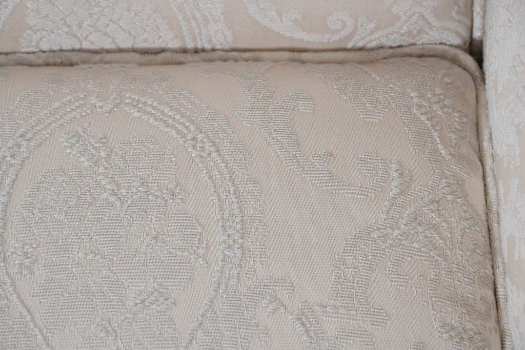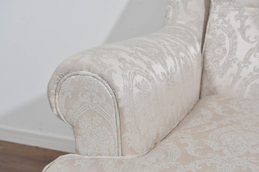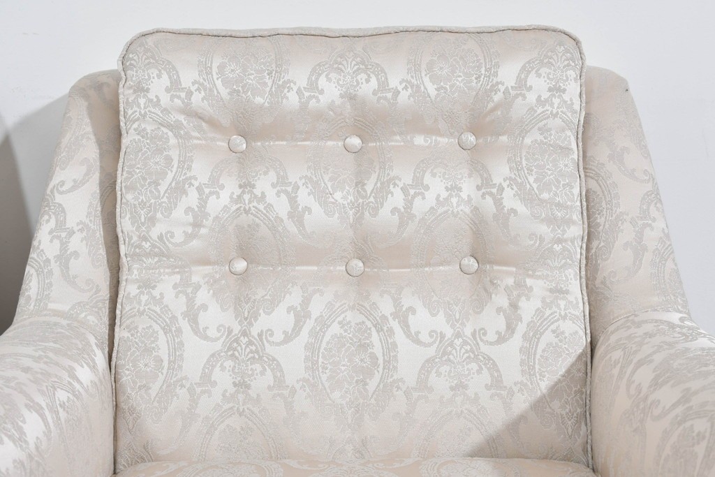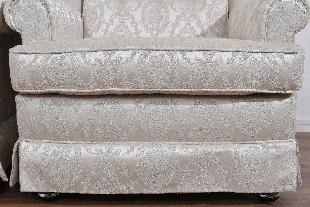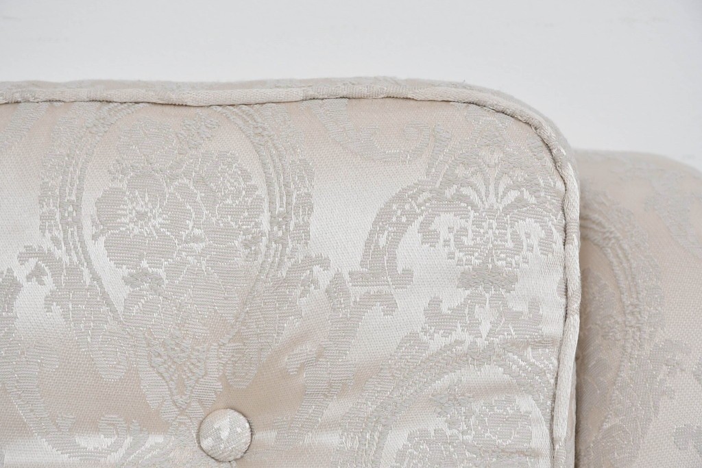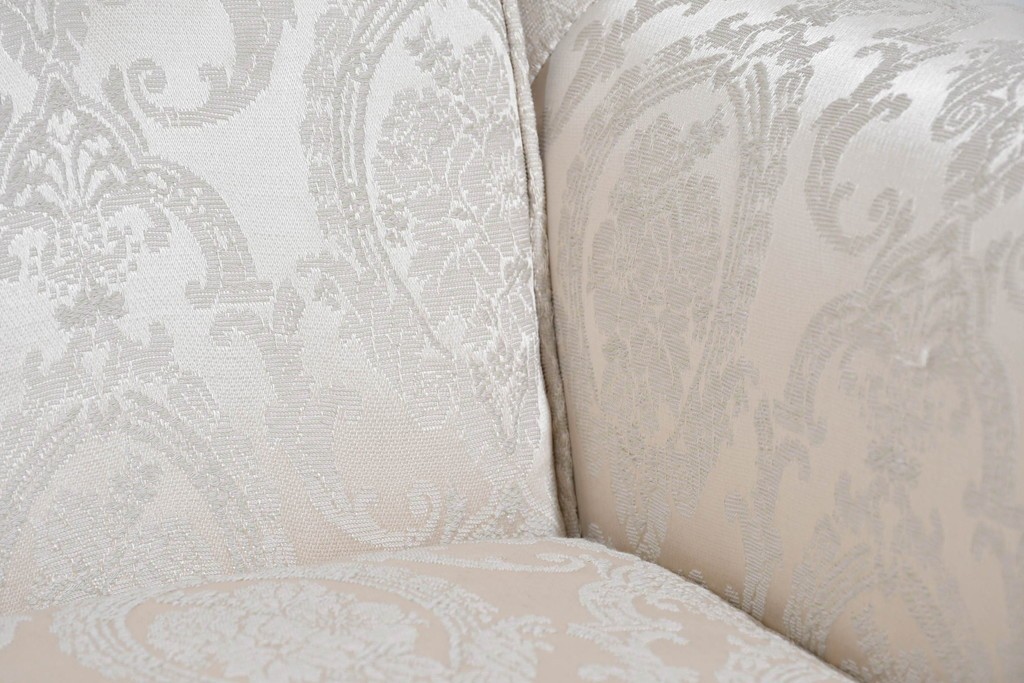 光沢を帯びた織模様の生地を用いた、上品な雰囲気の一人掛けソファ2脚です。