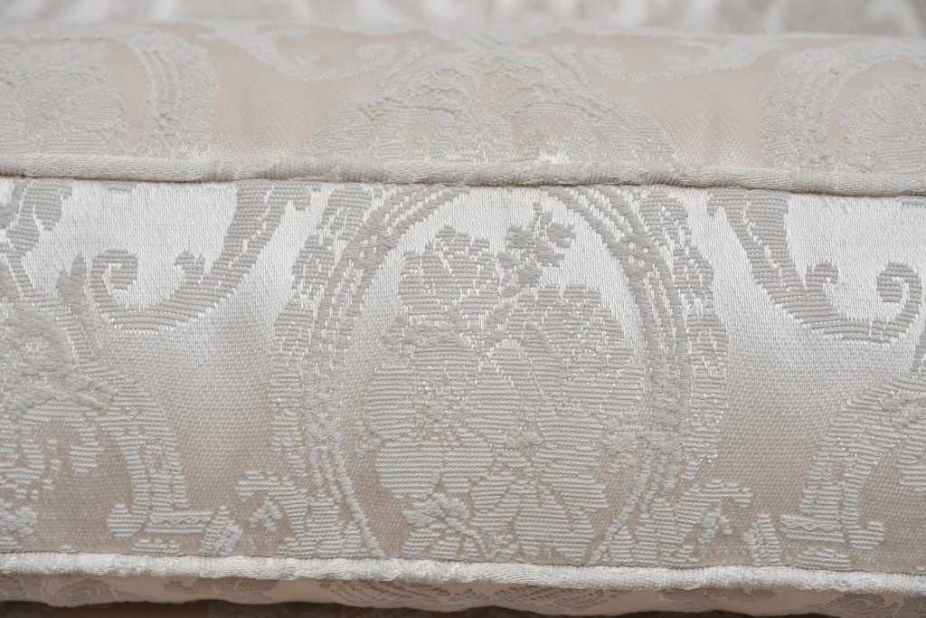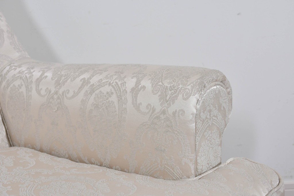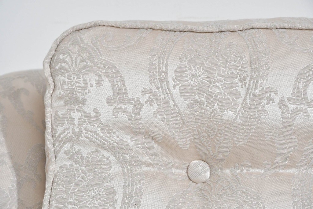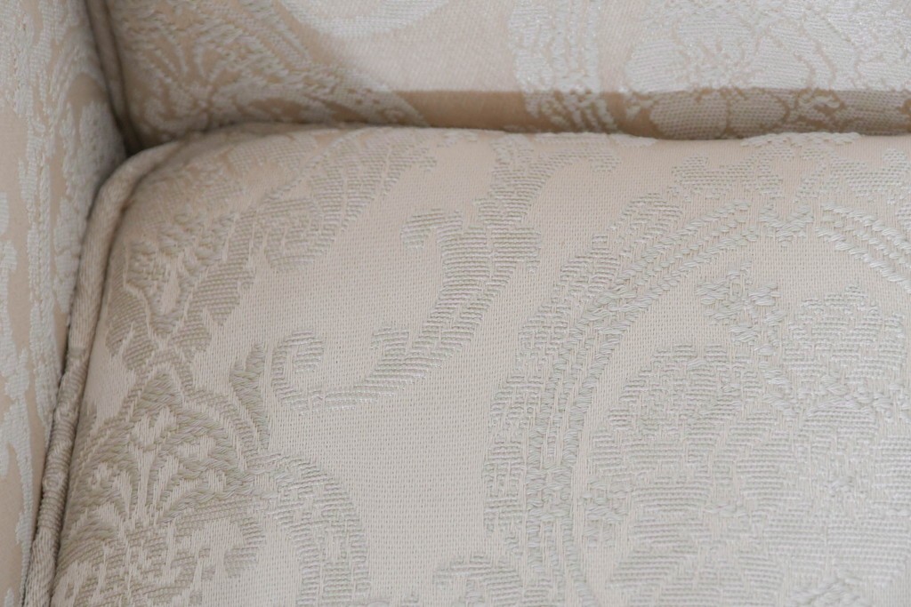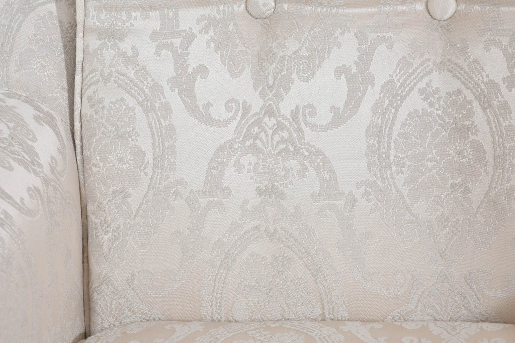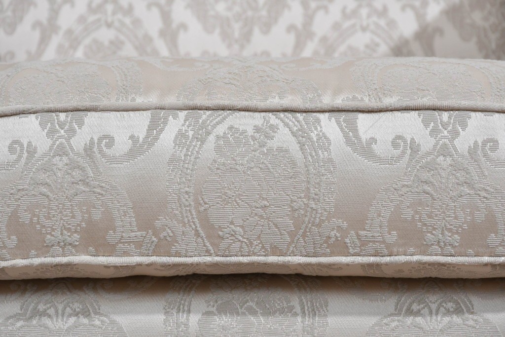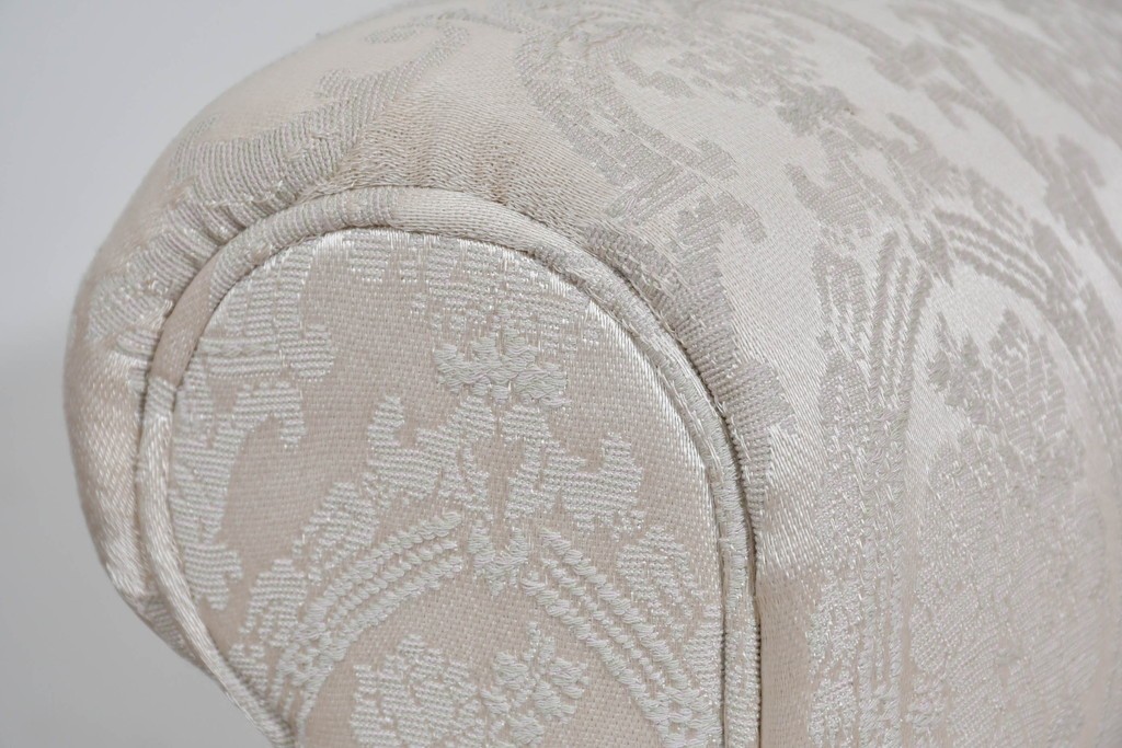 光沢を帯びた織模様の生地を用いた、上品な雰囲気の一人掛けソファ2脚です。
