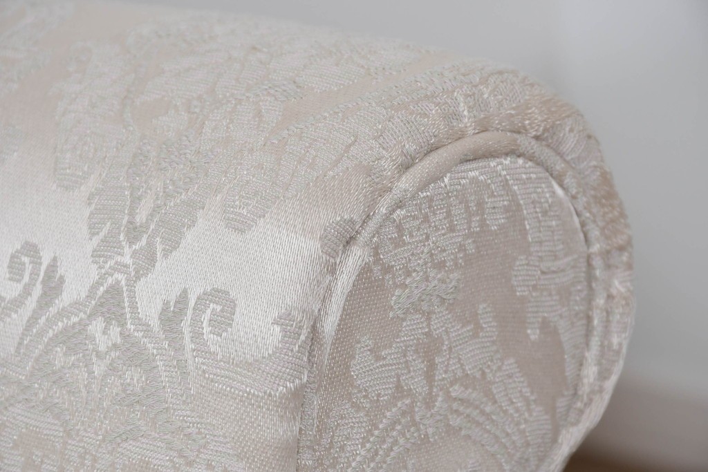 国産の熟練職人によって特注製作されたもので、柔らかな曲線を描くアームや端正なボタン留めなど、細部にまで丁寧なつくりが感じられます。