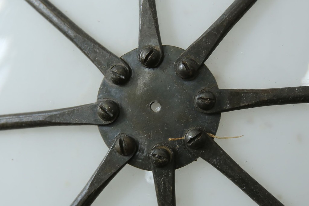 透かし模様の真鍮飾りは細やかな意匠が楽しめ、当時の職人のこだわりを感じられるつくりです。
