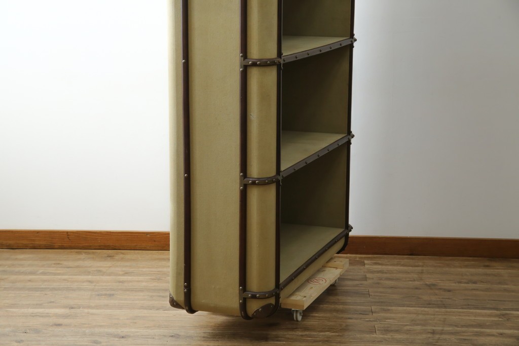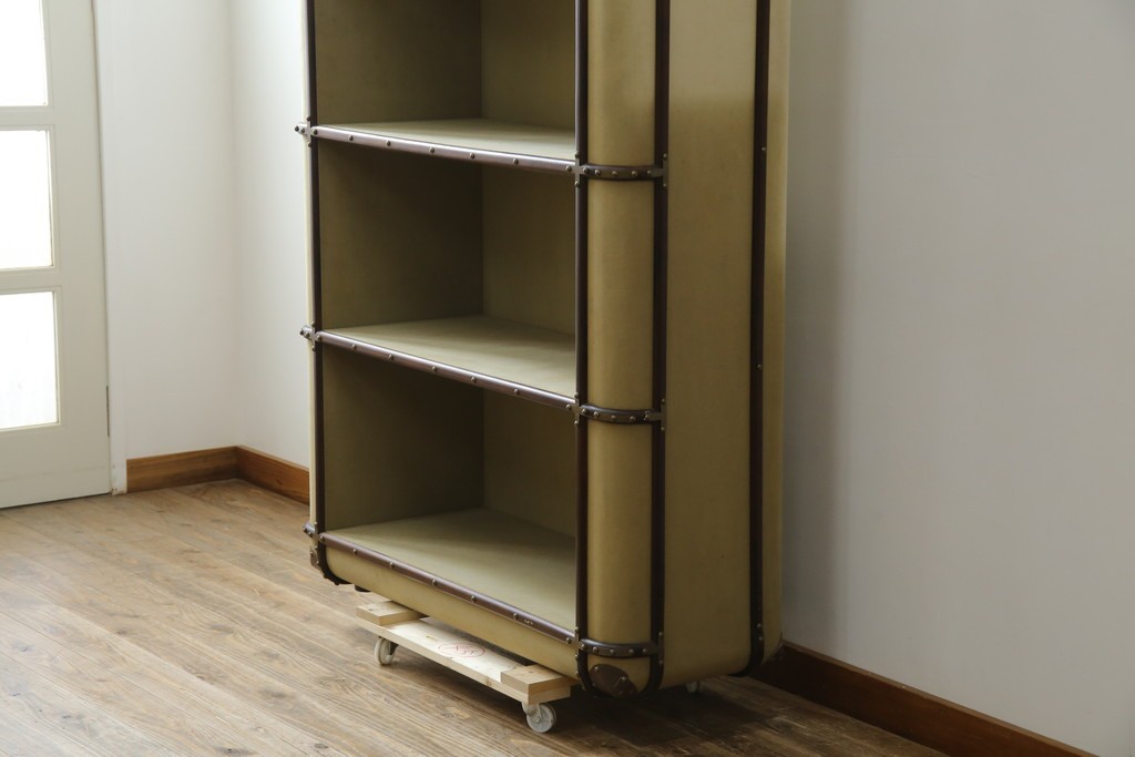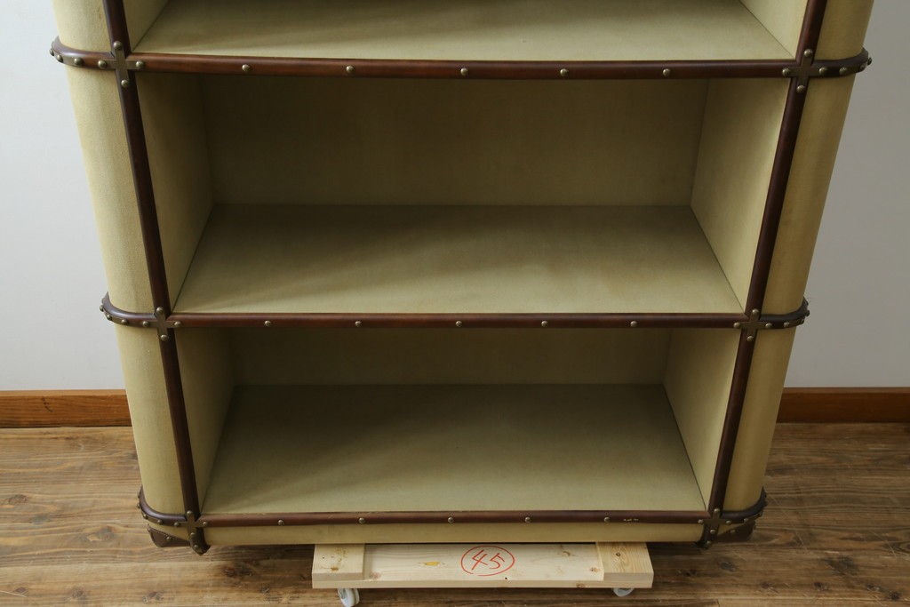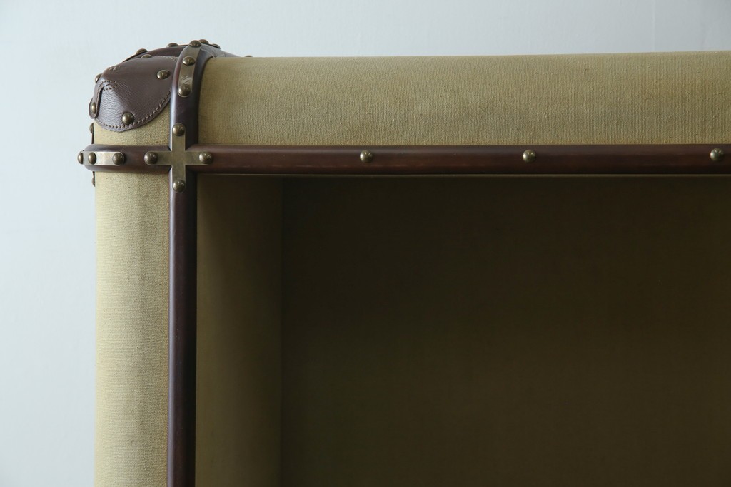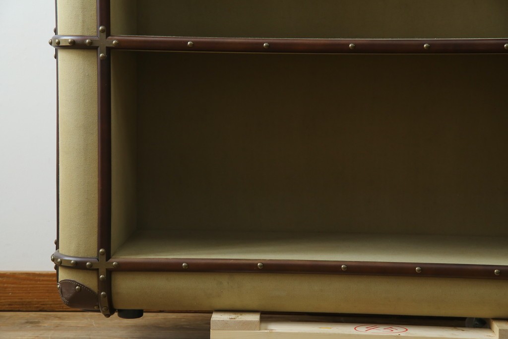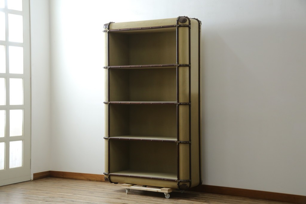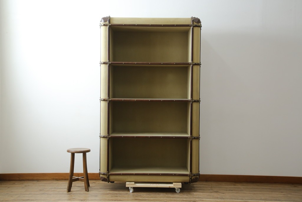 アメリカヴィンテージならではの存在感が漂う、トランク風デザインの本棚です。