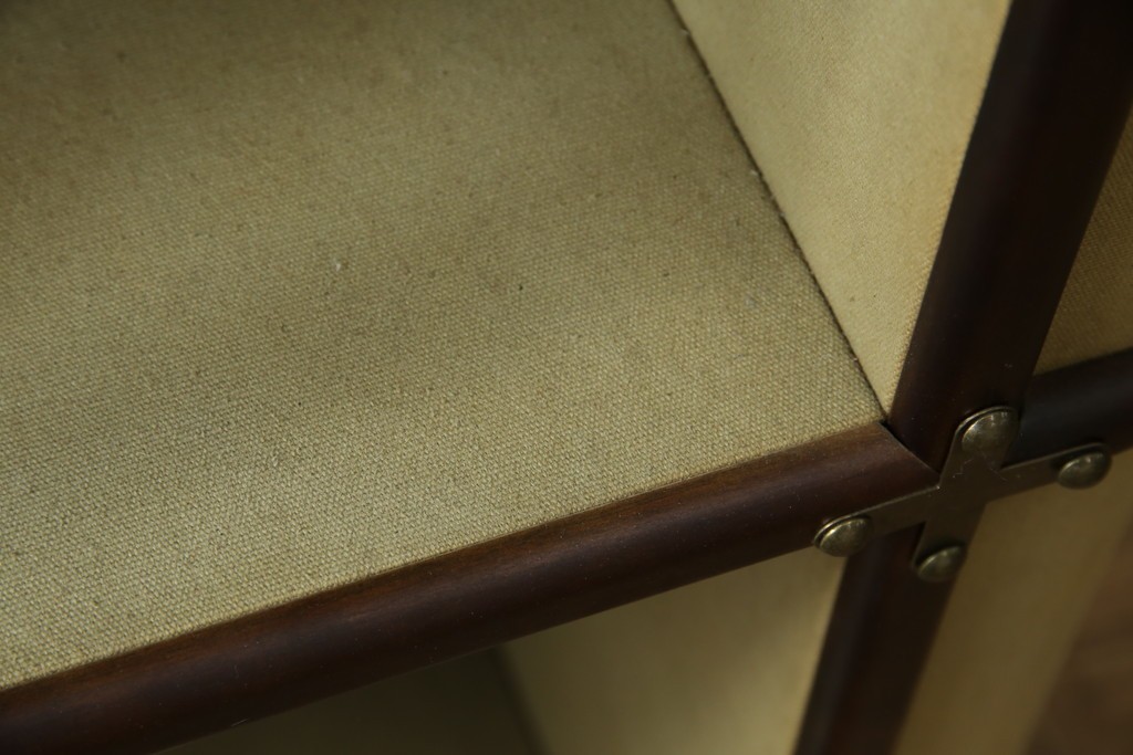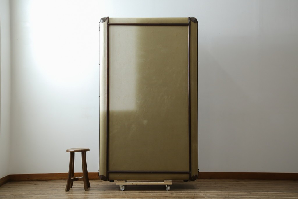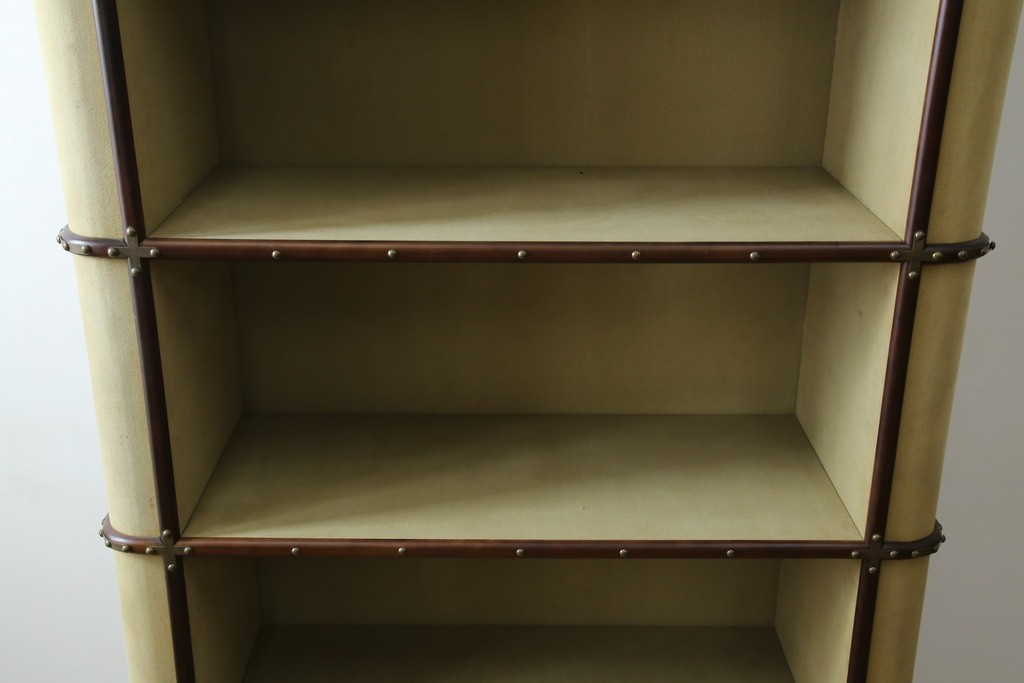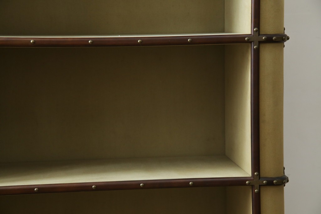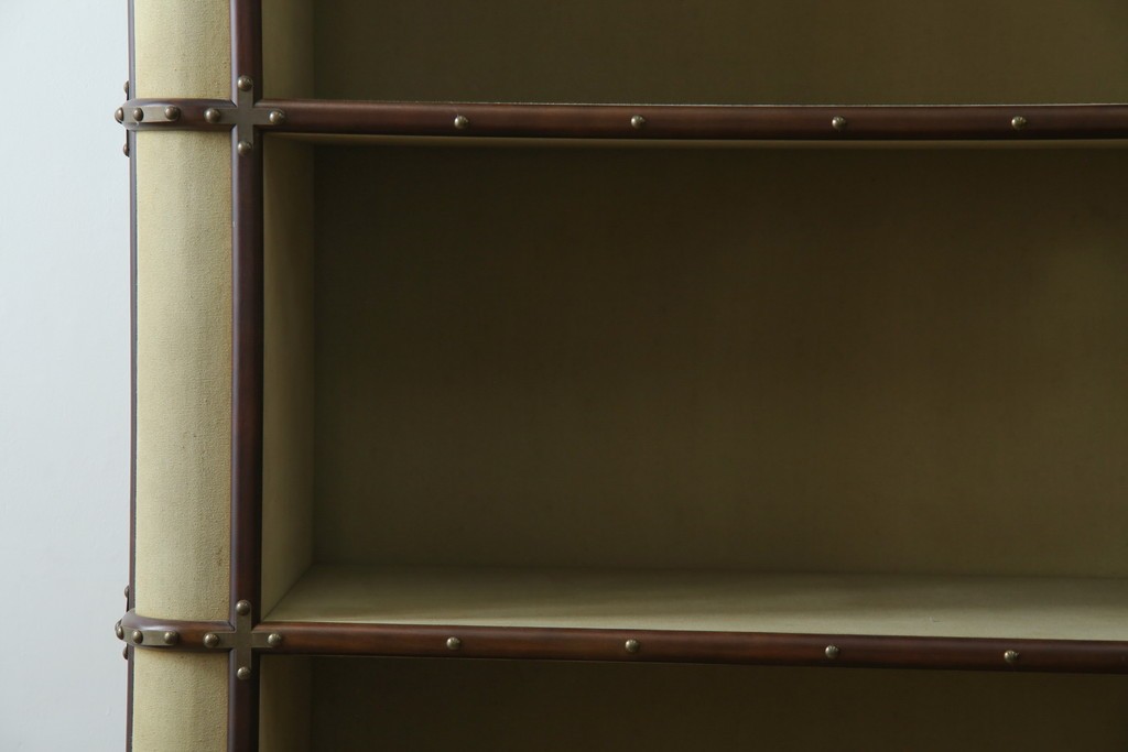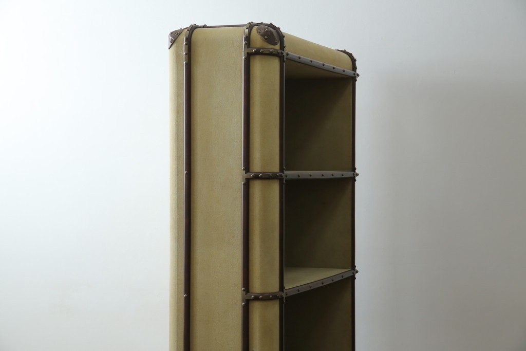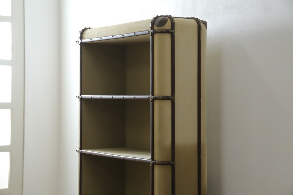 アメリカヴィンテージならではの存在感が漂う、トランク風デザインの本棚です。