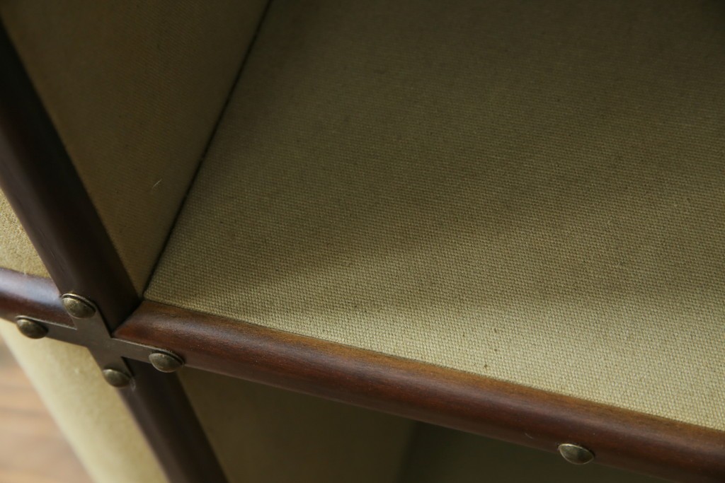 落ち着いたベージュ系の布地と木部の組み合わせは、レトロやミッドセンチュリーの空間にも自然に馴染みます。