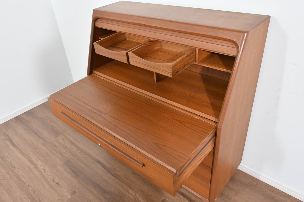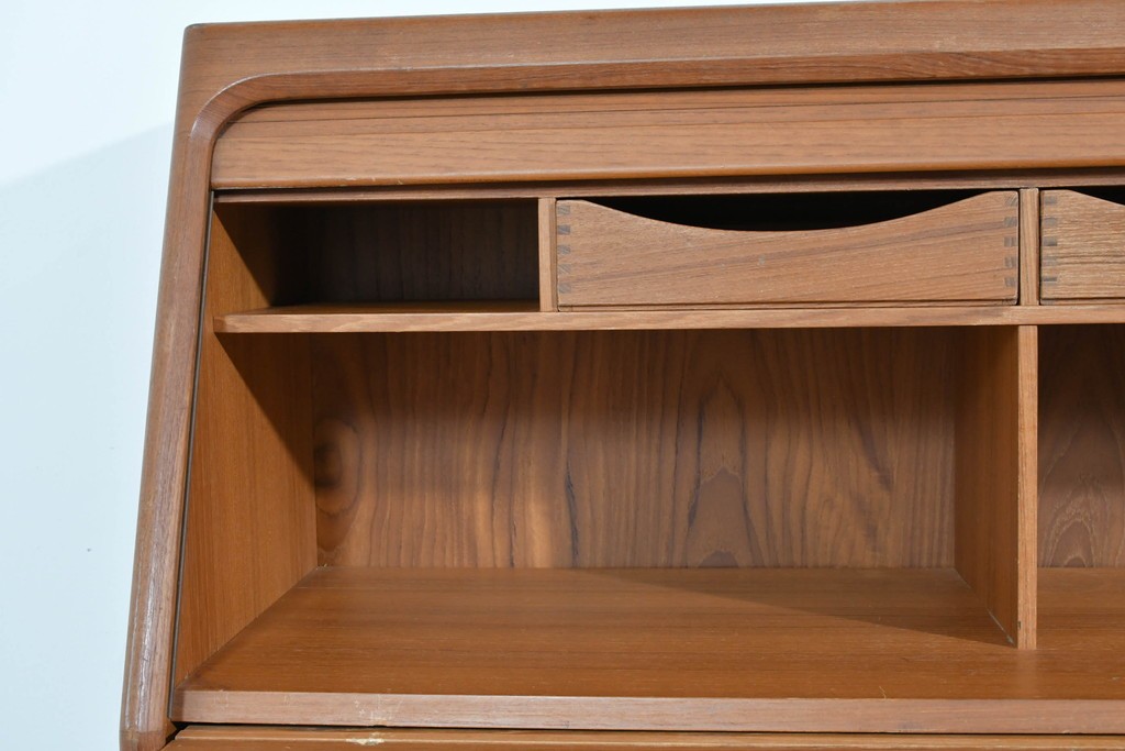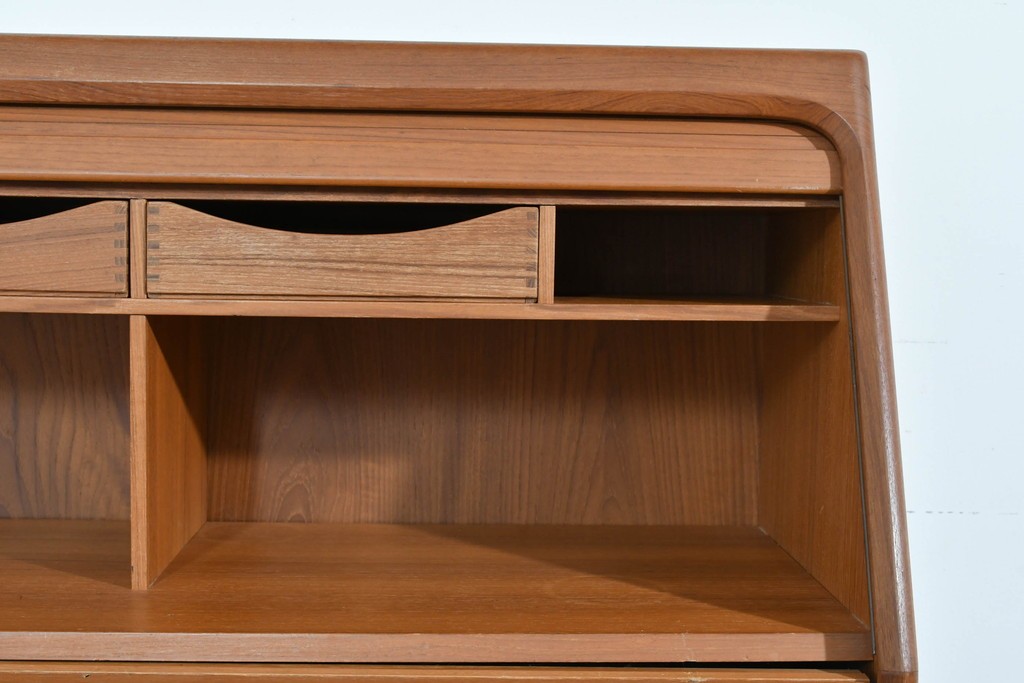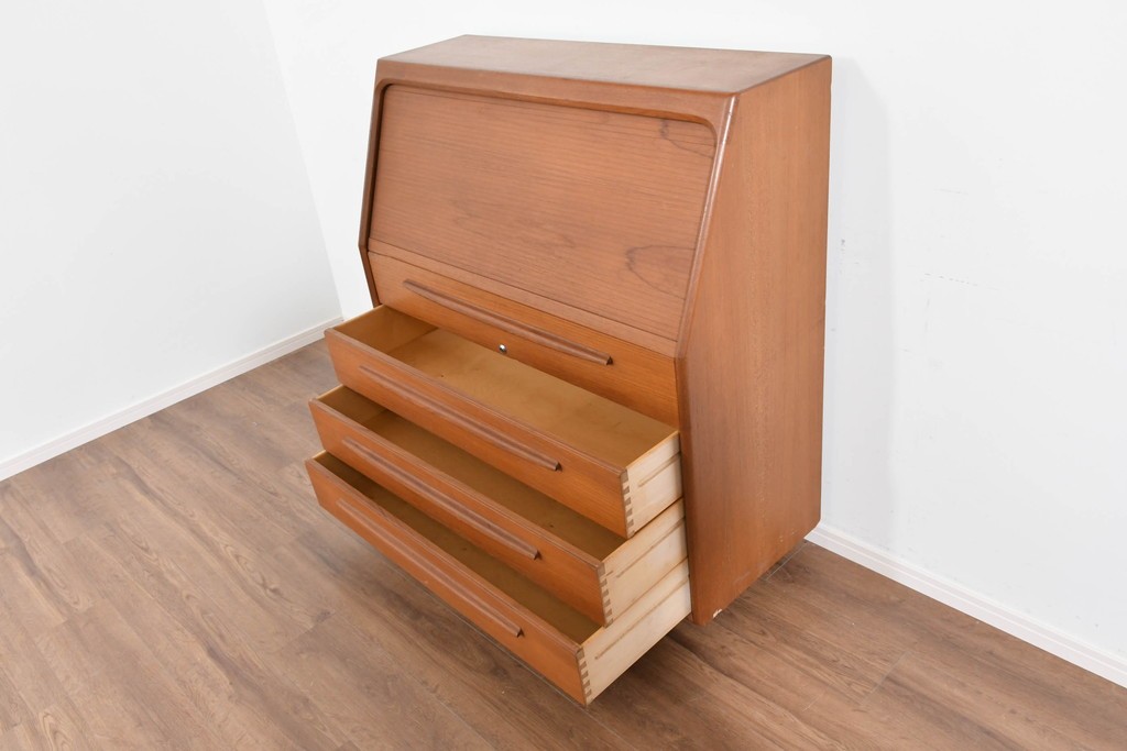 Bernh. Pedersen & Son を象徴するディテールである「シャッター扉」を備えたビューロー。開閉の滑らかな操作性はもちろん、閉じれば一枚板のように美しく見える機能美が魅力です。北欧ヴィンテージならではの実用性と意匠性の高さをしっかりと味わえる一台です。