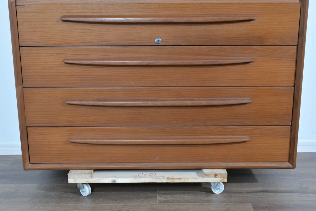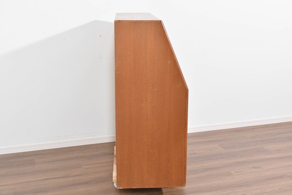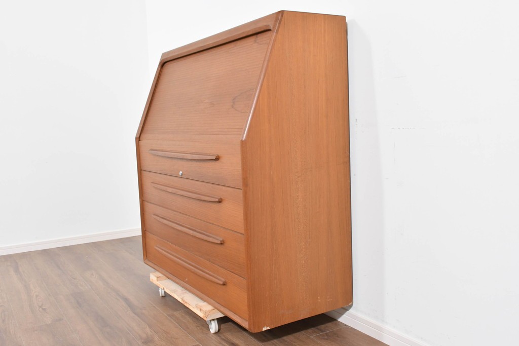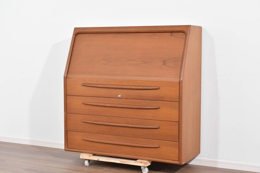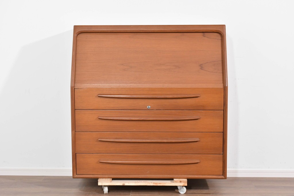 Bernh. Pedersen & Son を象徴するディテールである「シャッター扉」を備えたビューロー。開閉の滑らかな操作性はもちろん、閉じれば一枚板のように美しく見える機能美が魅力です。北欧ヴィンテージならではの実用性と意匠性の高さをしっかりと味わえる一台です。