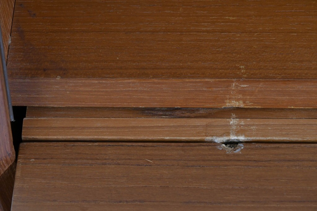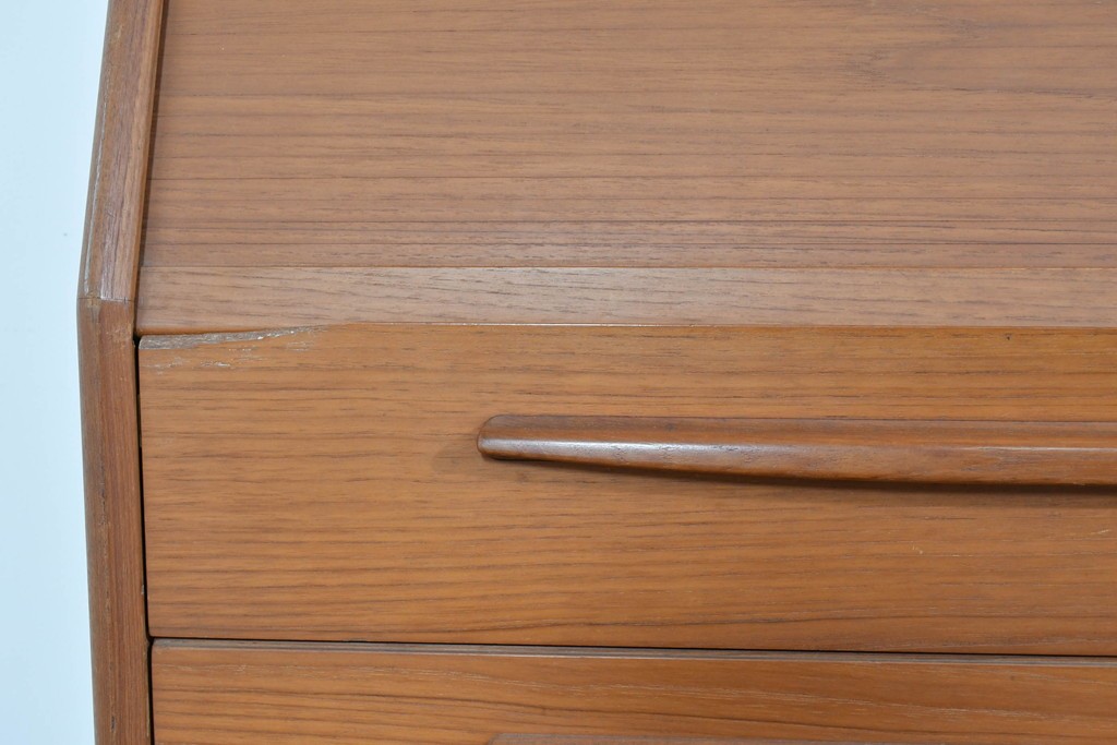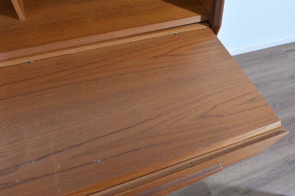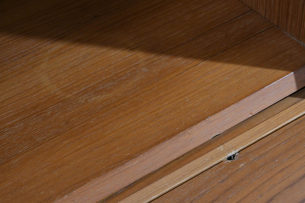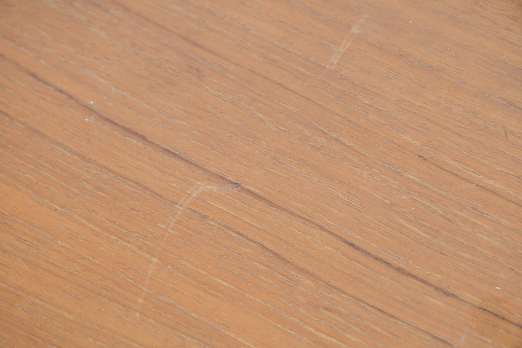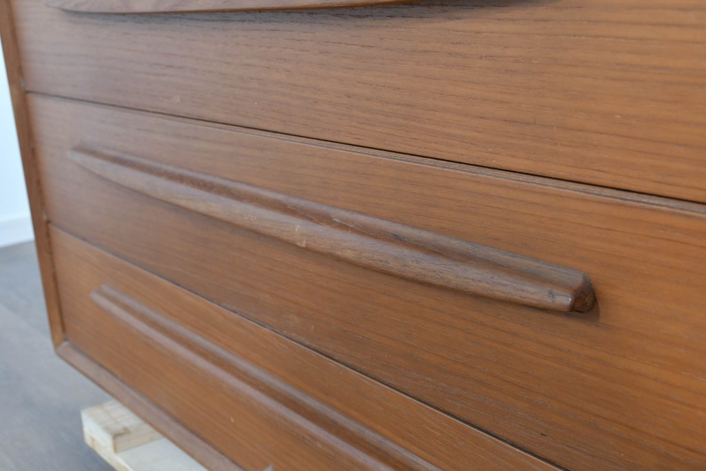 上質なチーク材が贅沢に使用され、経年により深まった色味と木目が美しく、どの角度から見ても風格を感じます。角に丸みをもたせたシルエットや滑らかな手掛けなど、細部に北欧家具らしい丁寧な木工技術が光ります。