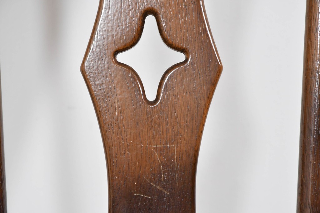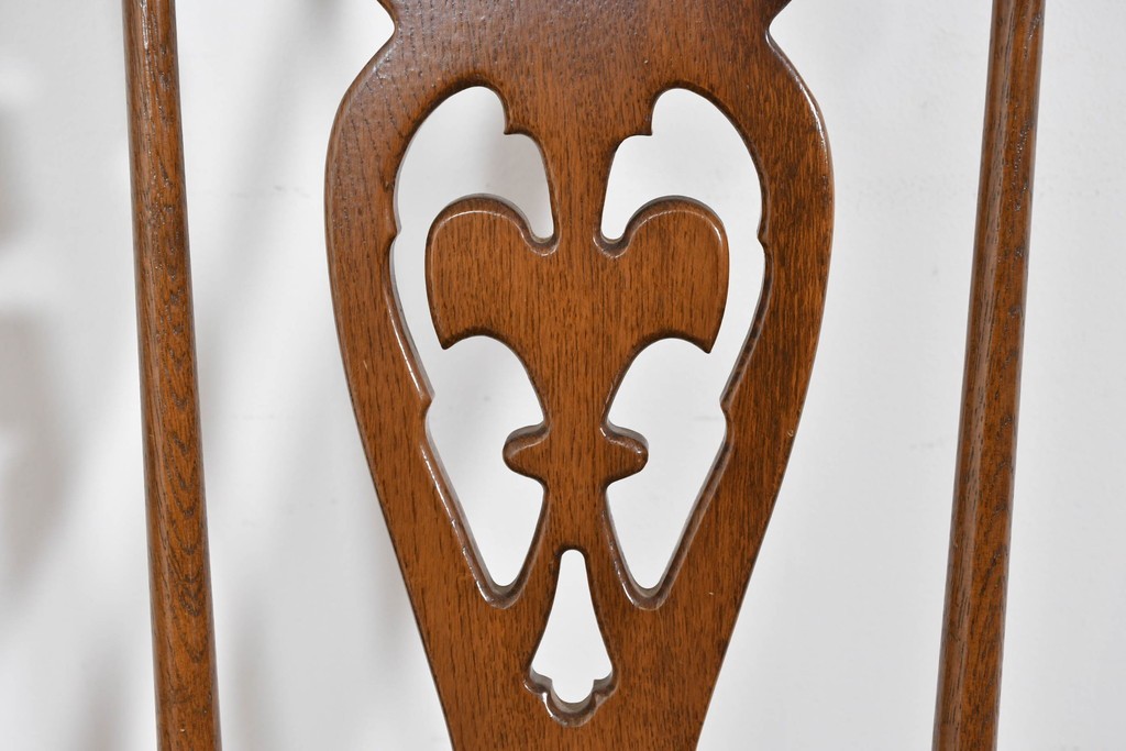 背もたれには繊細な透かし彫りが施され、職人仕事の丁寧さが感じられるつくりとなっています。