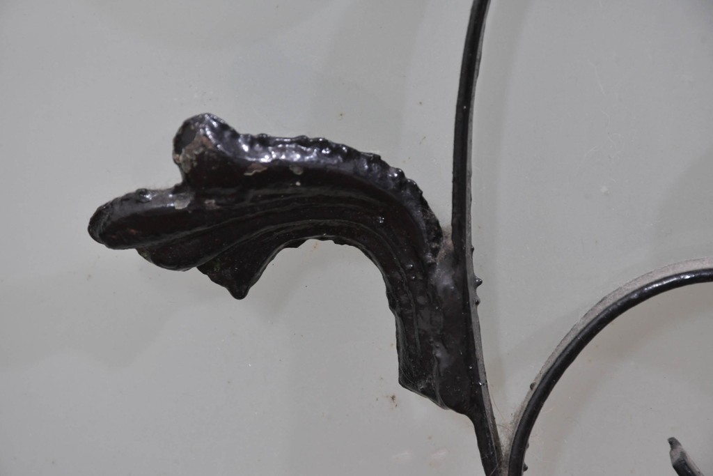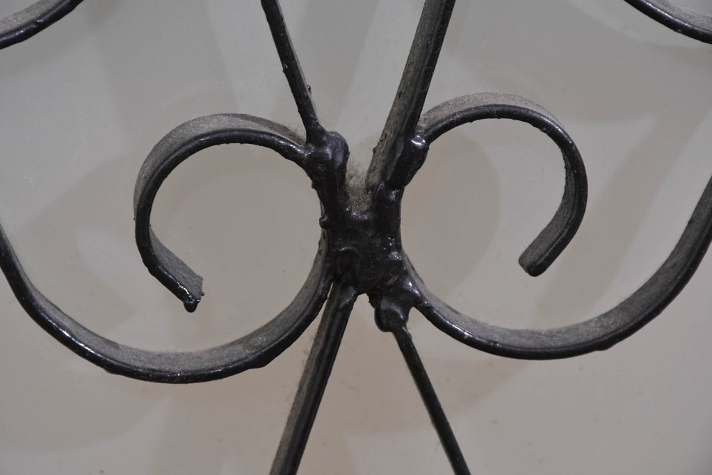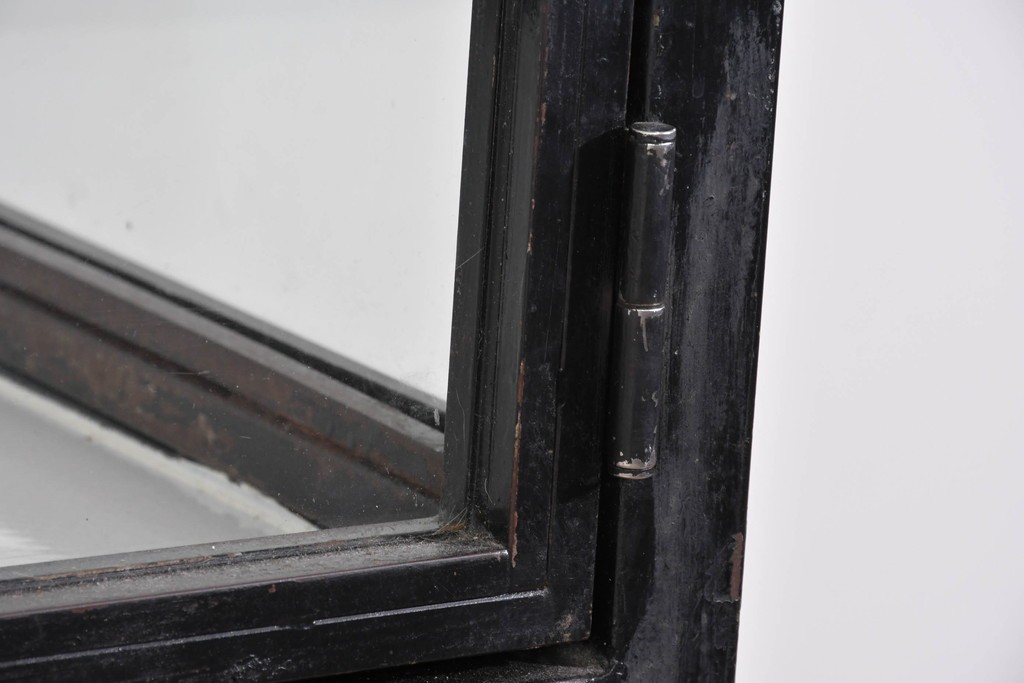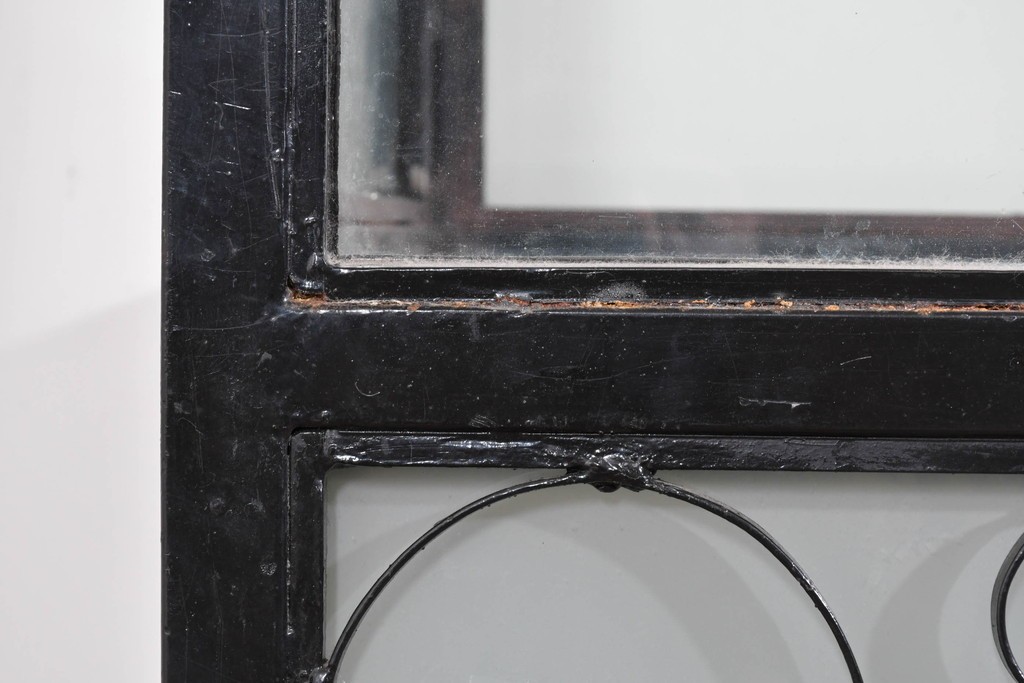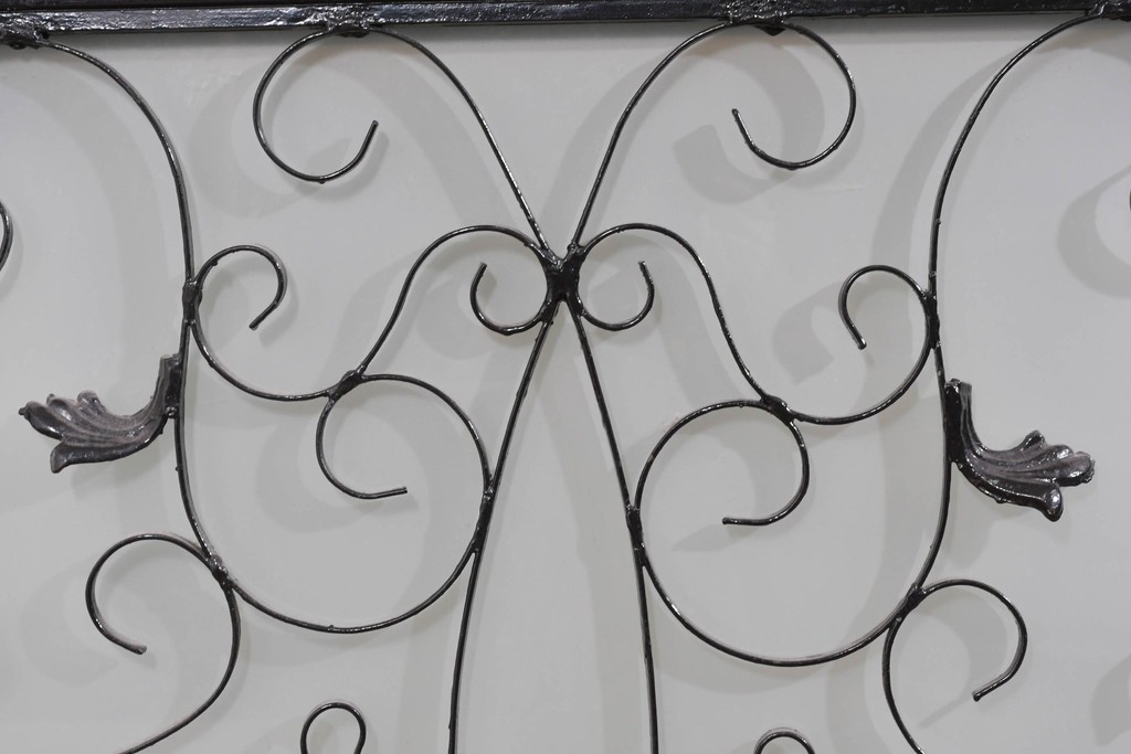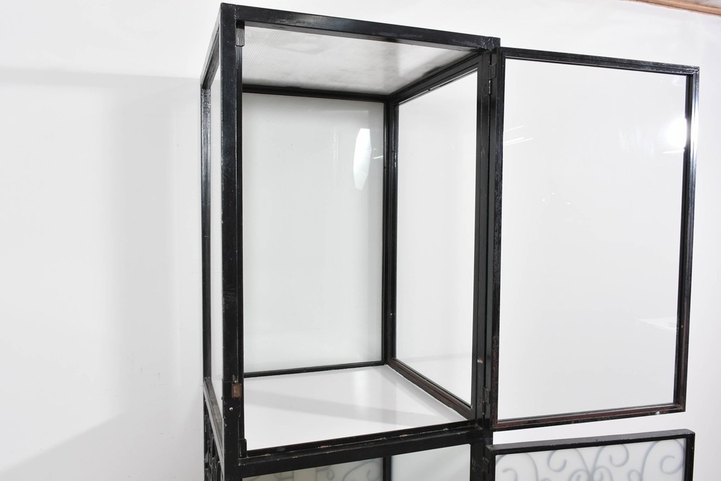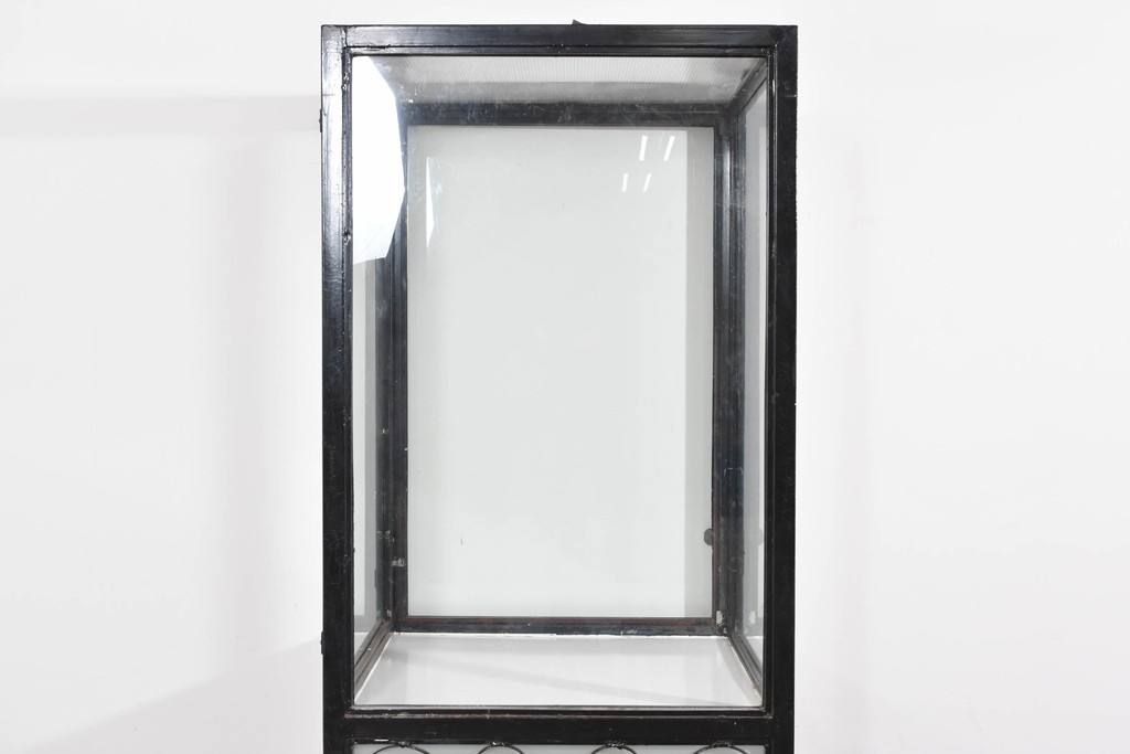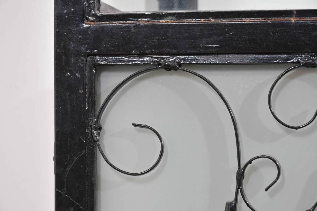 下部の扉にあしらわれた細やかな曲線装飾が、鉄製フレームの硬質感に柔らかな表情を加えています。優雅に流れるスクロールラインがショーケース全体のアクセントとなり、実用性とデザイン性を兼ね備えた特注品らしい魅力を感じさせます。飾る物だけでなく、家具そのものもインテリアとして楽しめる一台です。