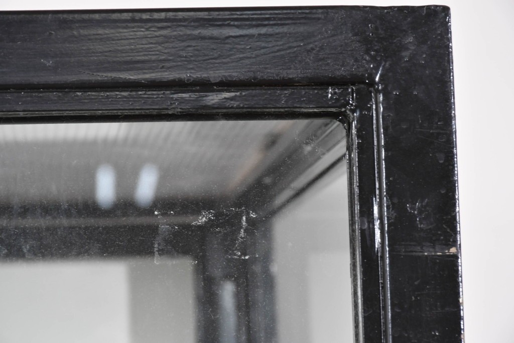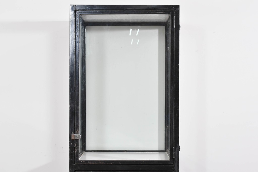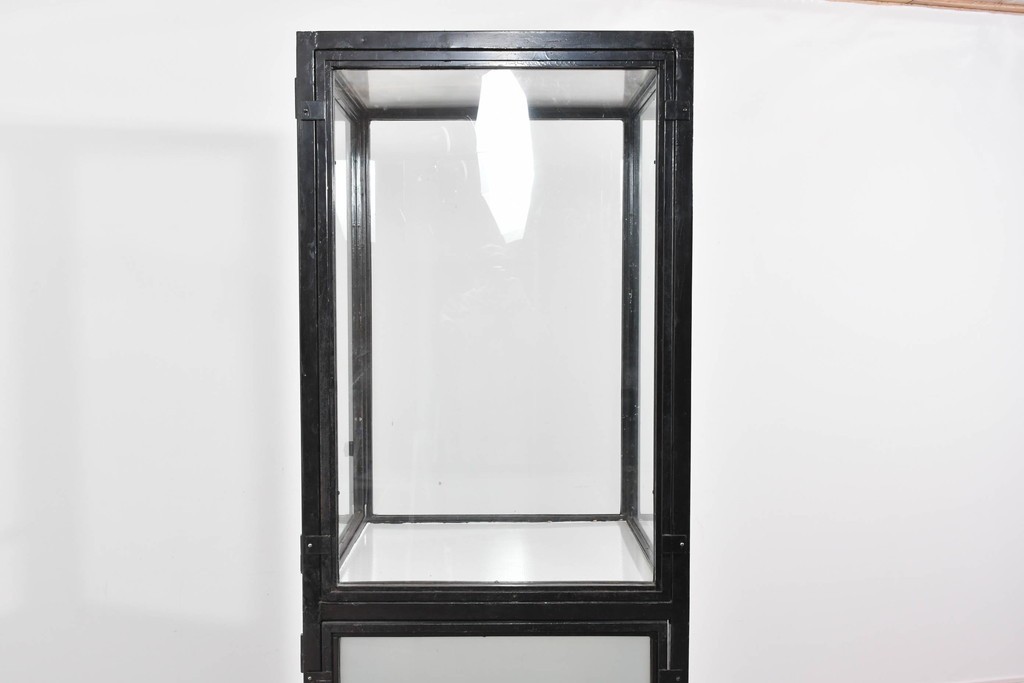 国産のオーダー品として手掛けられたショーケースで、無駄のない直線構成のフレームに特注ならではの確かな存在感があります。店舗什器としてはもちろん、ご家庭のコレクションディスプレイとしても空間に引き締まった印象をもたらす一台です。