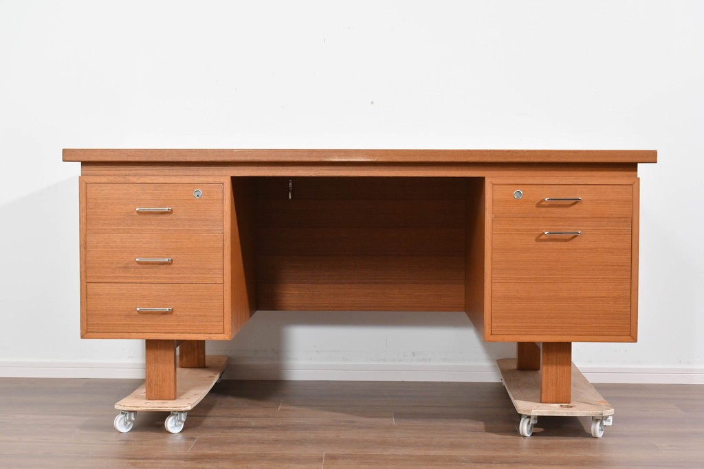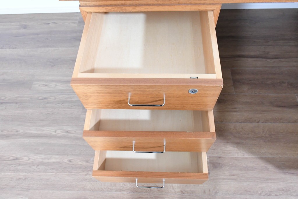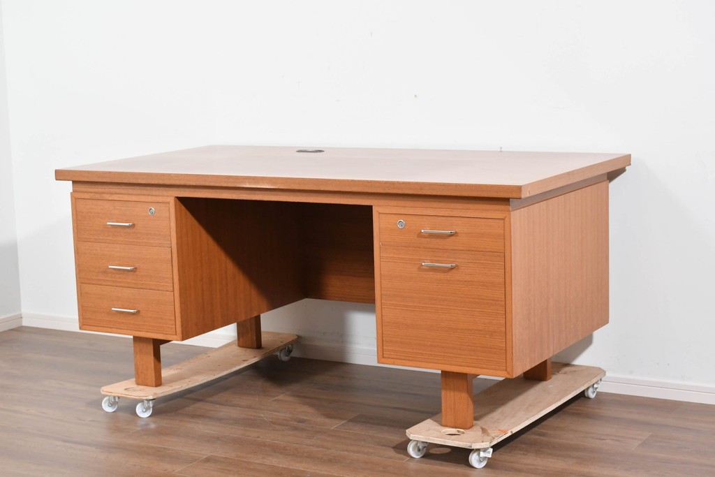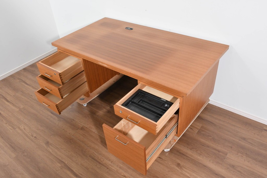 広い天板と両袖の引き出しを備え、書類や文具を効率的に整理できます。