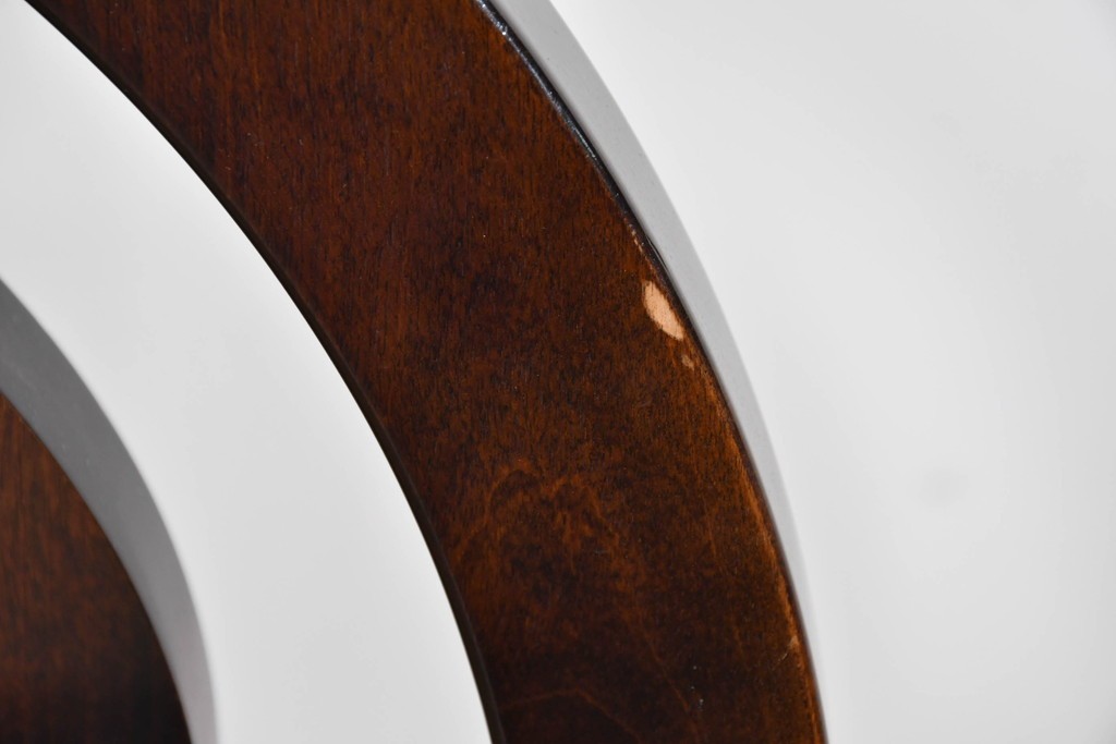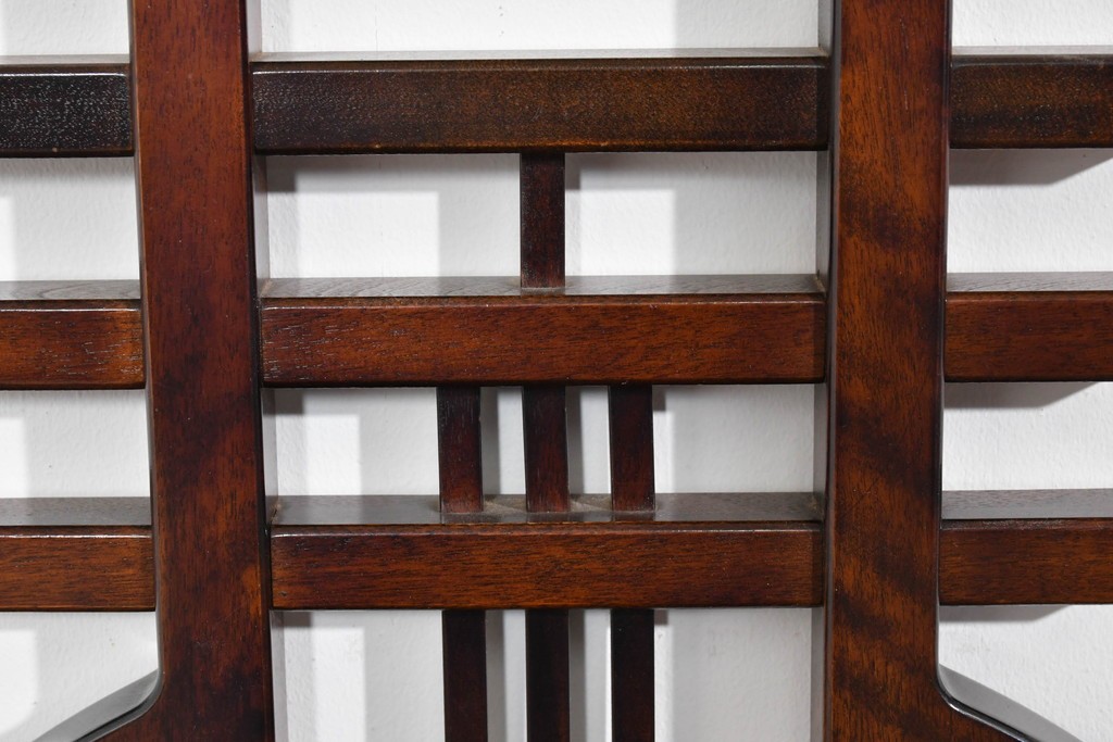 星野民芸による、美しい木肌と独自の意匠が目を引くアームレスチェアです。