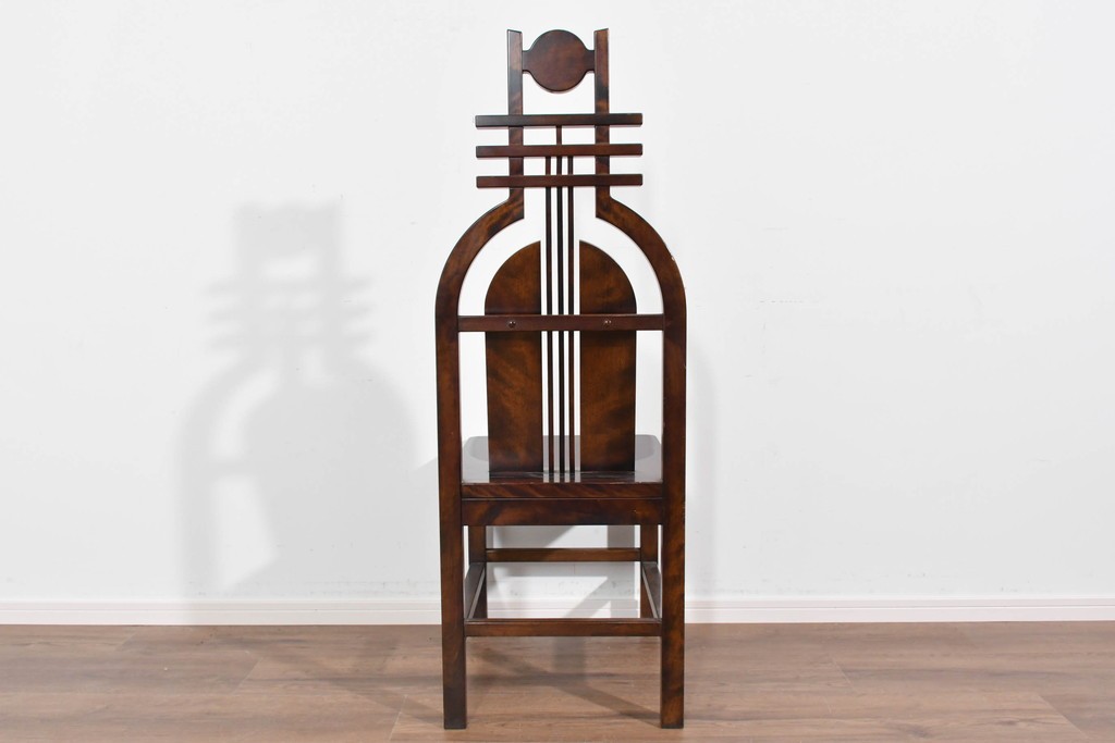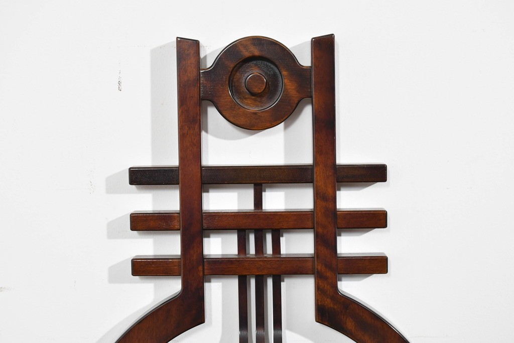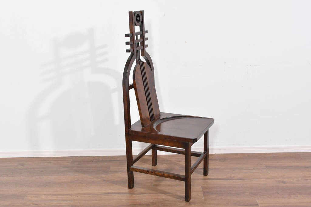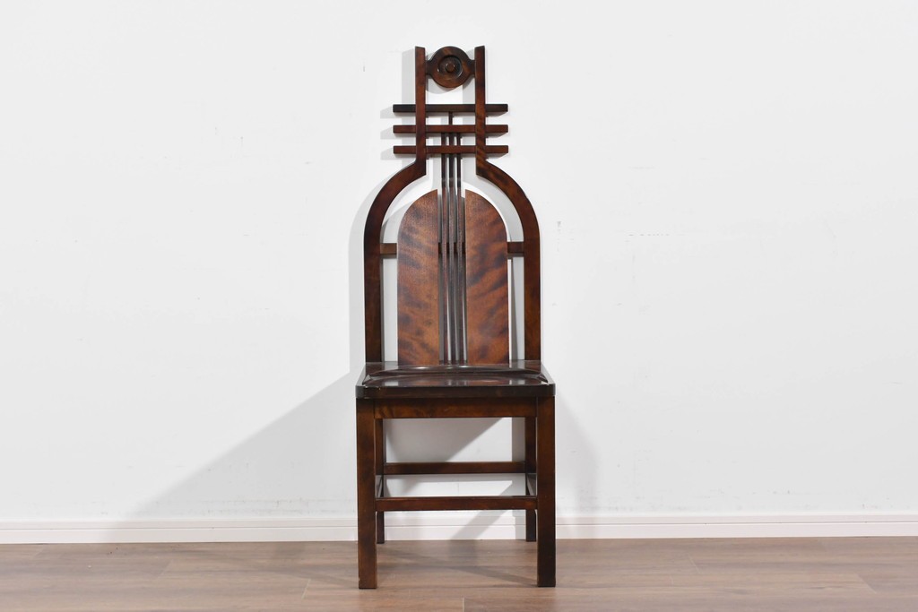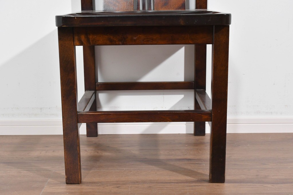 背もたれに施された独創的なデザインが、民芸家具らしい存在感を与えています。