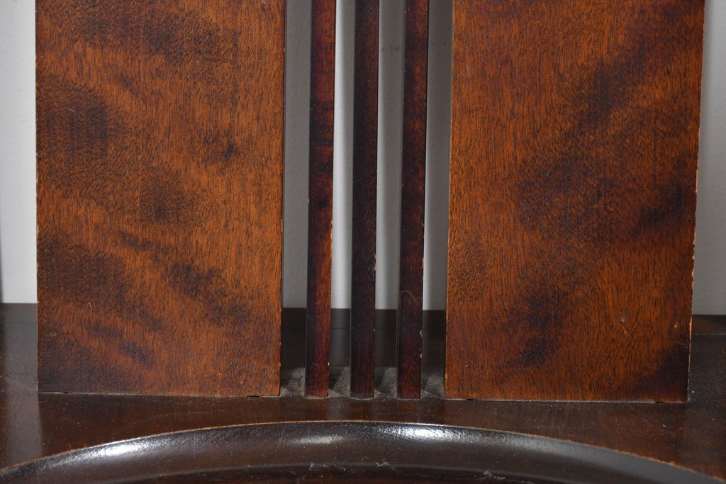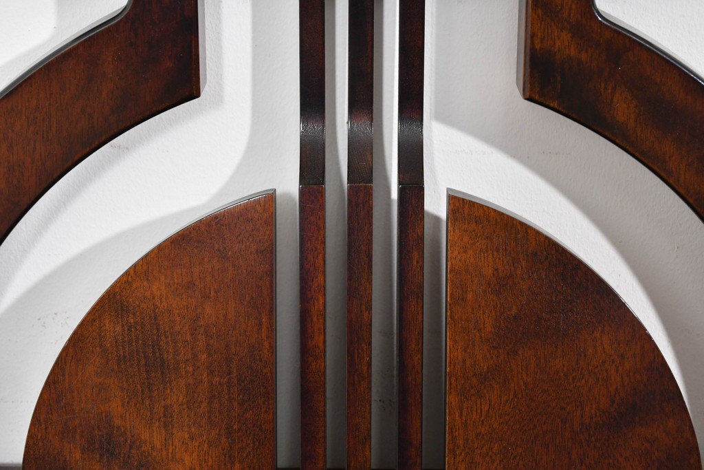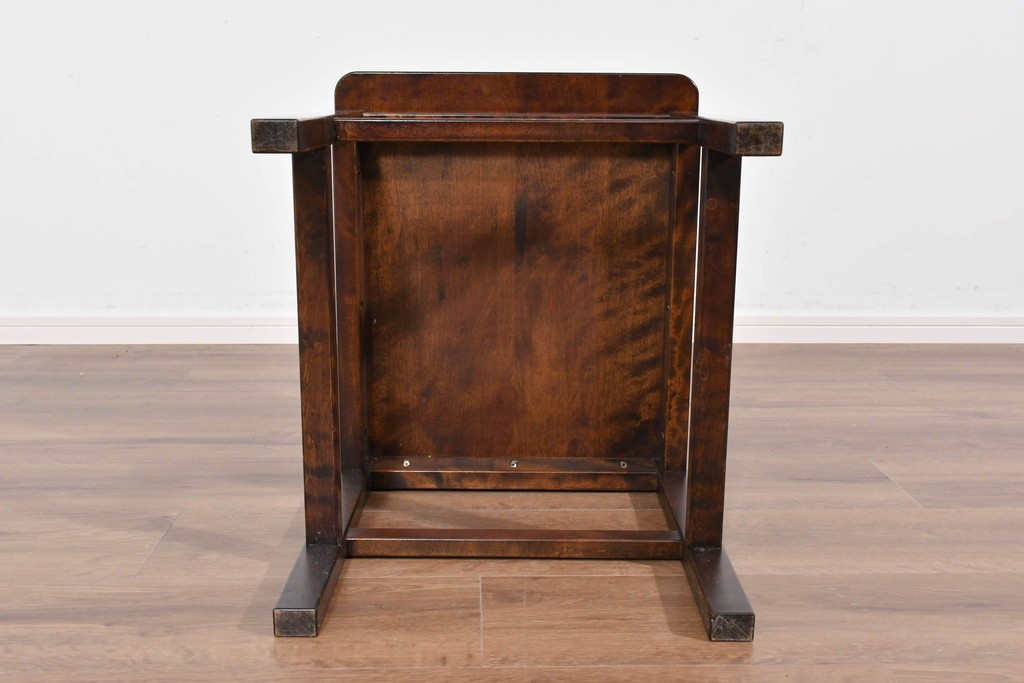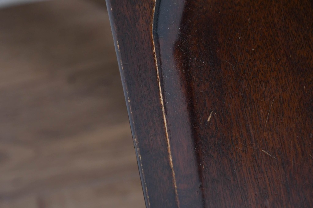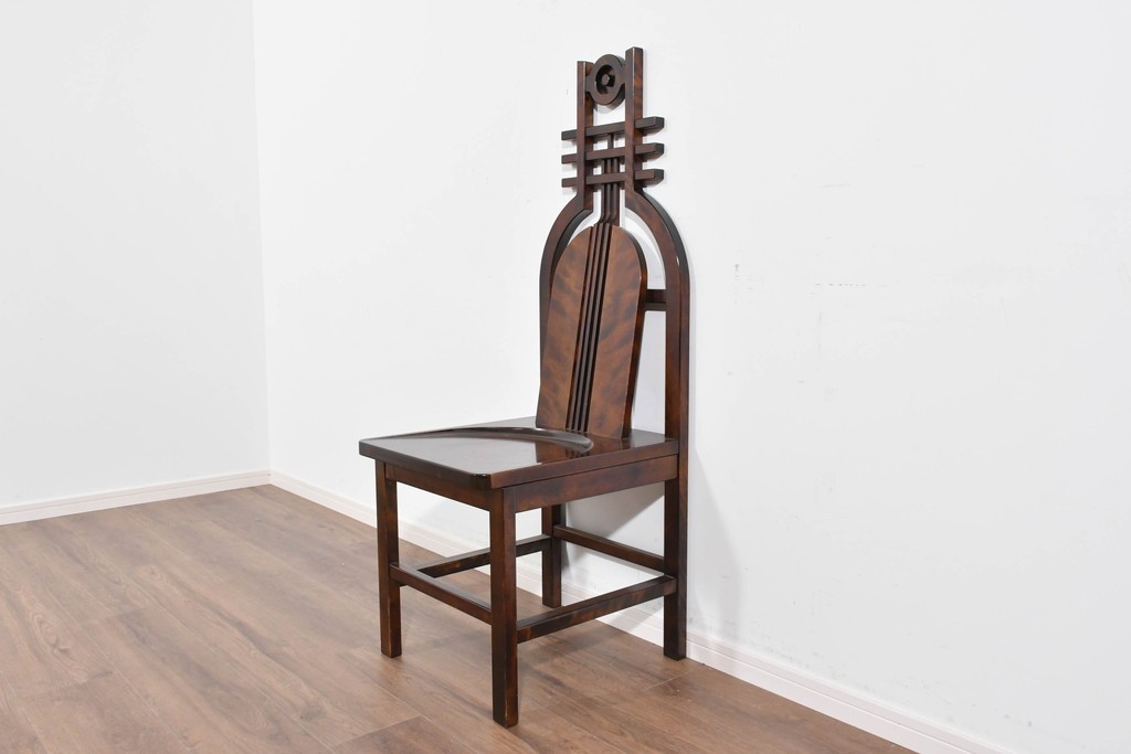 背もたれに施された独創的なデザインが、民芸家具らしい存在感を与えています。