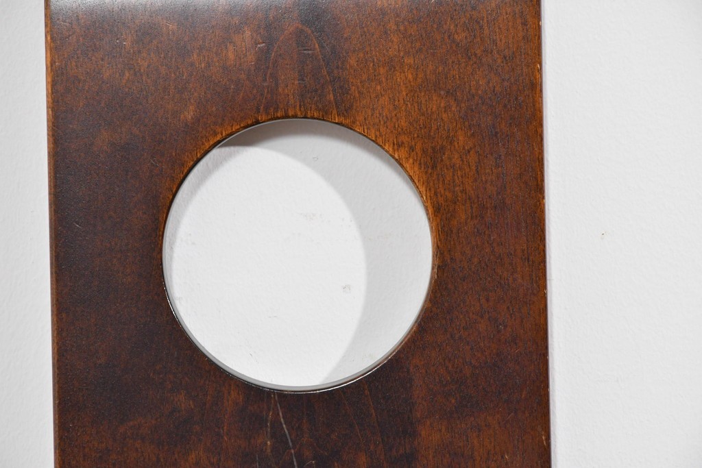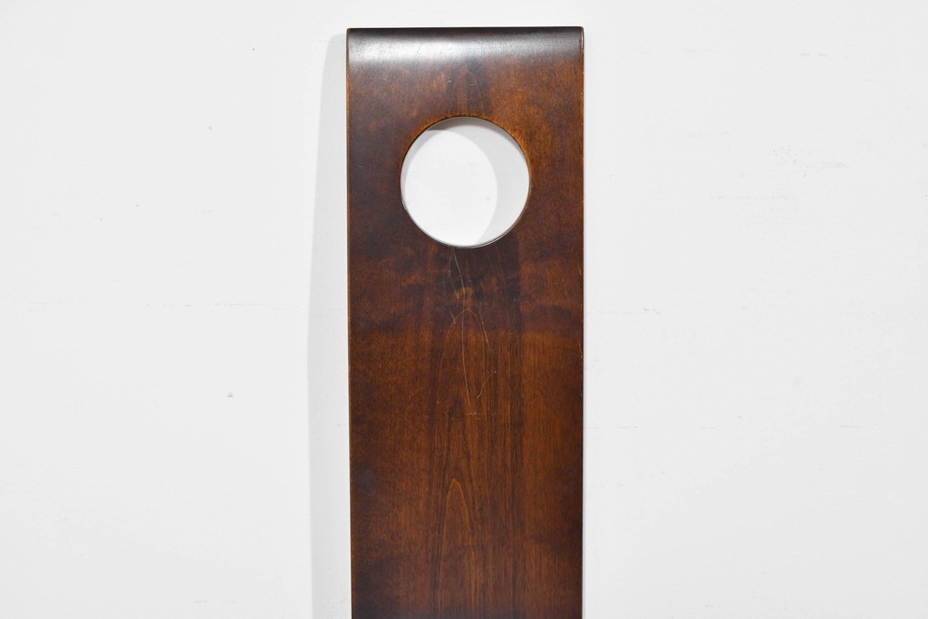 背板に施された丸い抜きのデザインが印象的で、空間にさりげないアクセントを加えます。