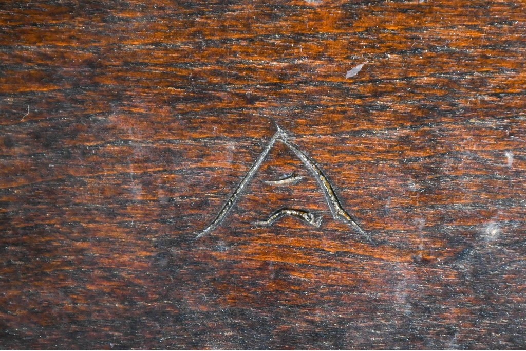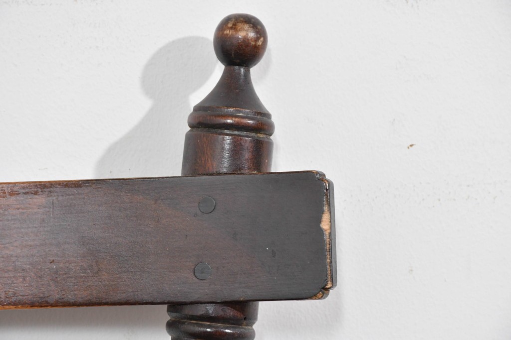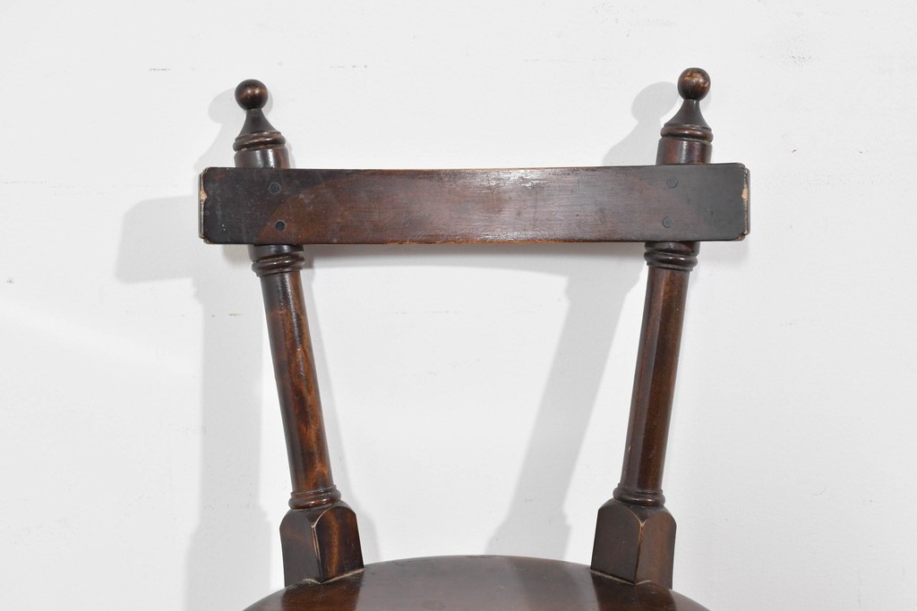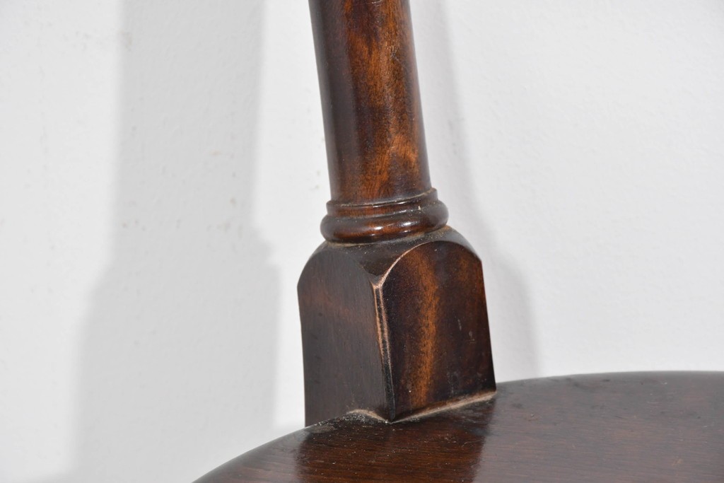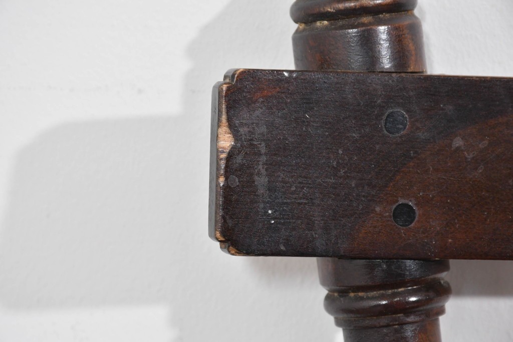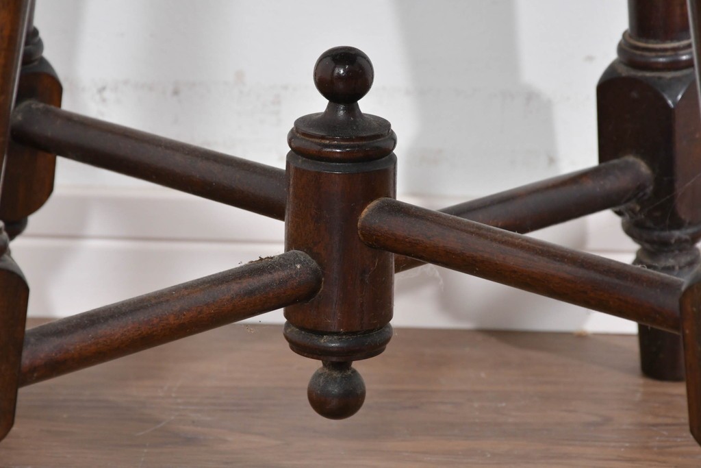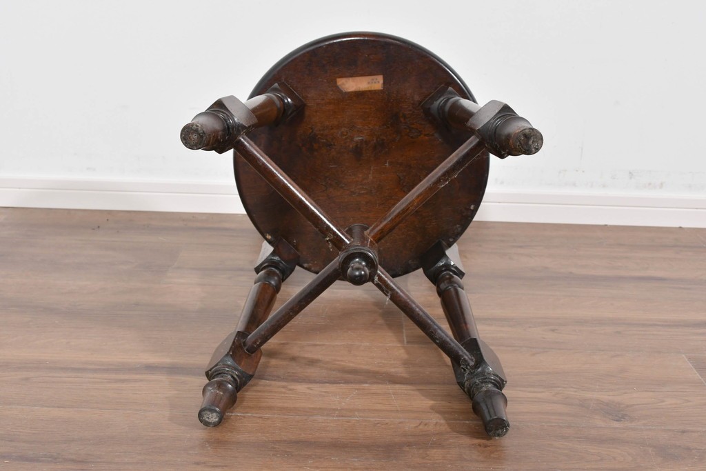 丸い座面や脚部の挽物意匠が特徴で、民芸家具らしい温かみを持つ一脚に仕上がっています。