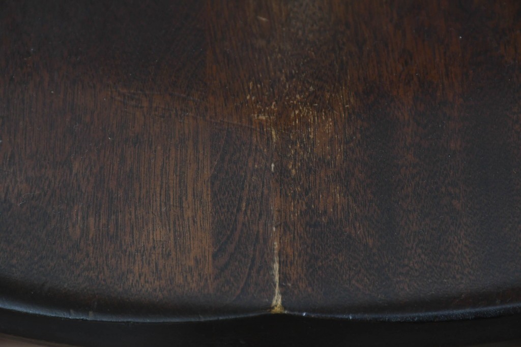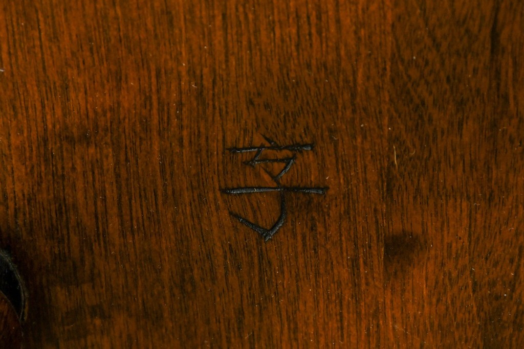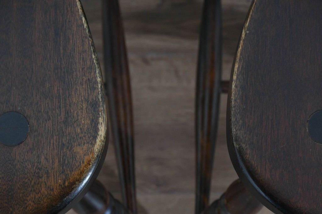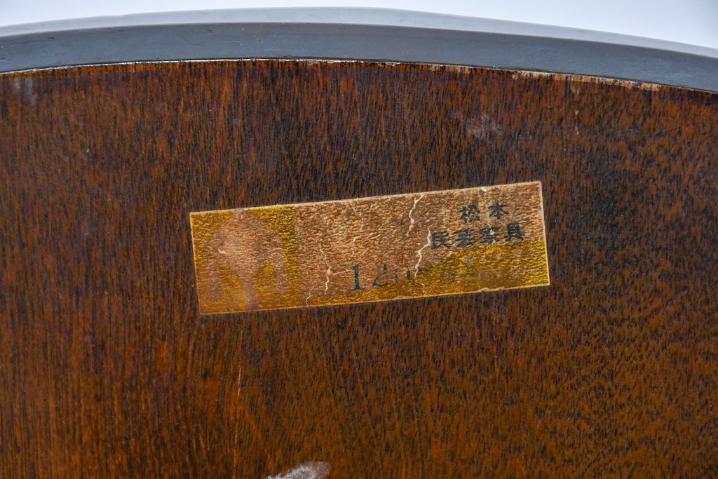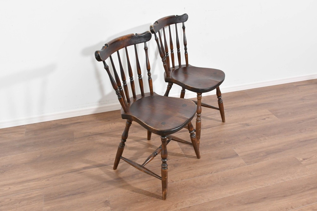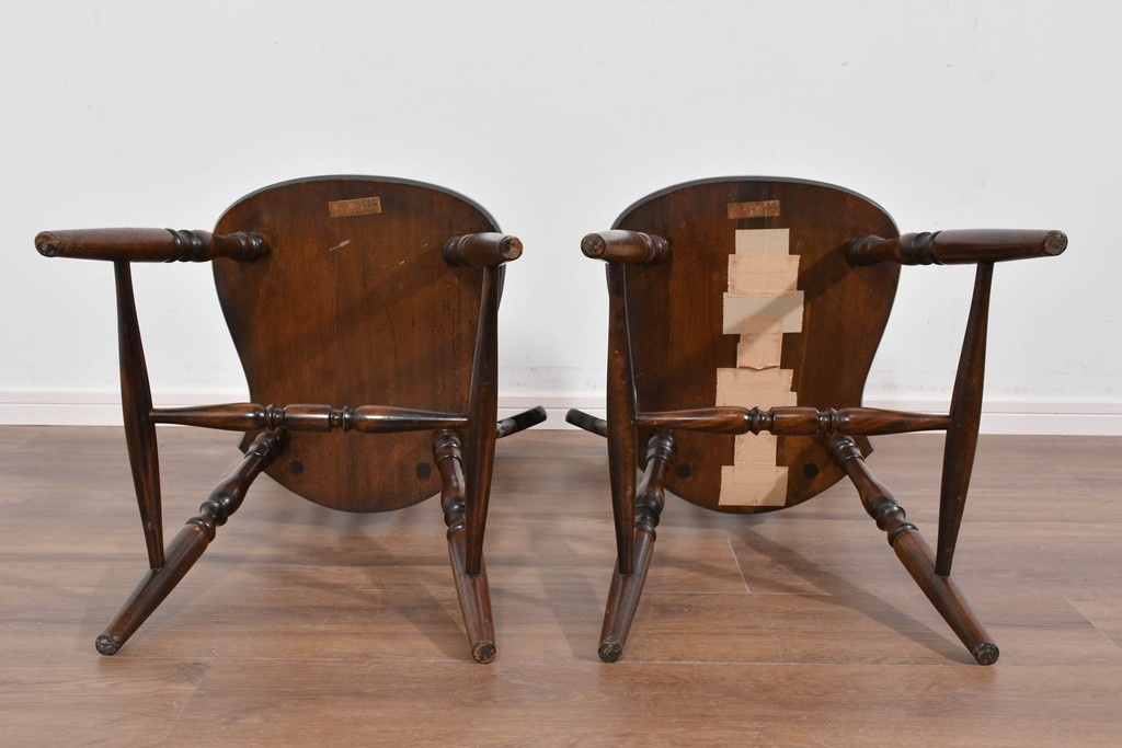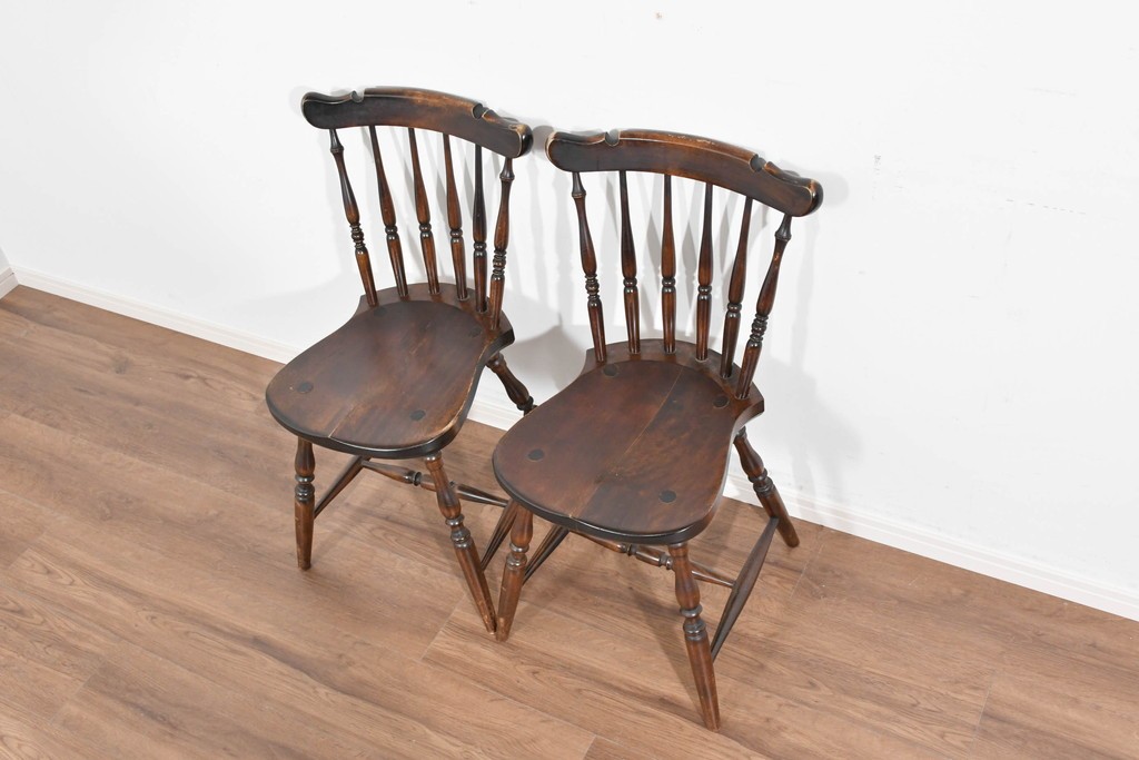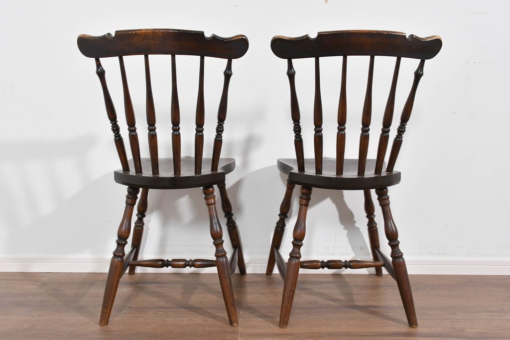 背もたれや脚部に施された挽物意匠が特徴で、民芸家具らしい温かみと存在感を感じられる一脚です。