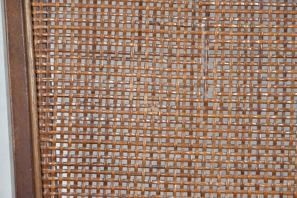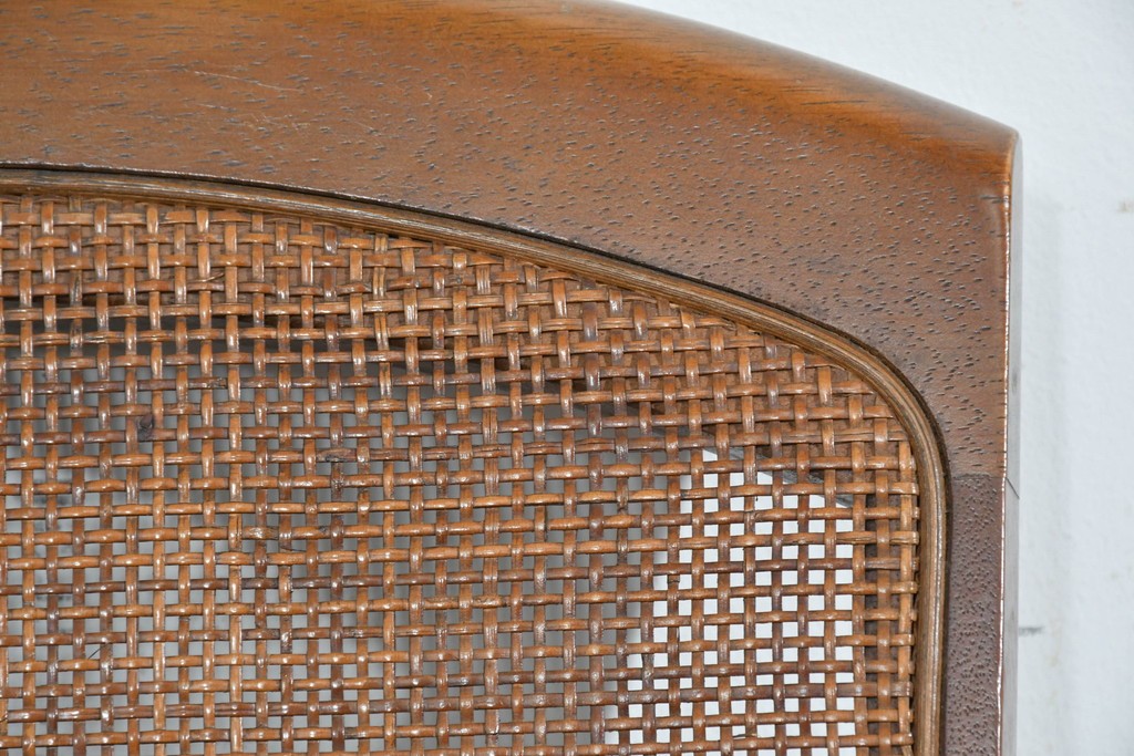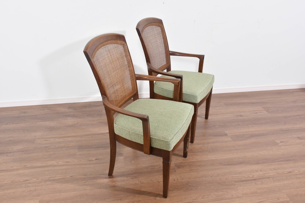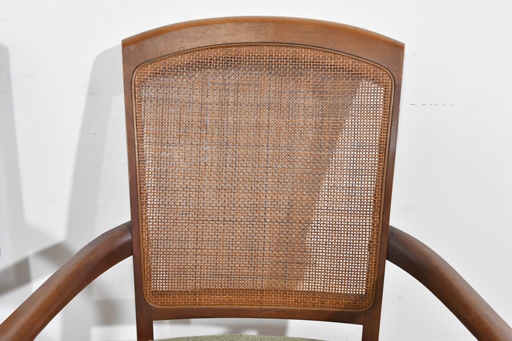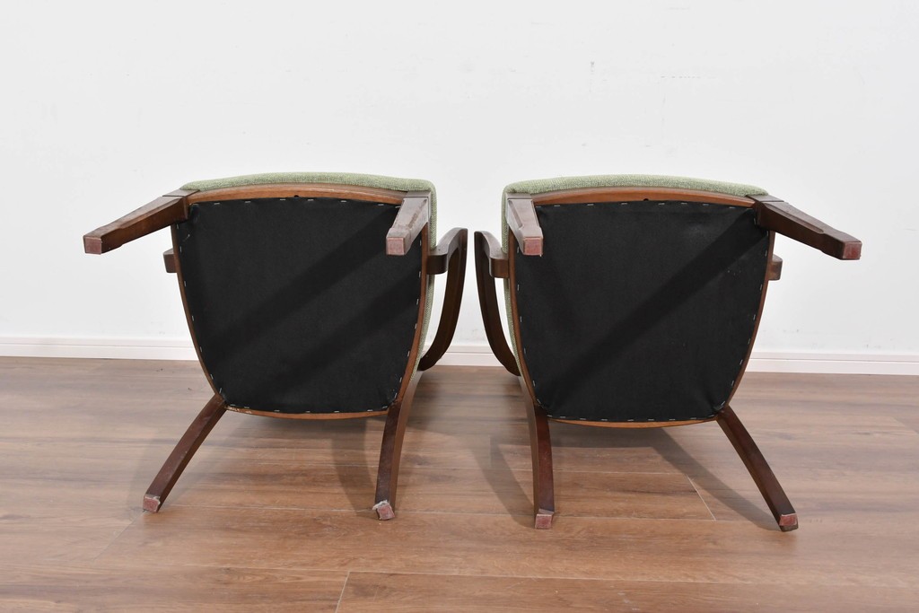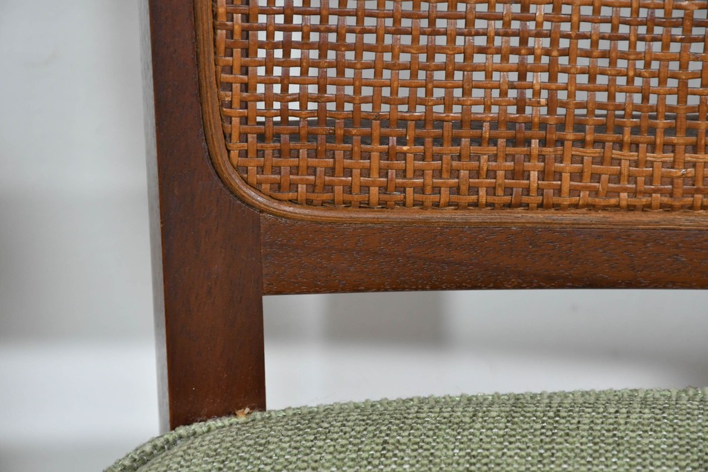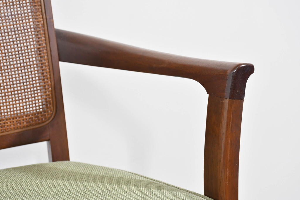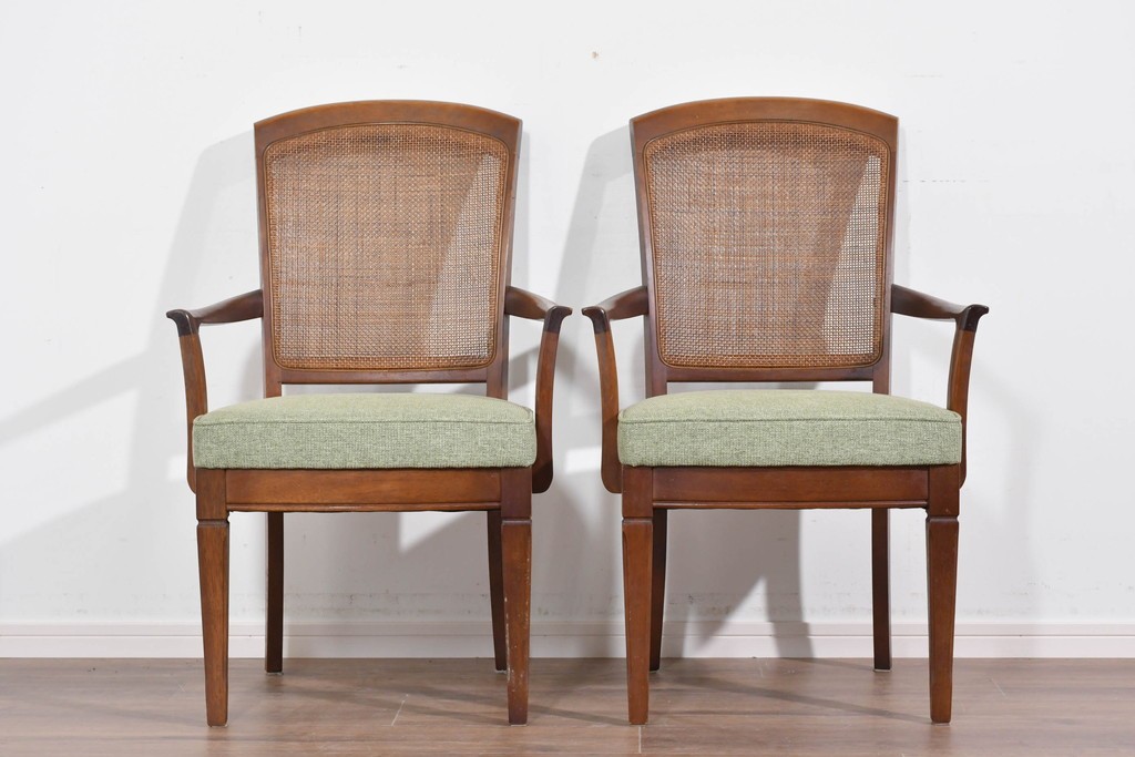 淡いグリーンの座面生地が木部の色合いと調和し、落ち着いた印象で空間に馴染みます。
