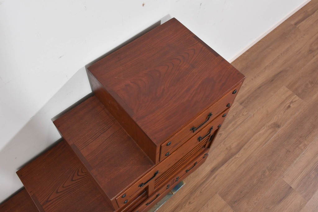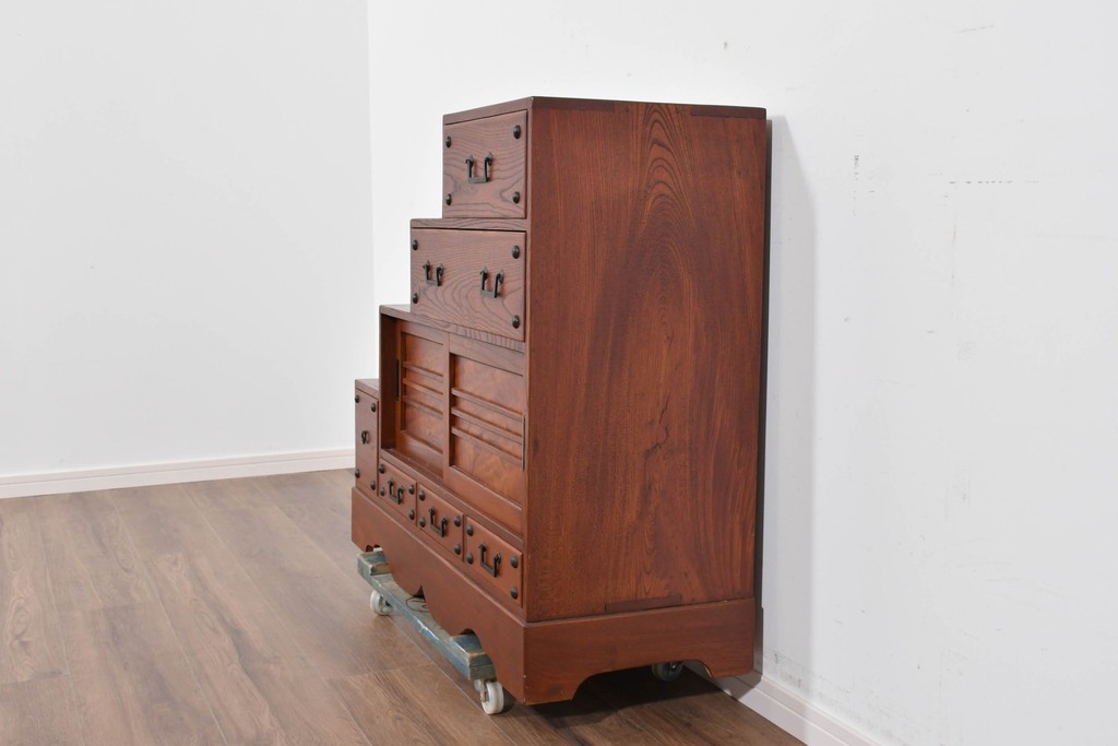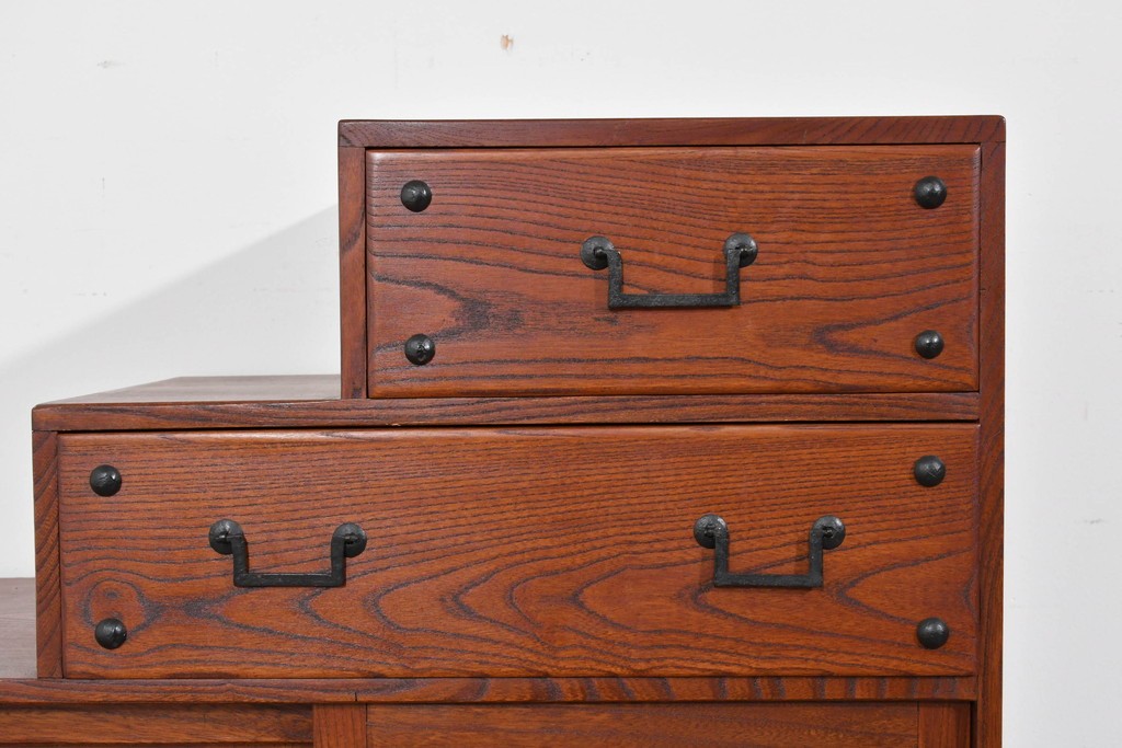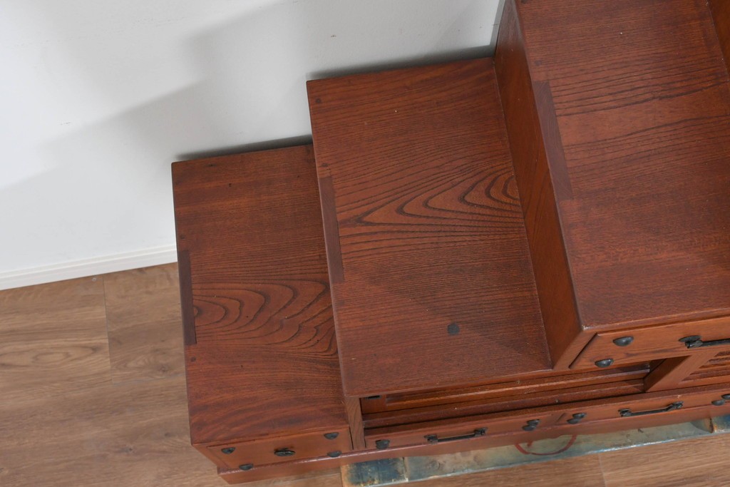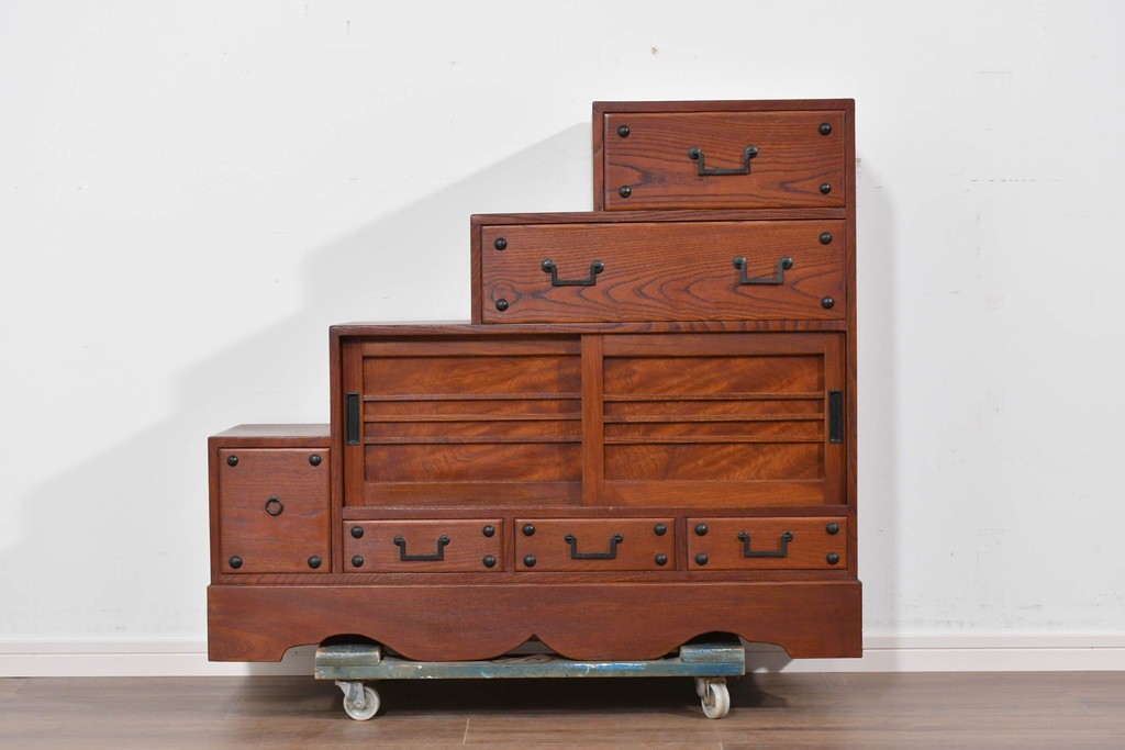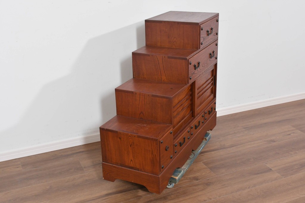 昭和後期につくられた和製ヴィンテージの階段箪笥風収納棚です。